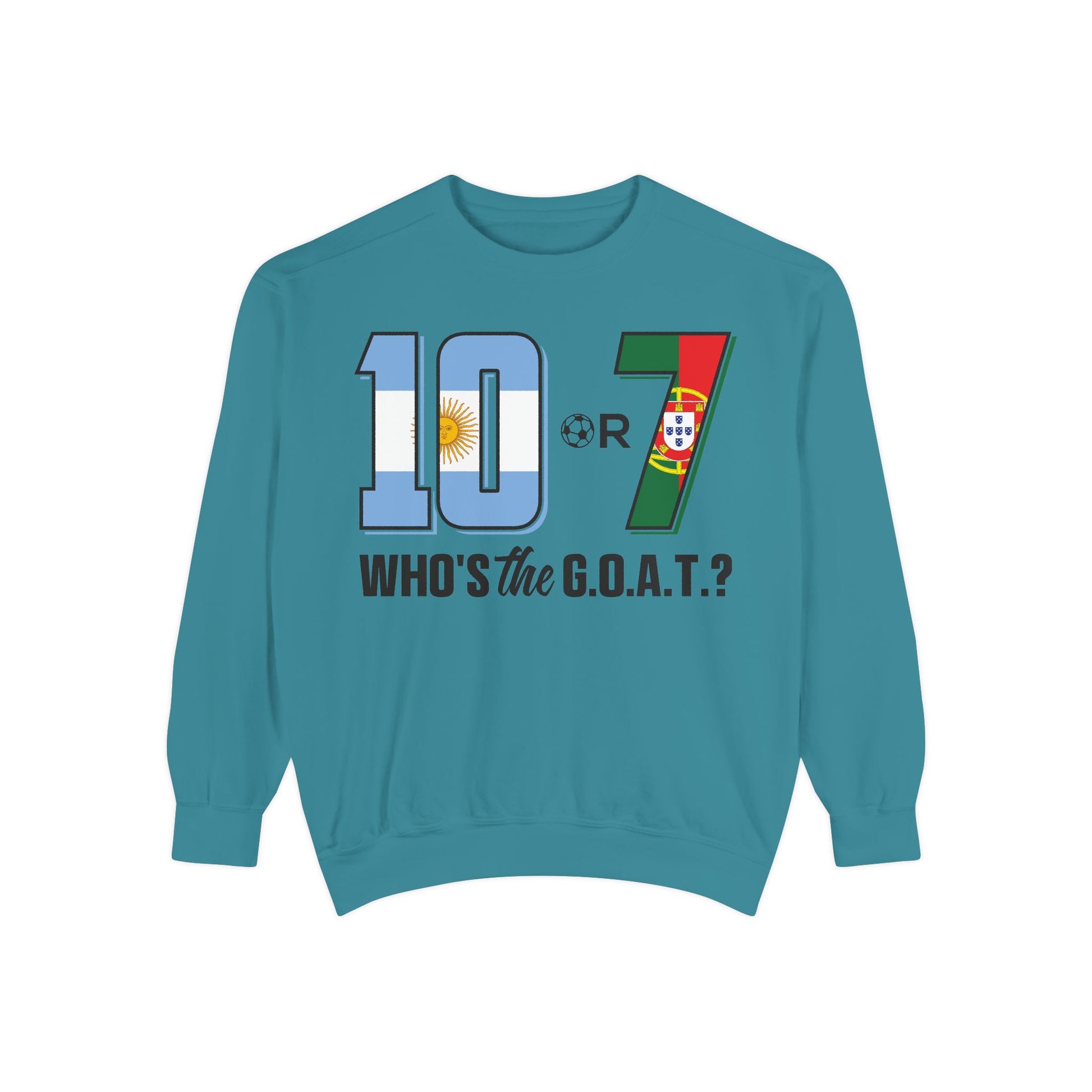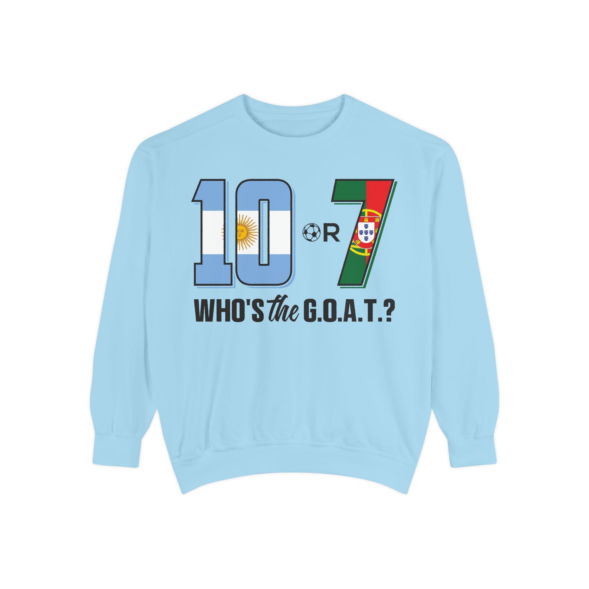 ⚽ 10 or 7 G.O.A.T. Soccer Debate Sweatshirt – Messi vs Ronaldo Crewneck
