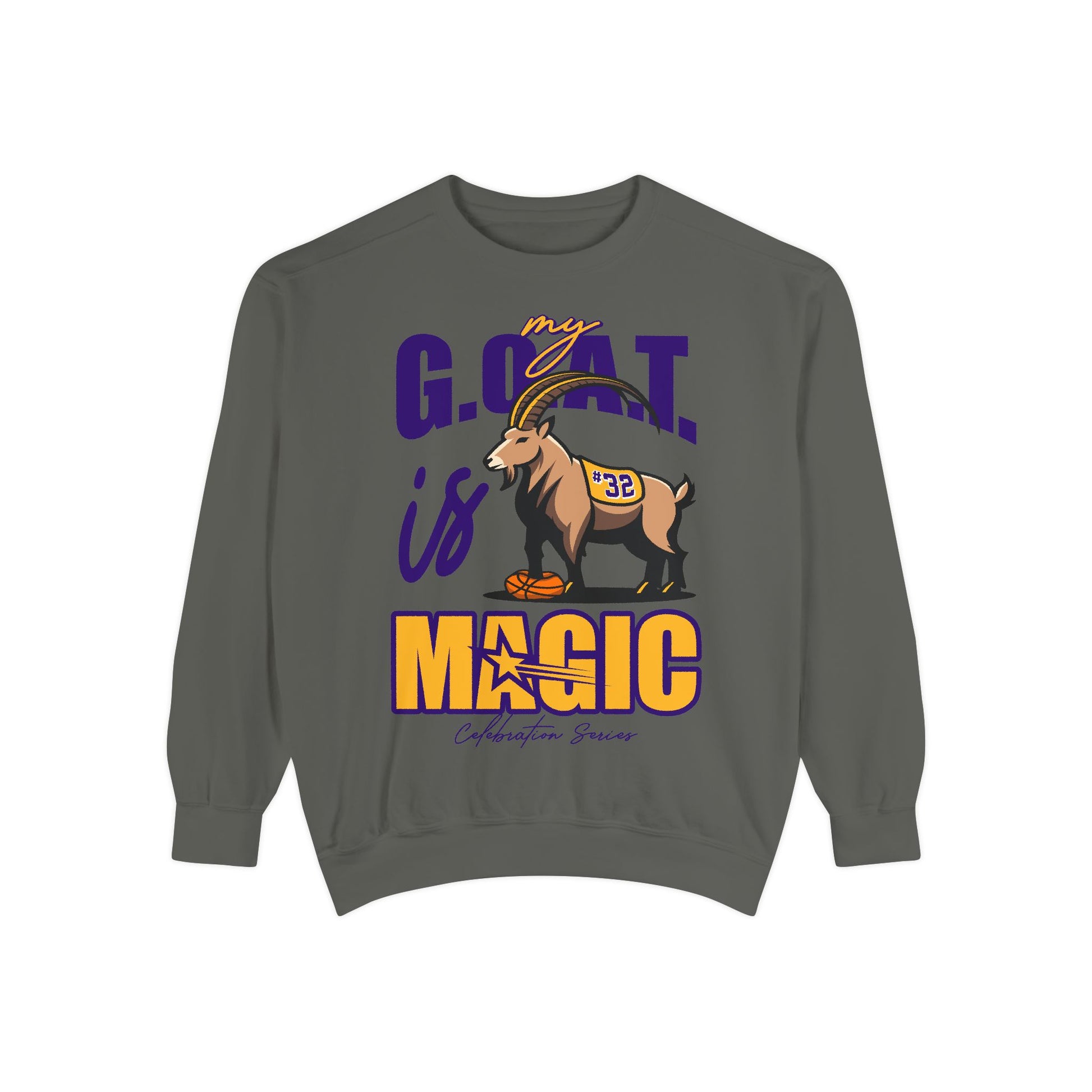 Celebrate greatness with the My G.O.A.T. Is Magic Crewneck from the G.O.A.T. Talk Tees Celebration Series â honoring one of basketballâs most electrifying playmakers ever. Featuring a bold goat graphic rocking the #32 jersey, this design blends Los Angeles pride, Showtime energy, and streetwear culture in one timeless look.