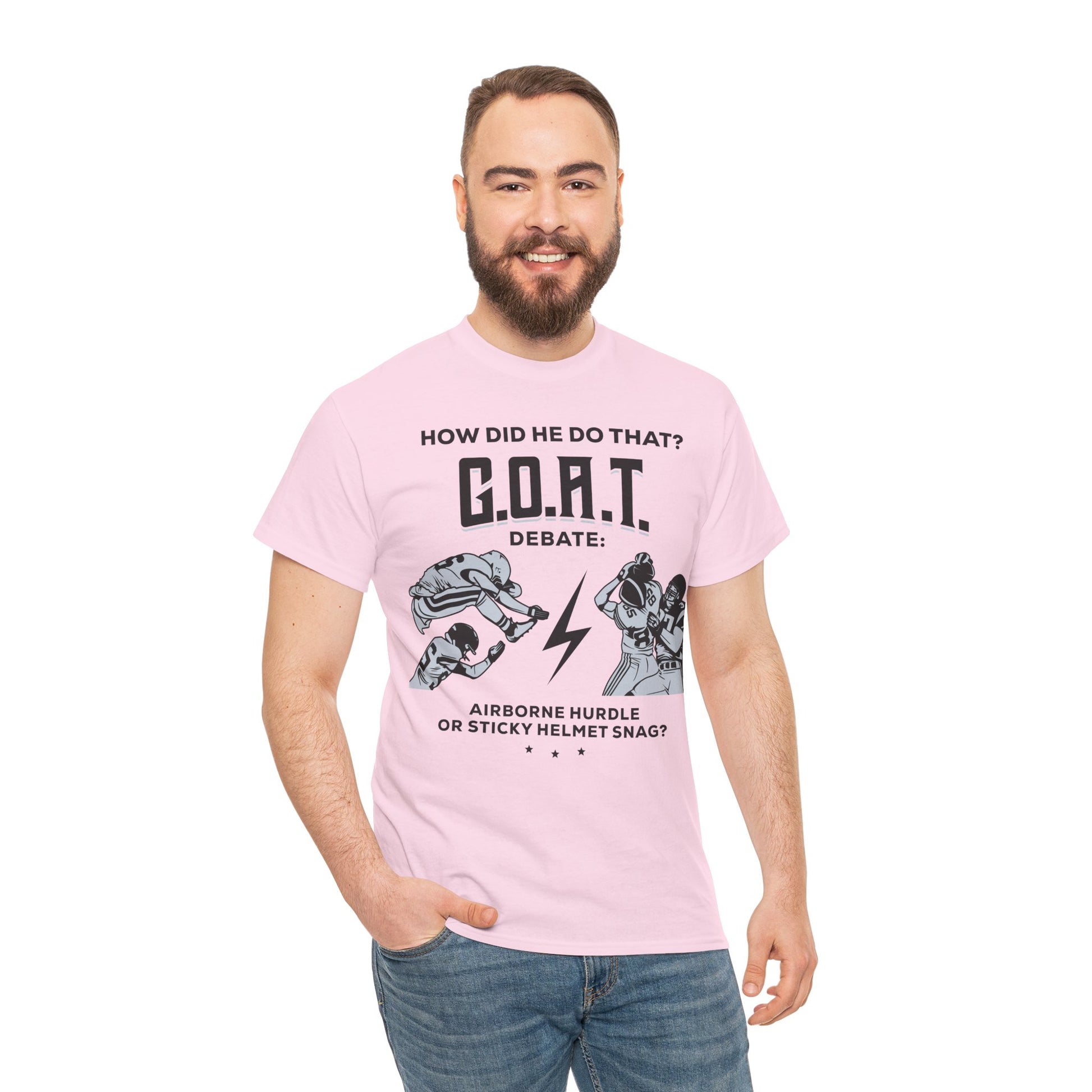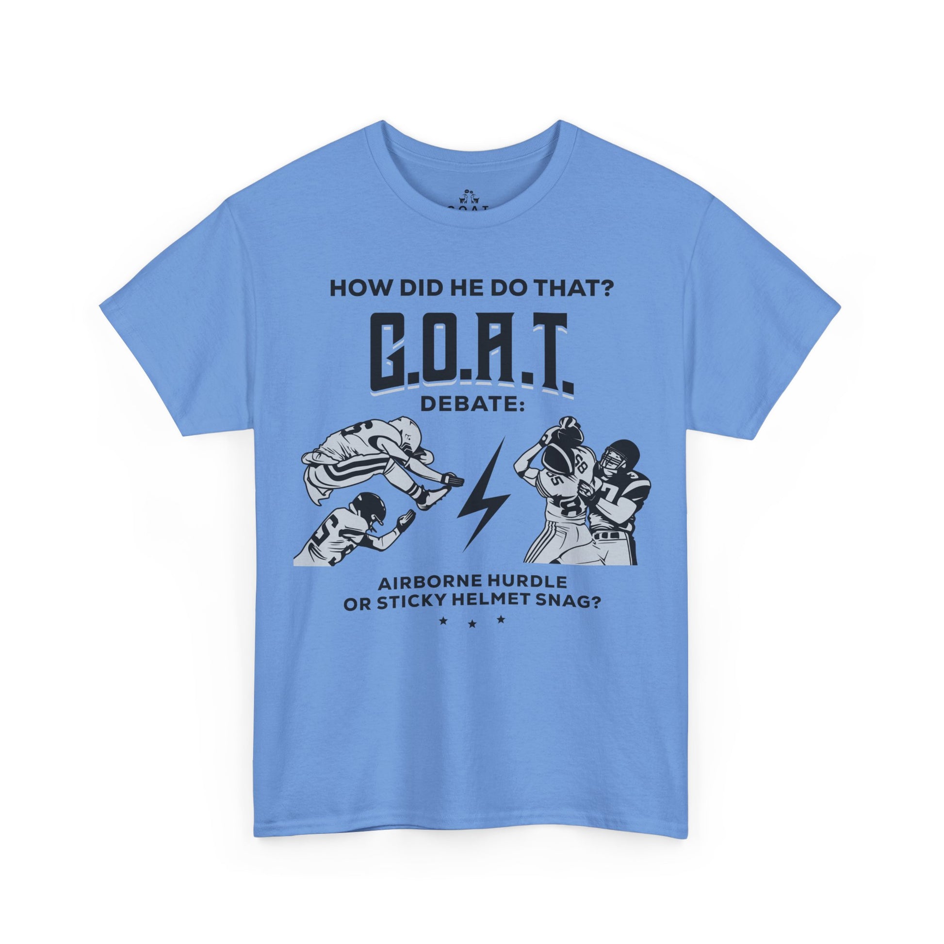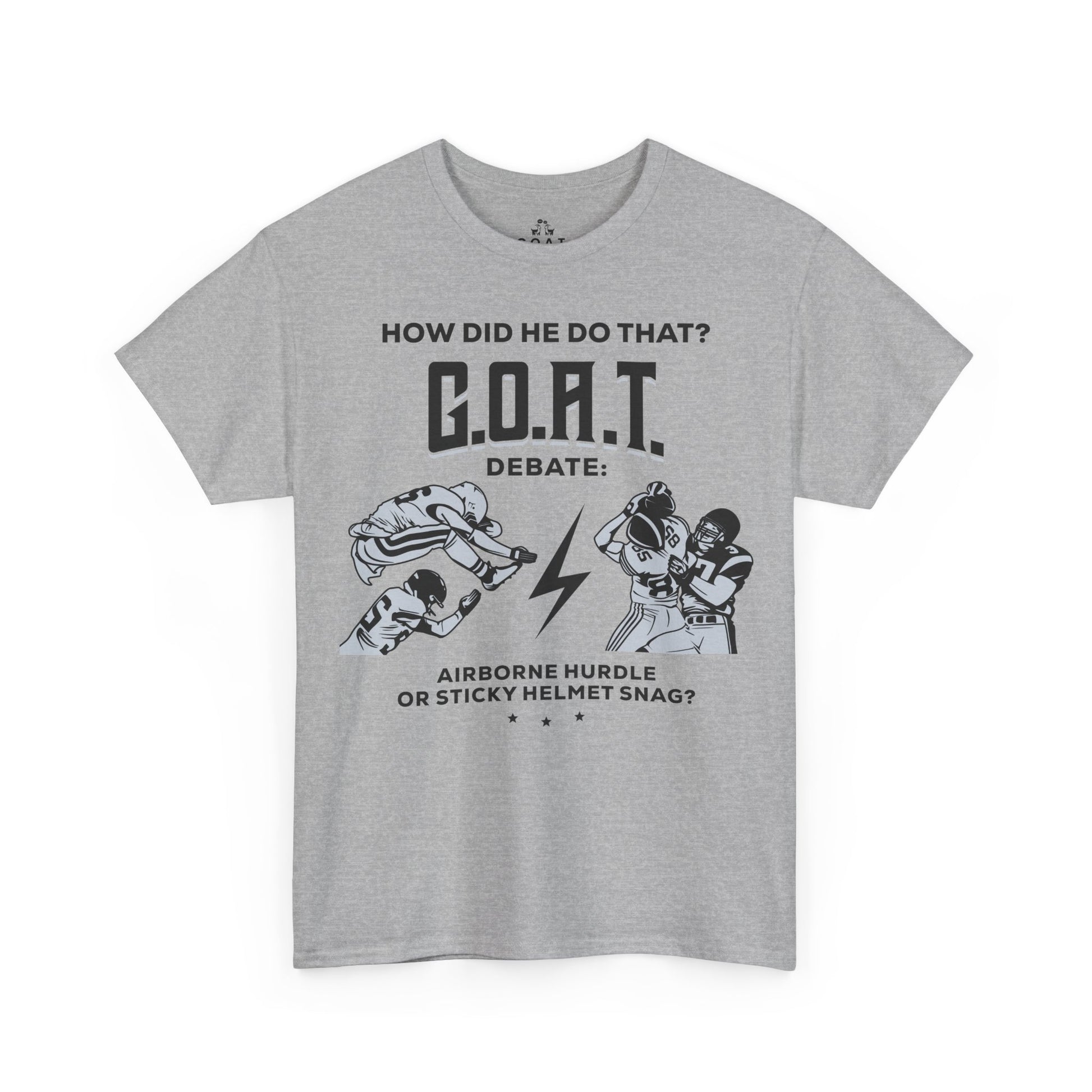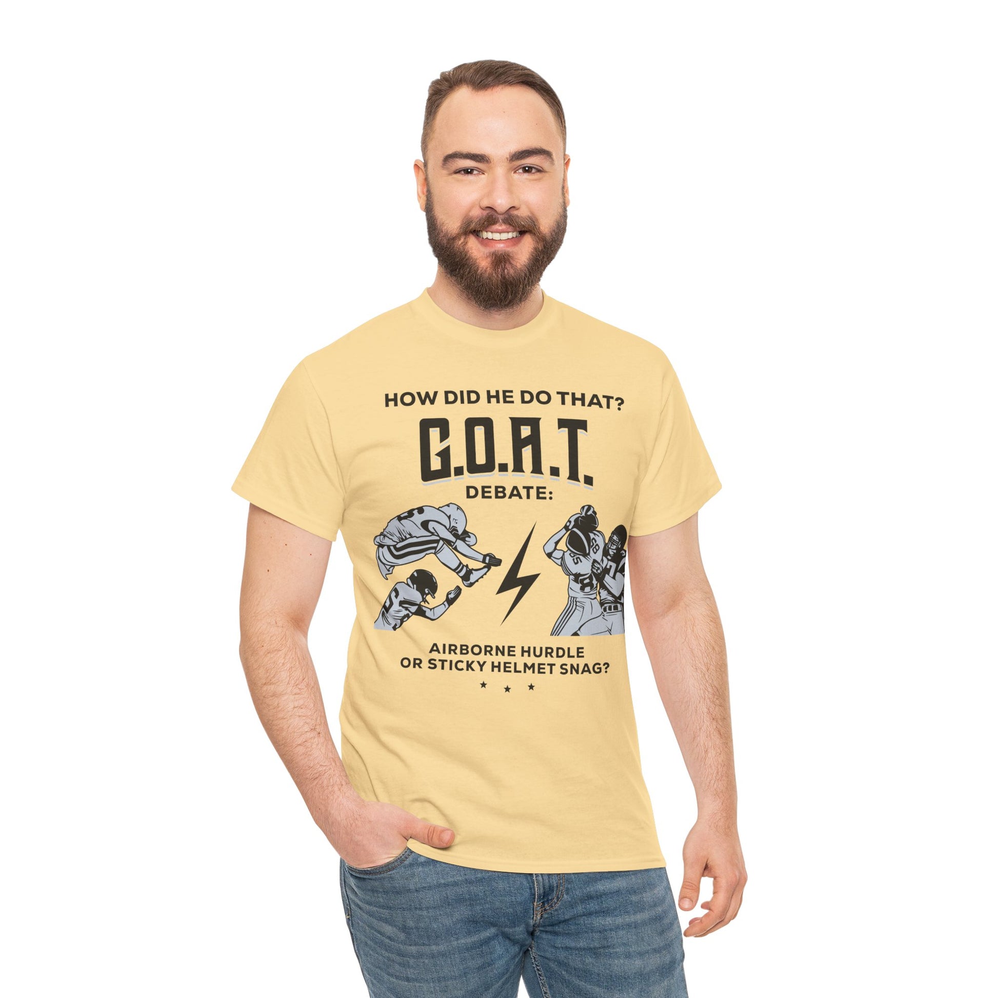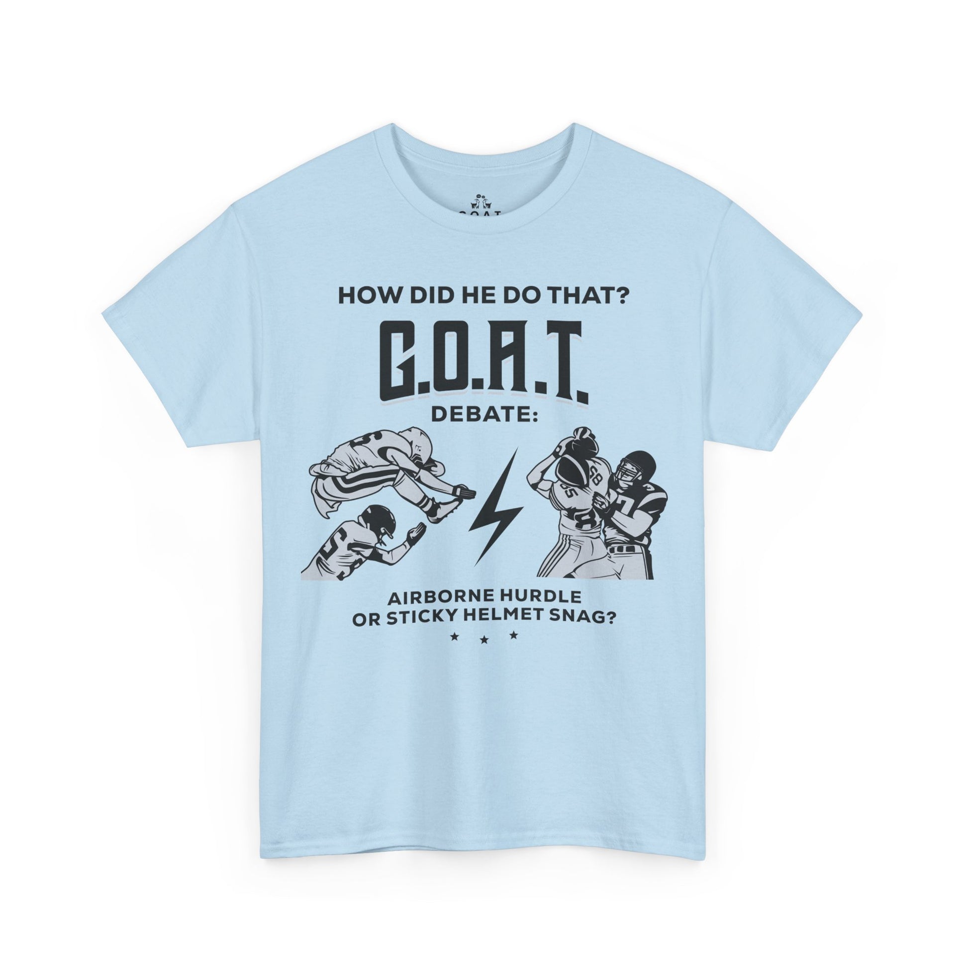 🏈⚡ G.O.A.T. Football Debate T-Shirt – Airborne Hurdle or Sticky Helmet Snag? | G.O.A.T. Talk Tees
