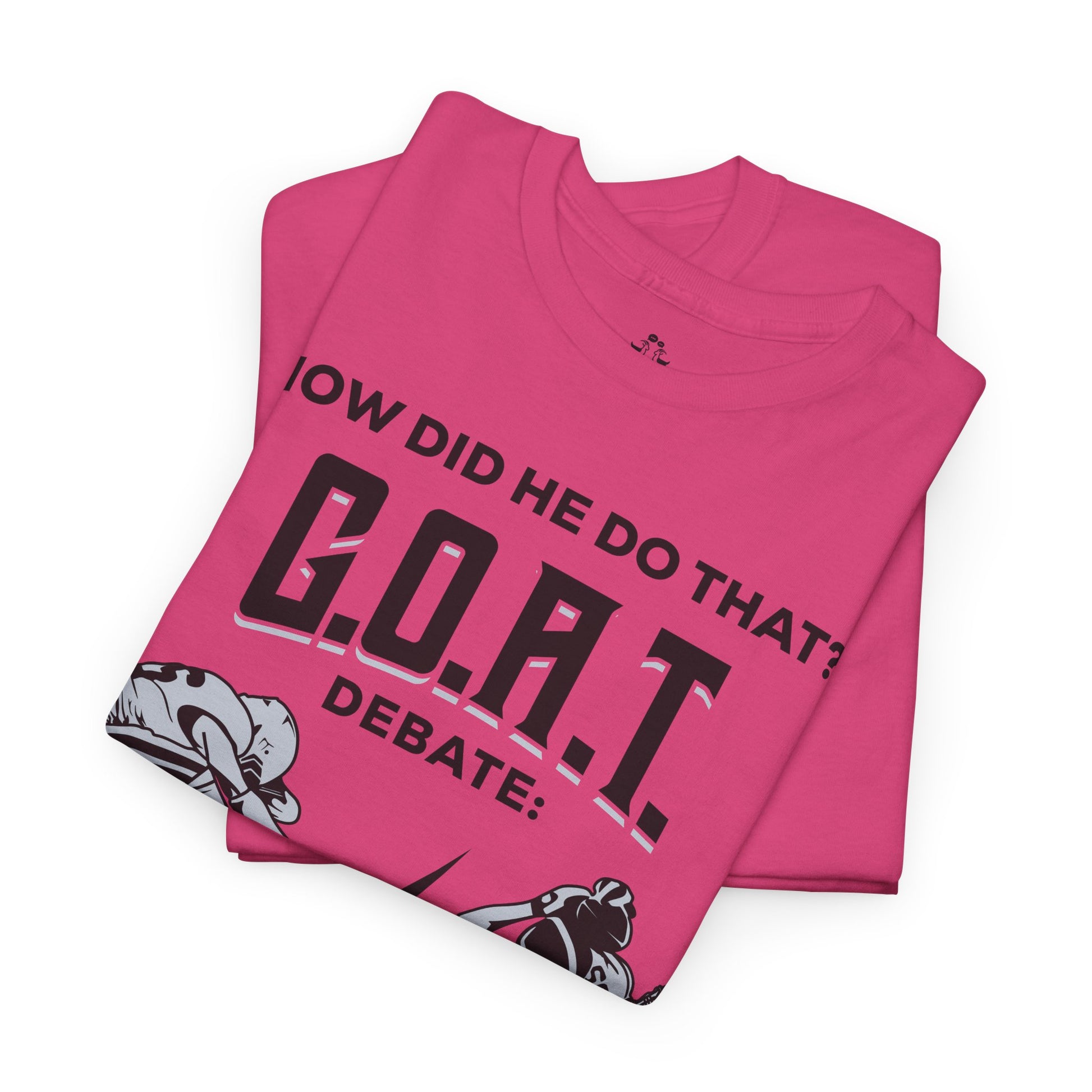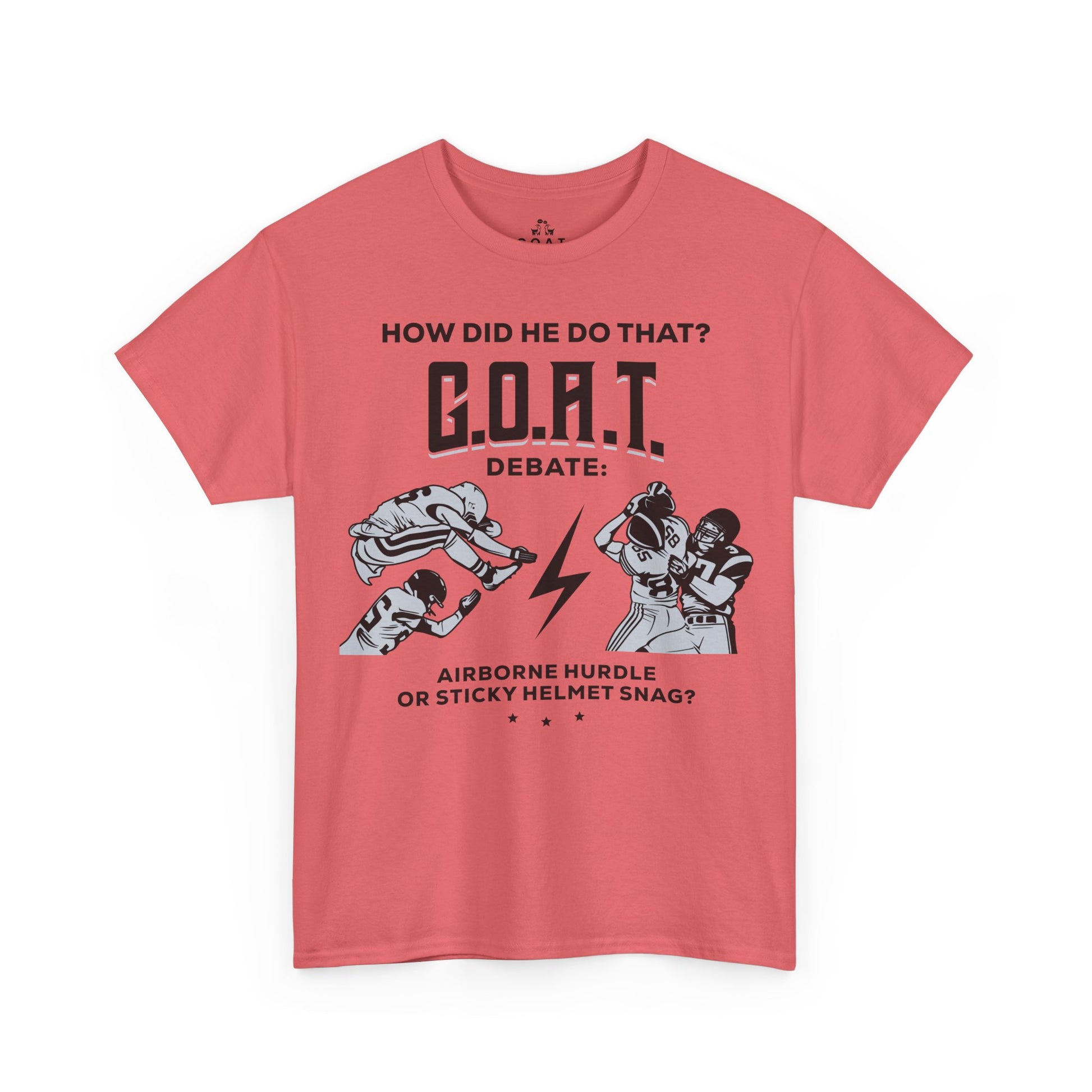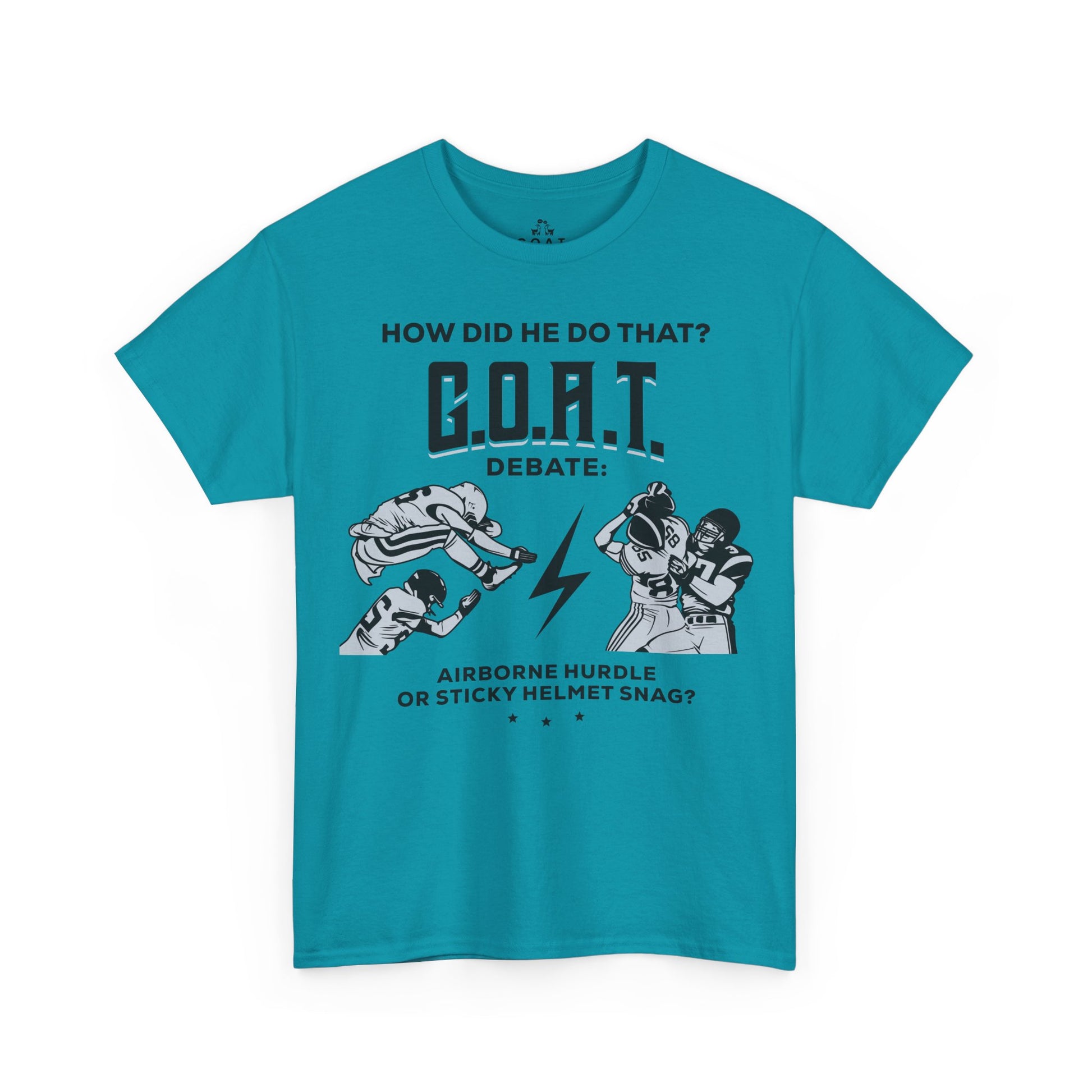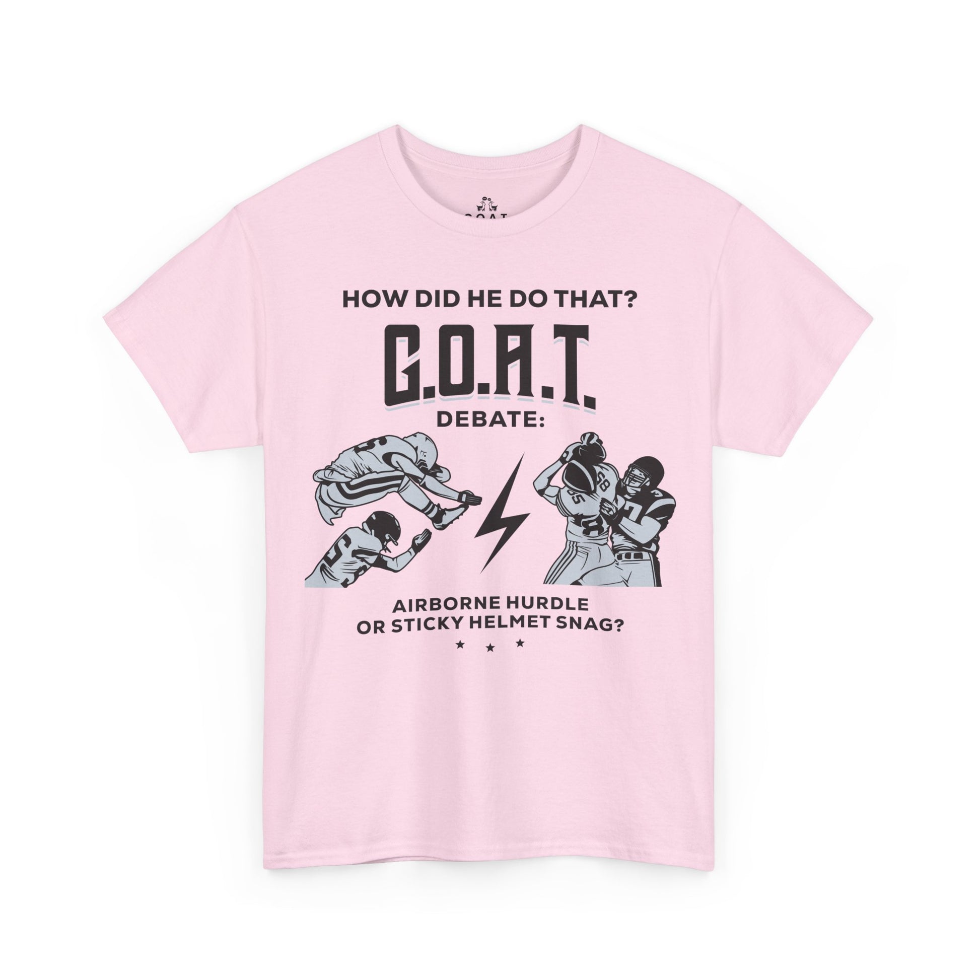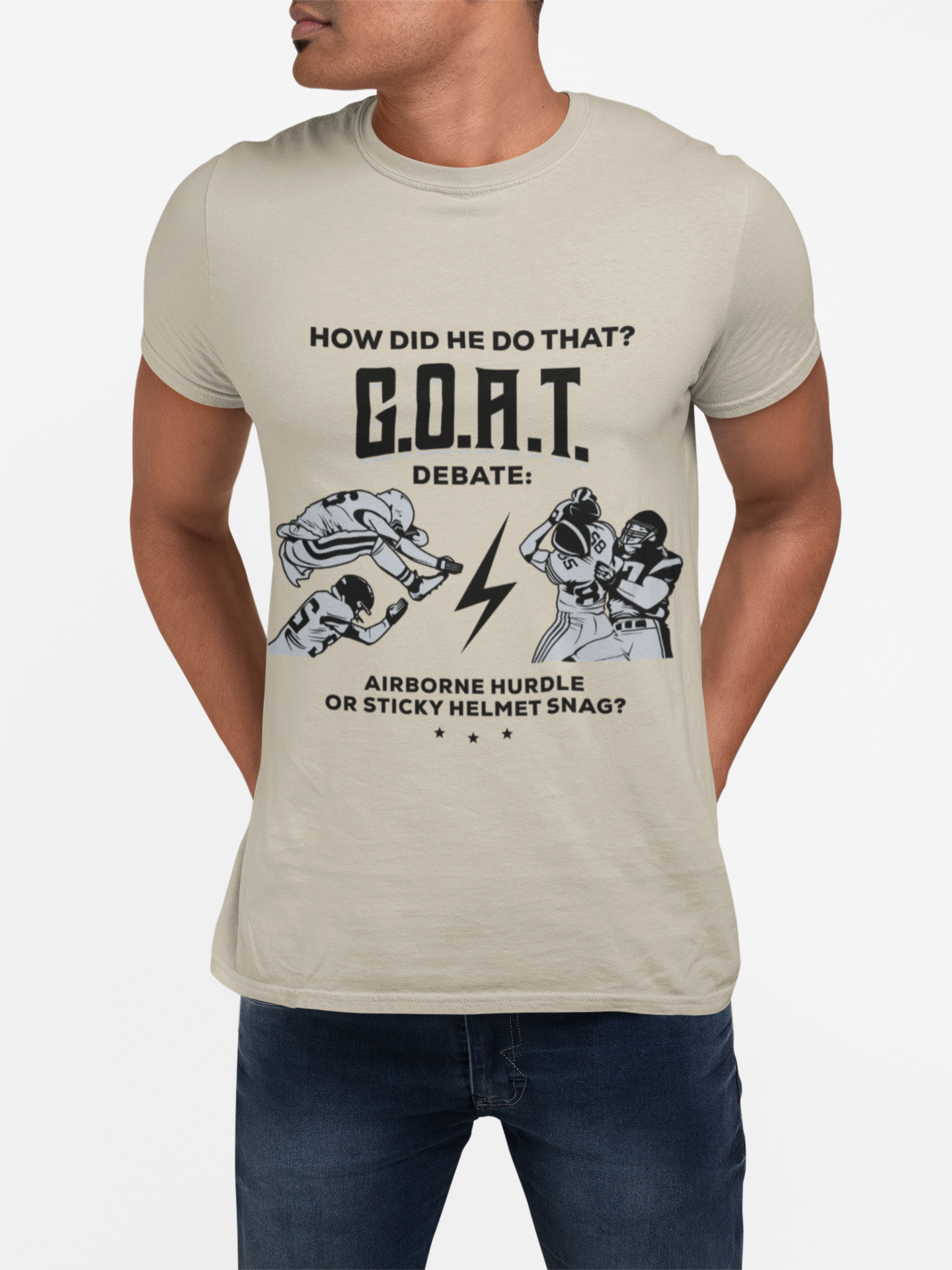 🏈⚡ G.O.A.T. Football Debate T-Shirt – Airborne Hurdle or Sticky Helmet Snag? | G.O.A.T. Talk Tees