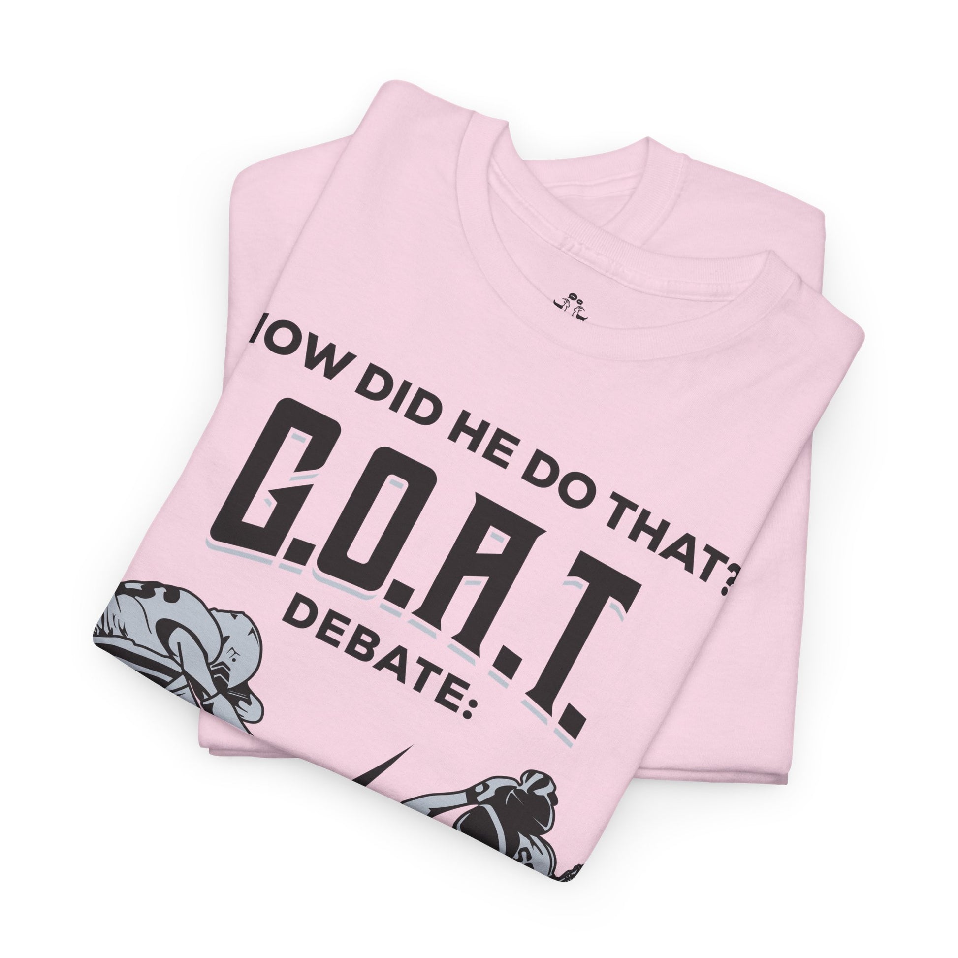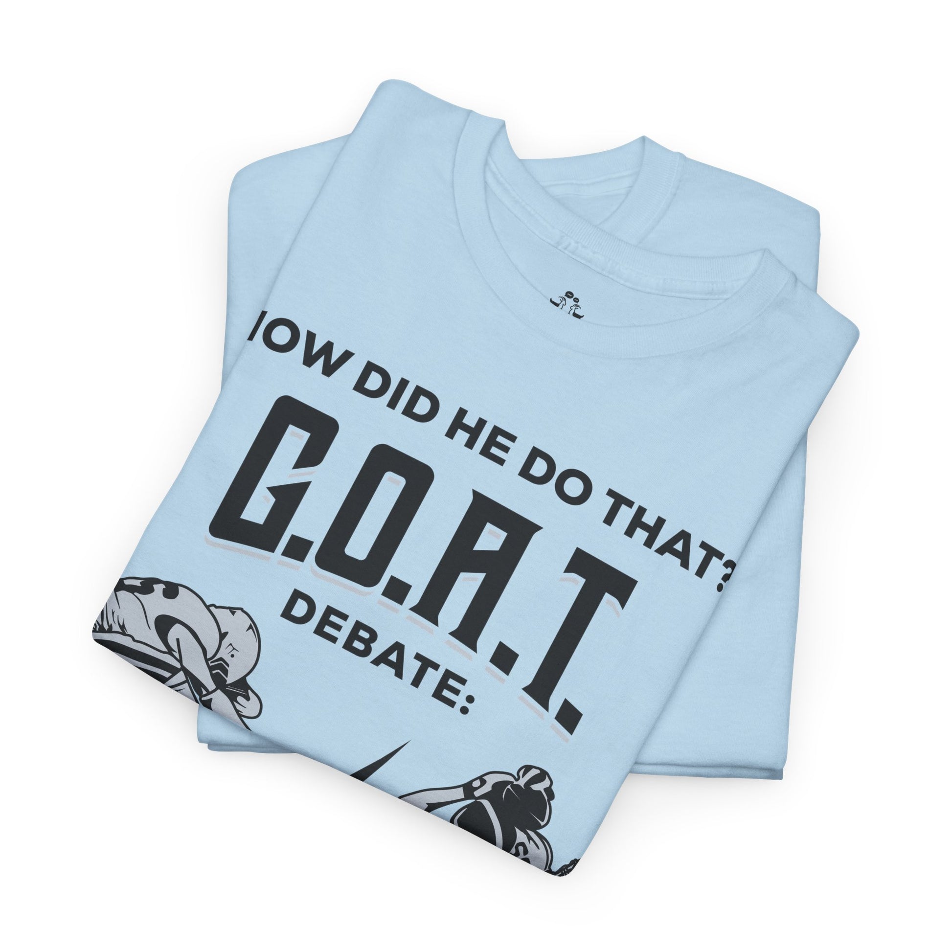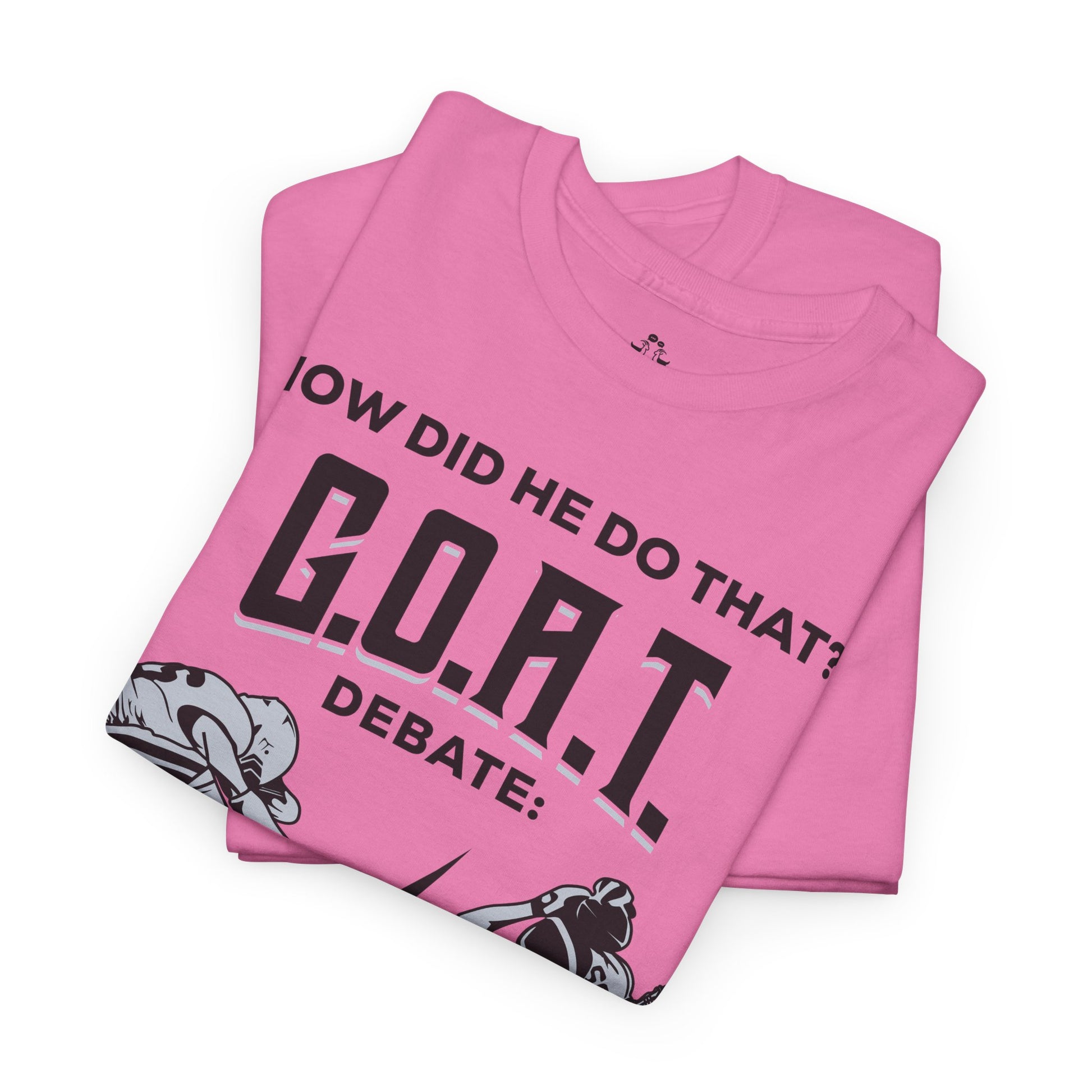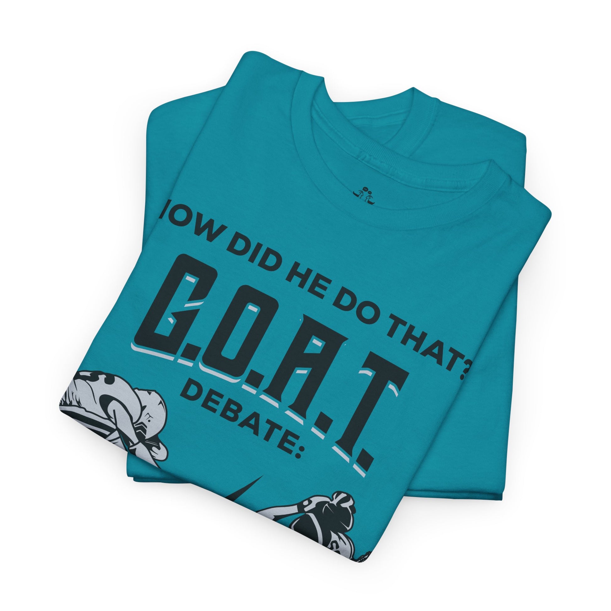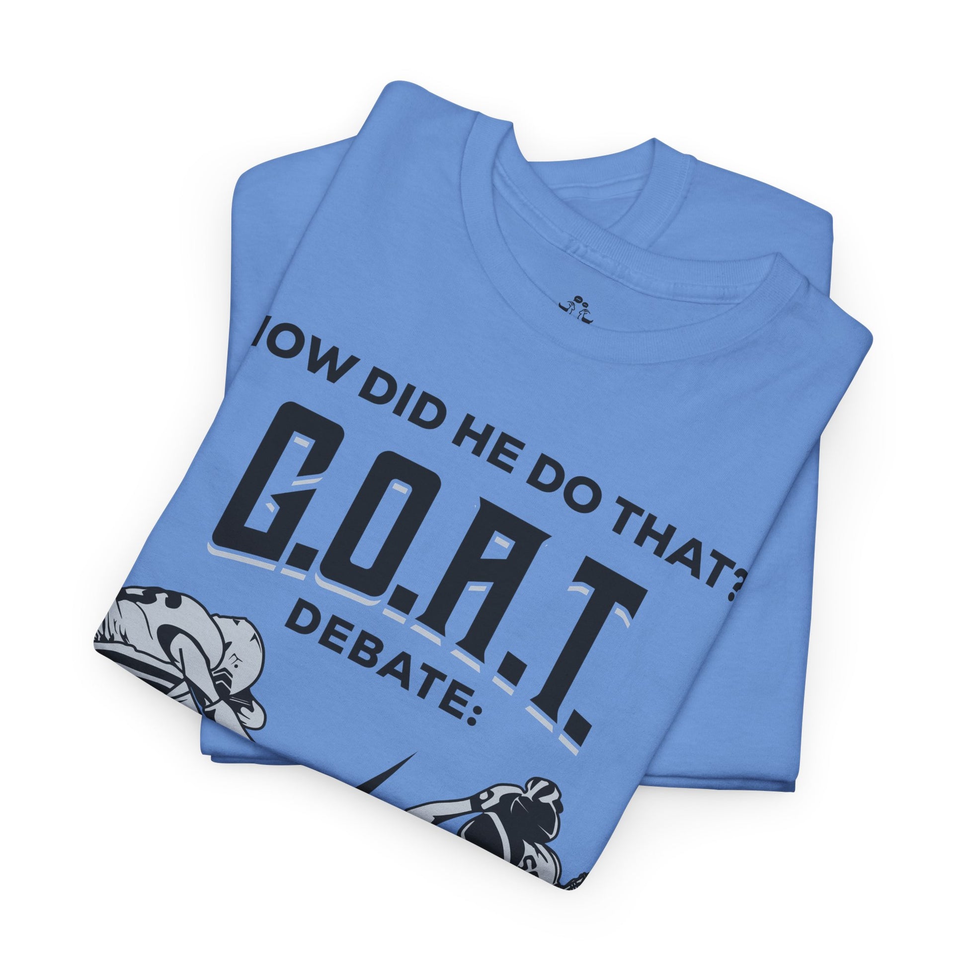 🏈⚡ G.O.A.T. Football Debate T-Shirt – Airborne Hurdle or Sticky Helmet Snag? | G.O.A.T. Talk Tees