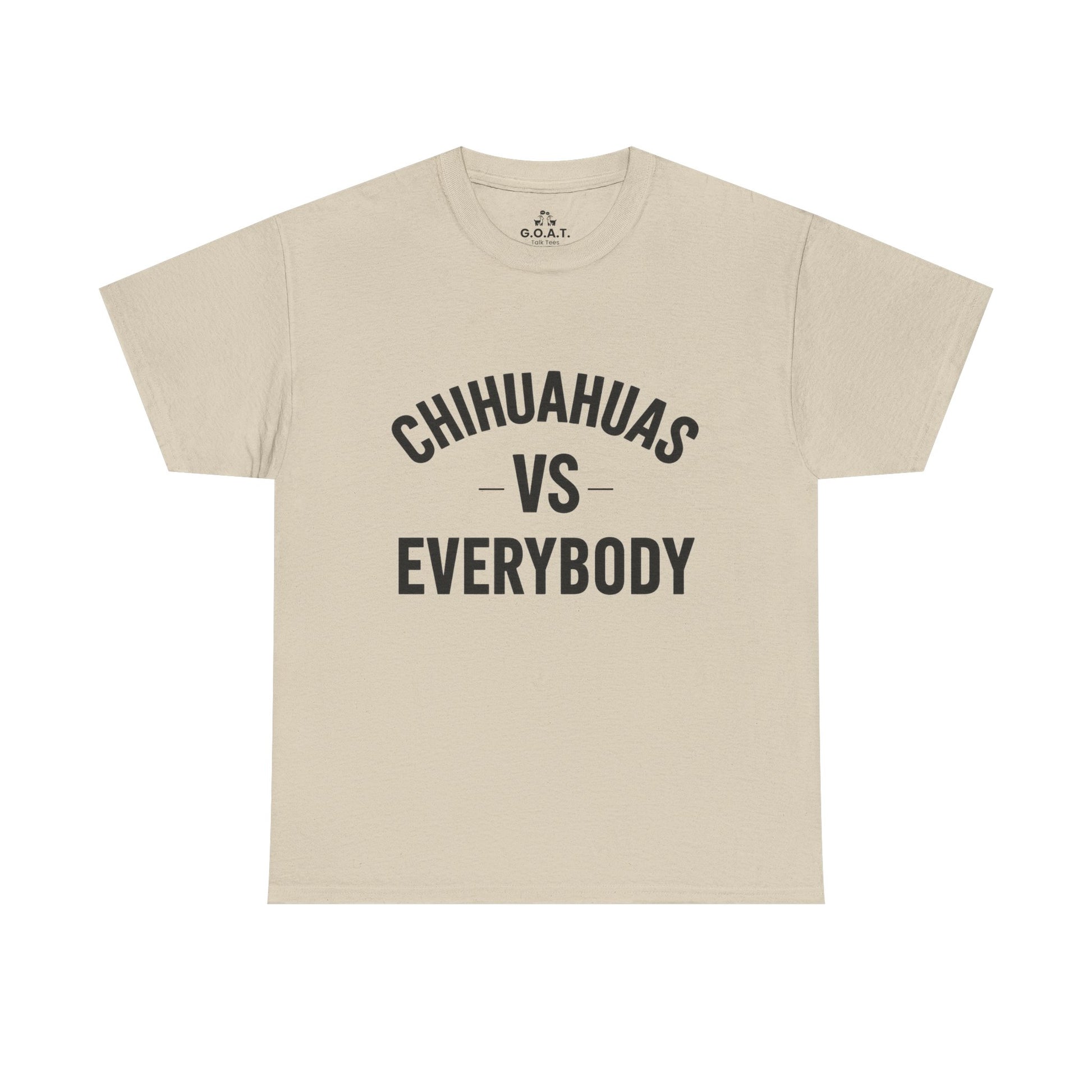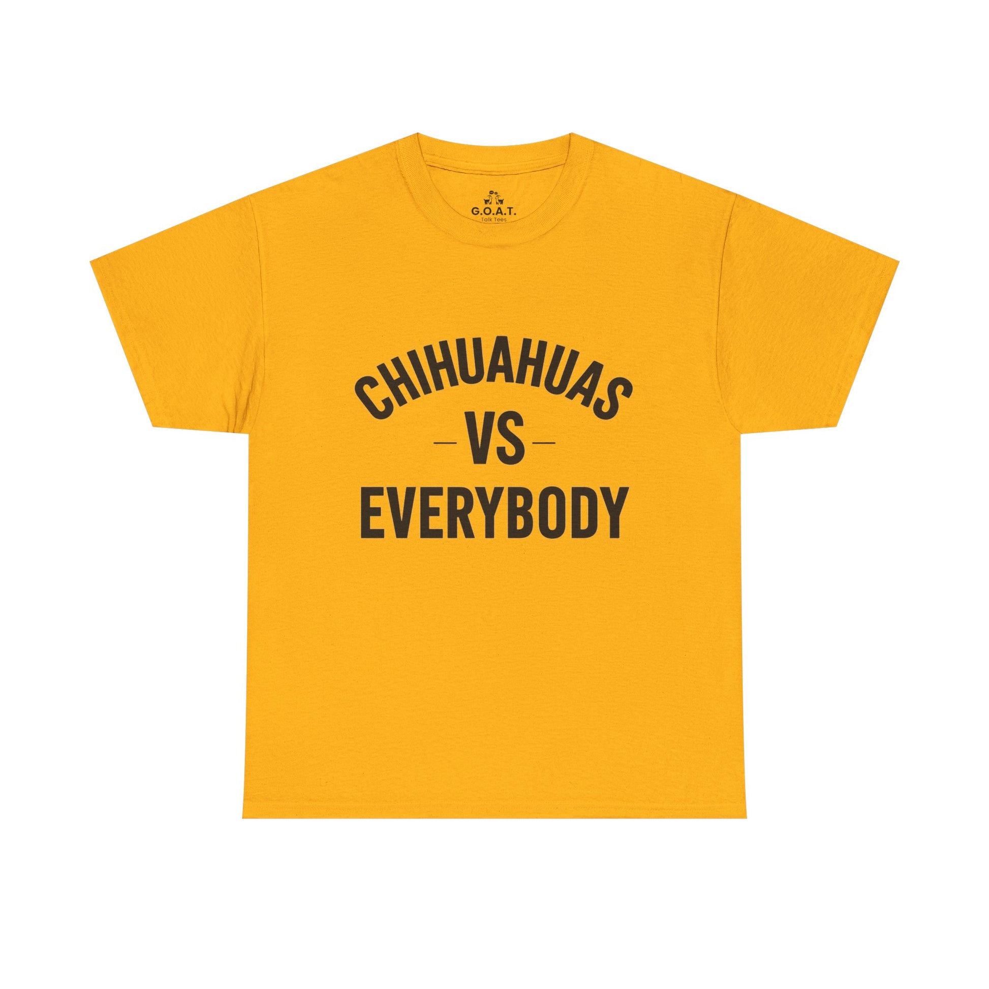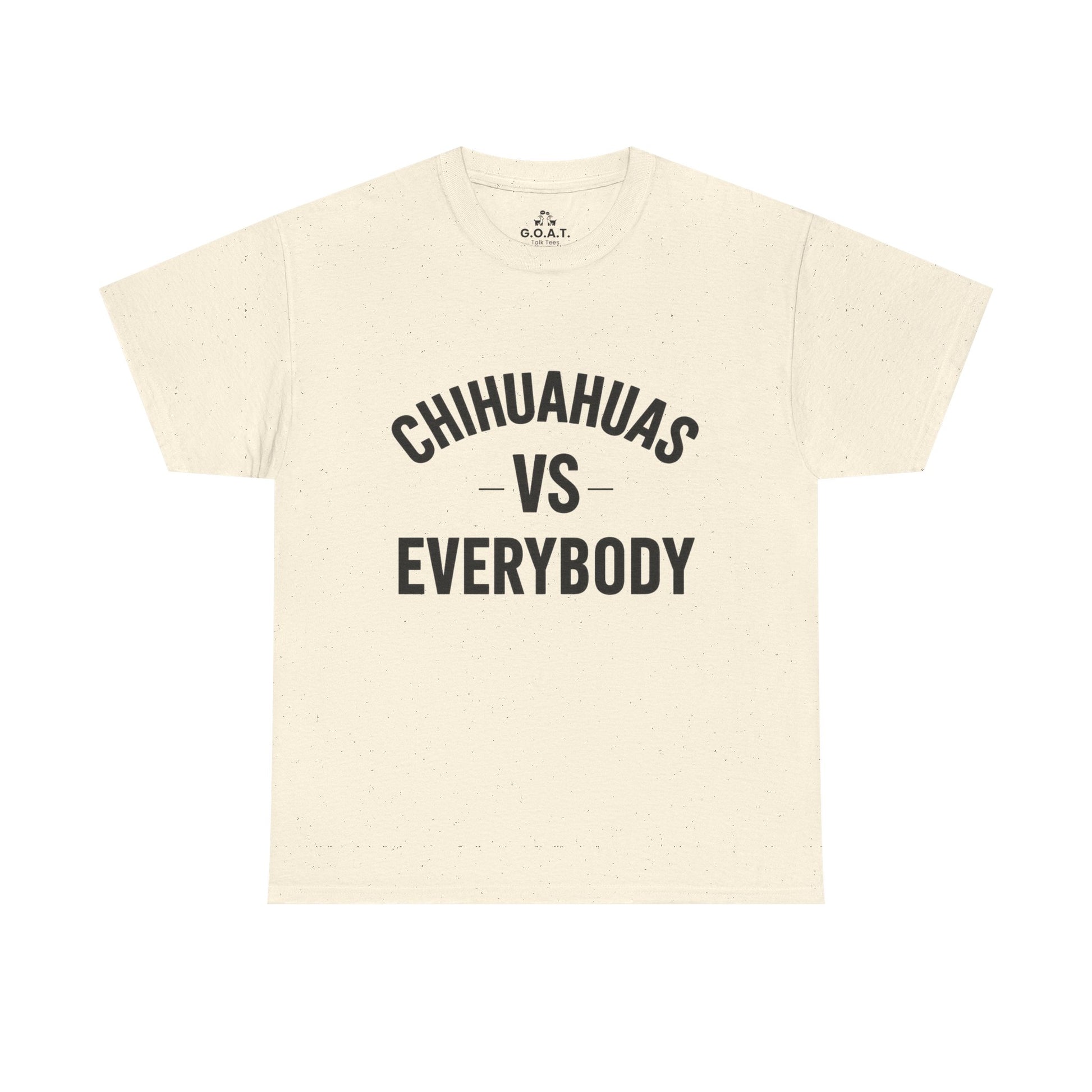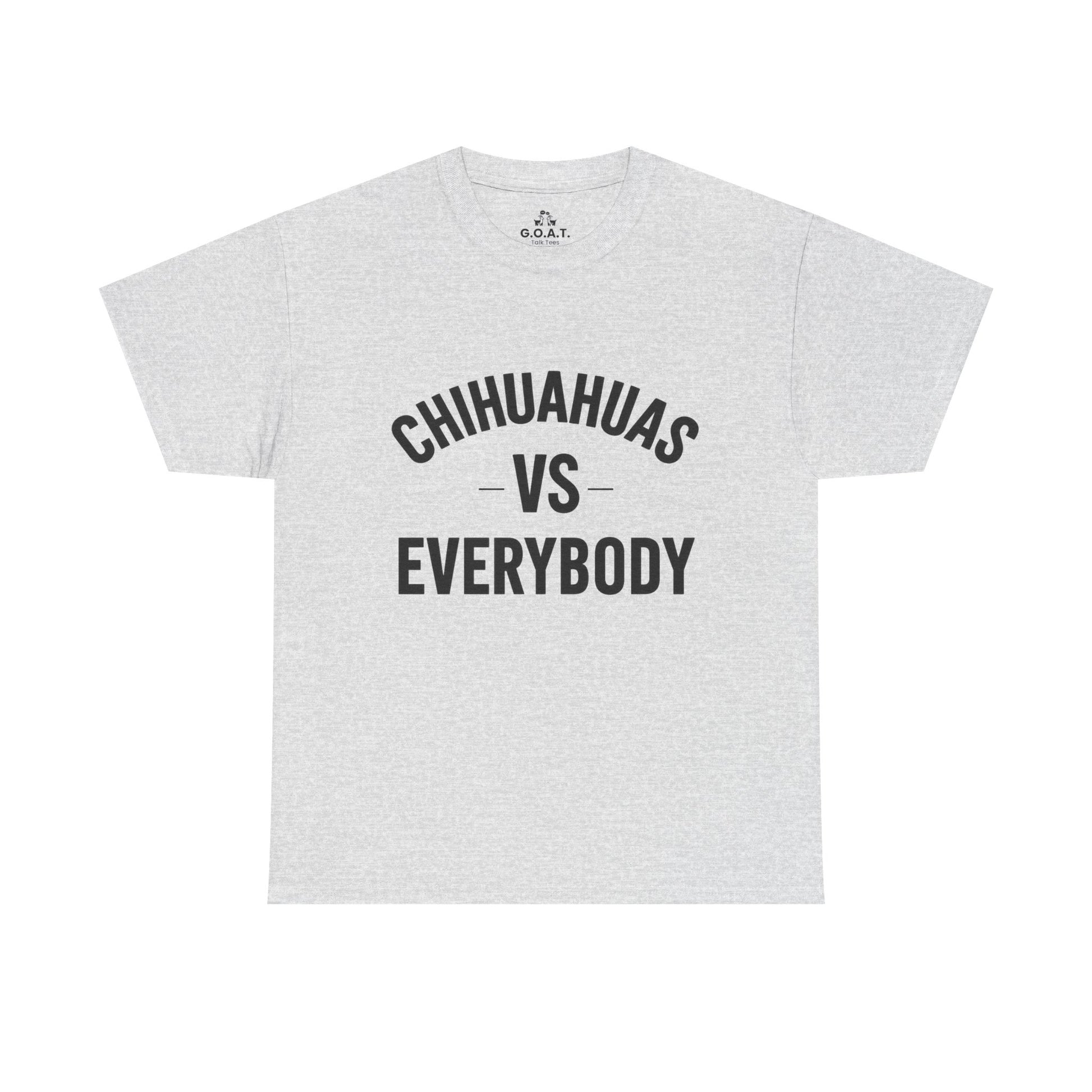 Show the world how much you love your mighty little companion with this Chihuahua vs Everybody tee from the G.O.A.T. Talk Tees ILMD (I Love My Dog) Series.