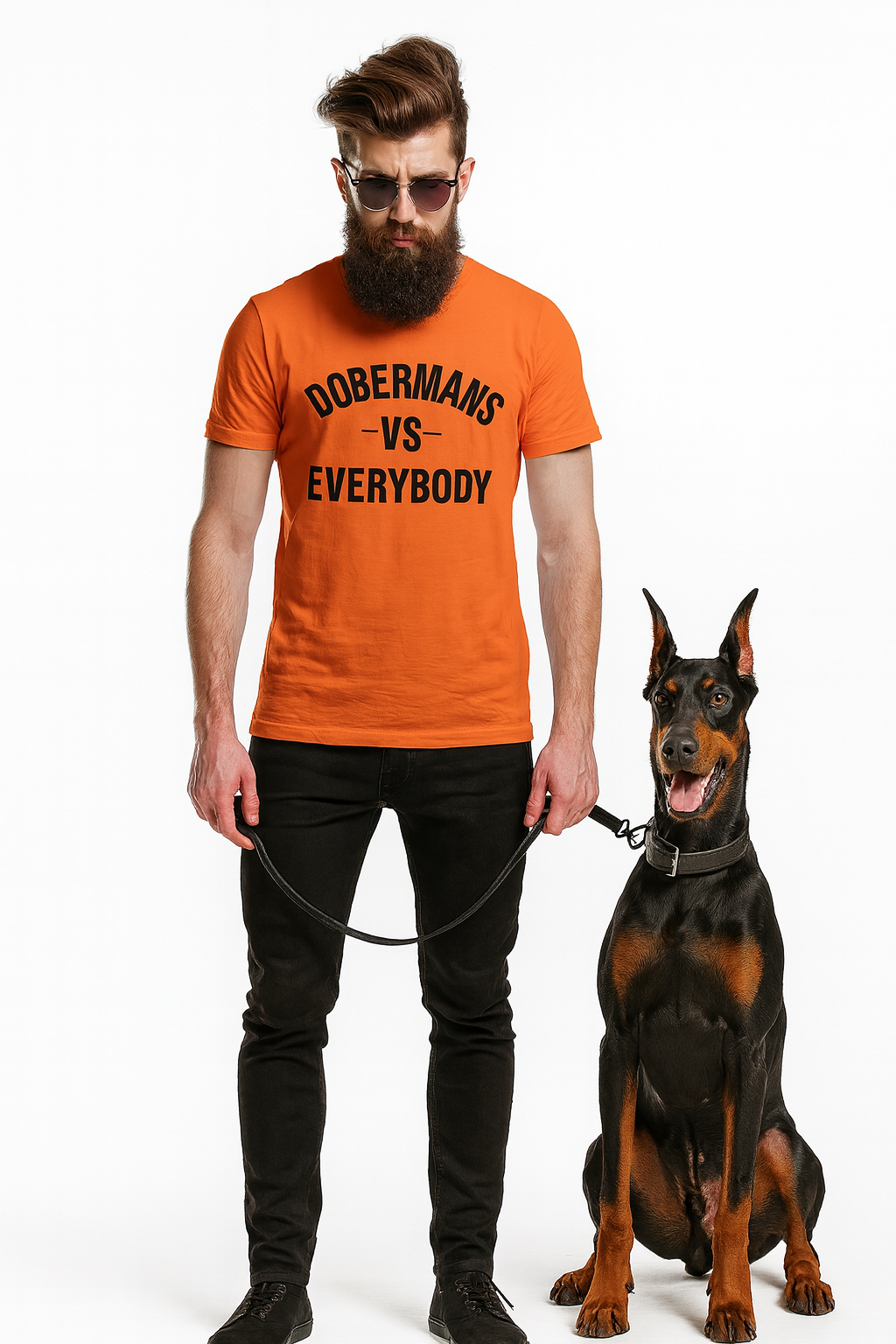 Show love for your loyal protector with this Dobermans vs Everybody Tee from the G.O.A.T. Talk Tees ILMD (I Love My Dog) Series.