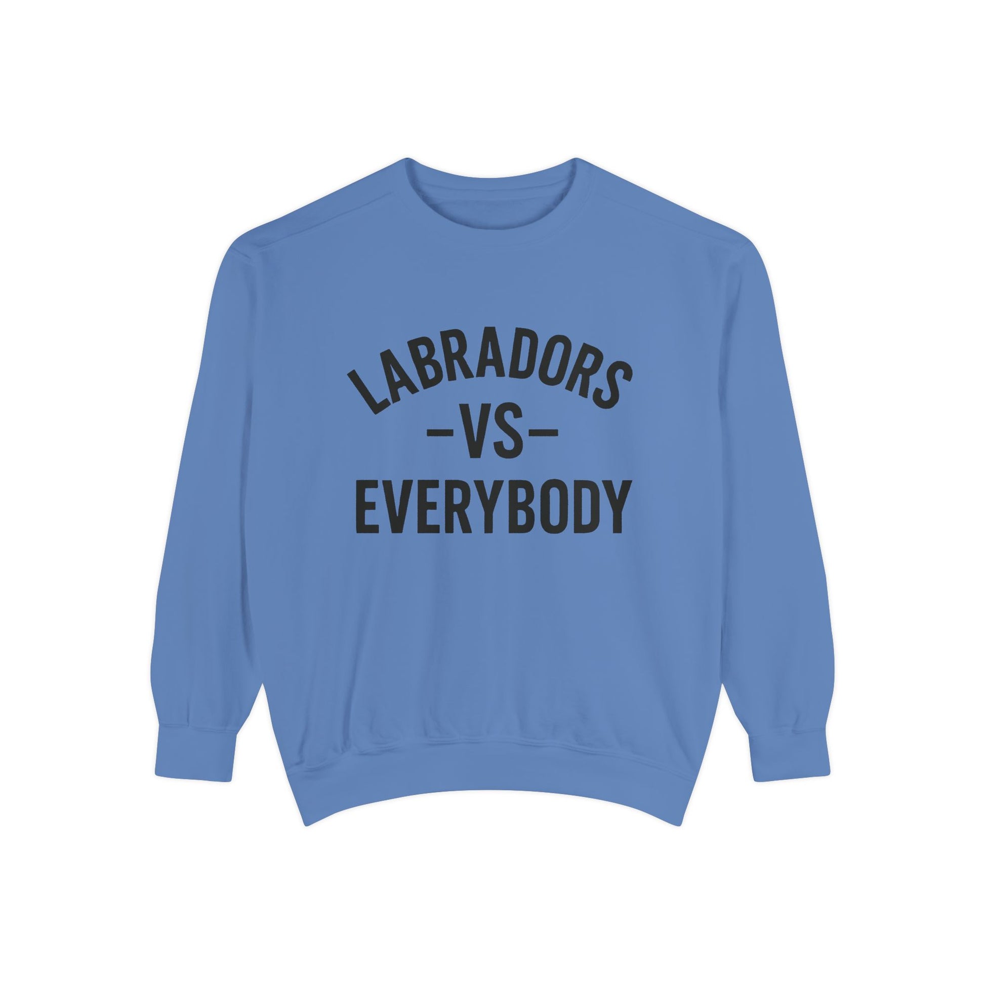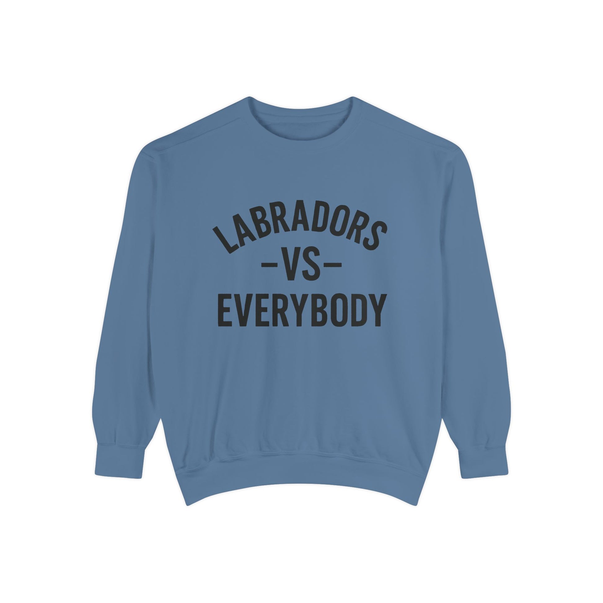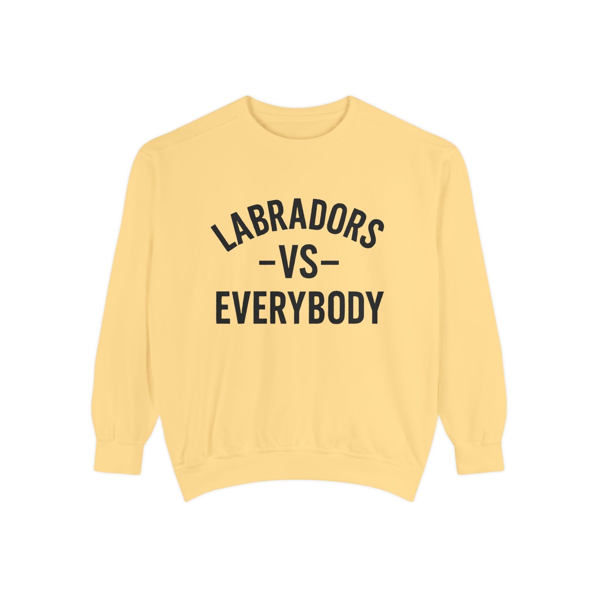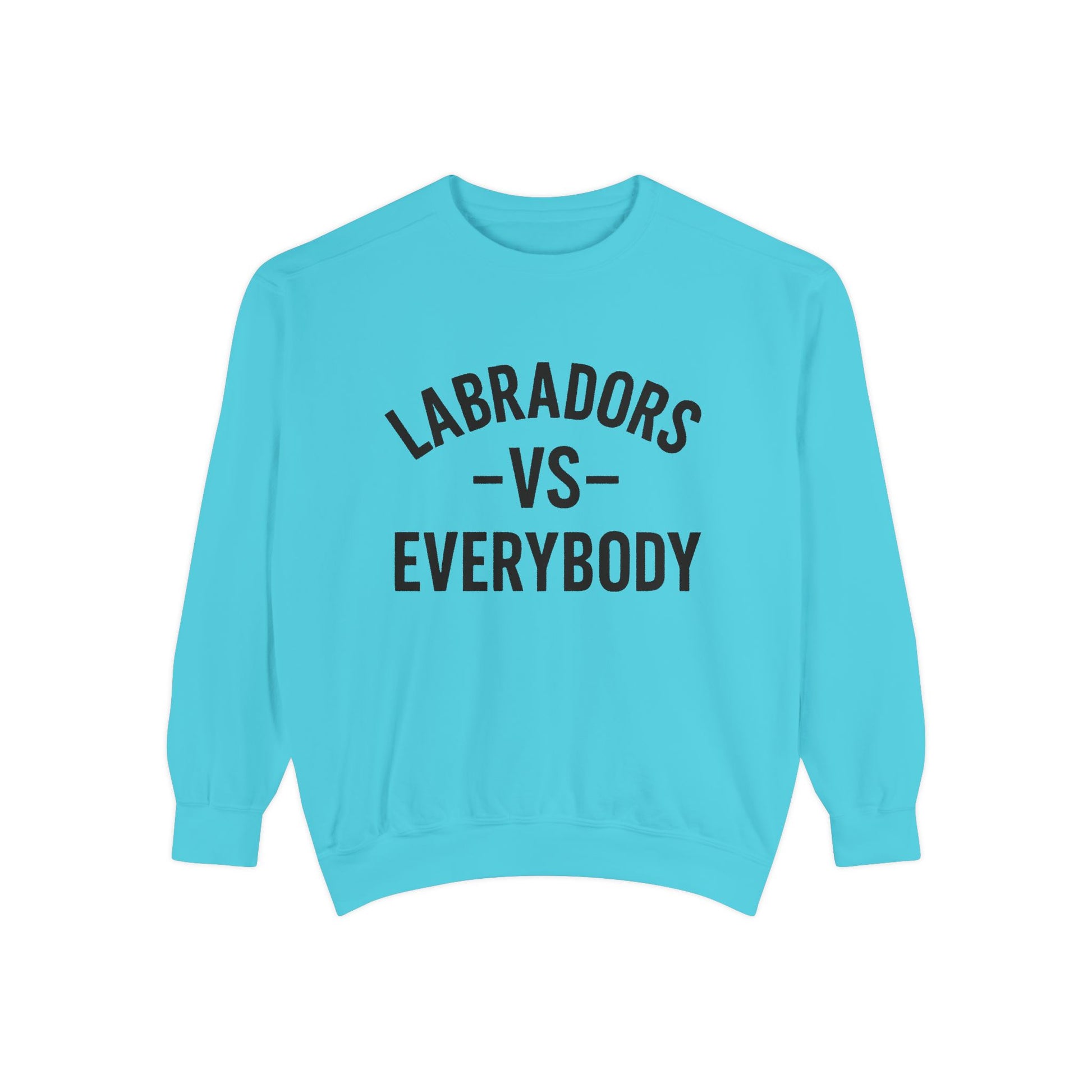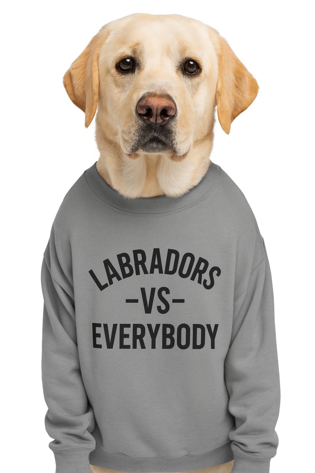 Show your Lab pride with this Labradors vs Everybody crewneck from the G.O.A.T. Talk Tees ILMD (I Love My Dog) Series.
