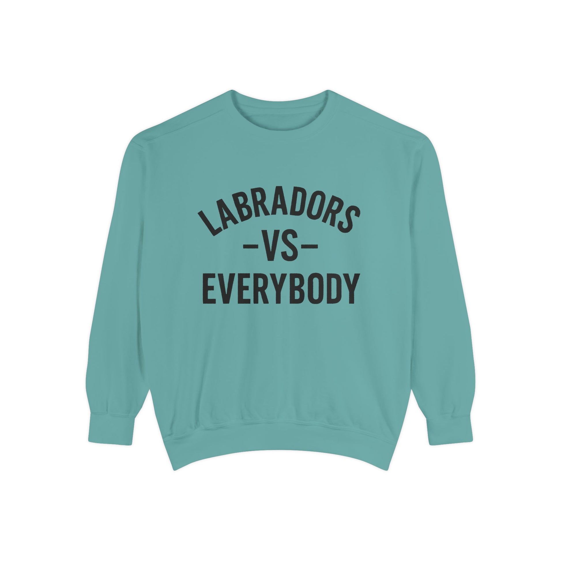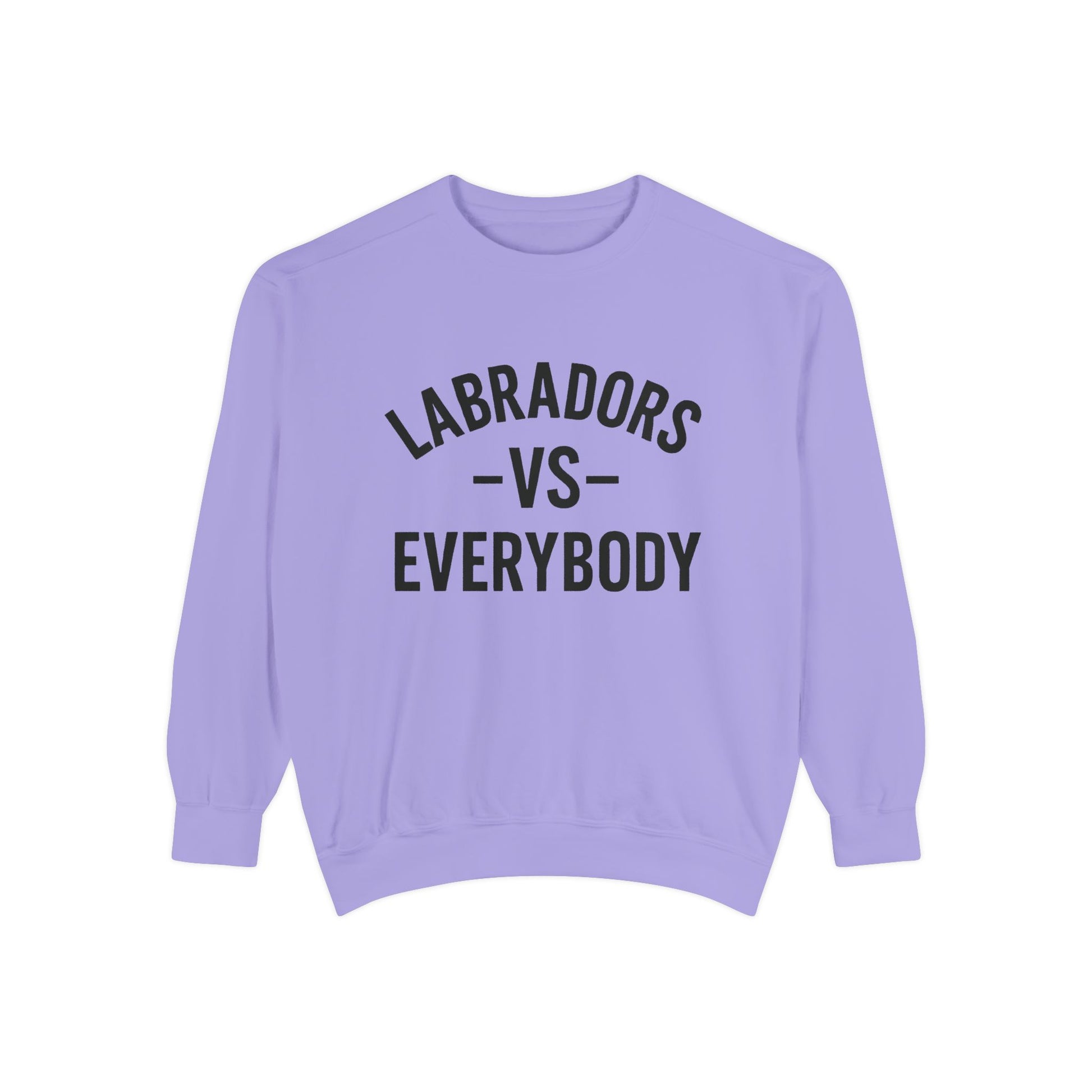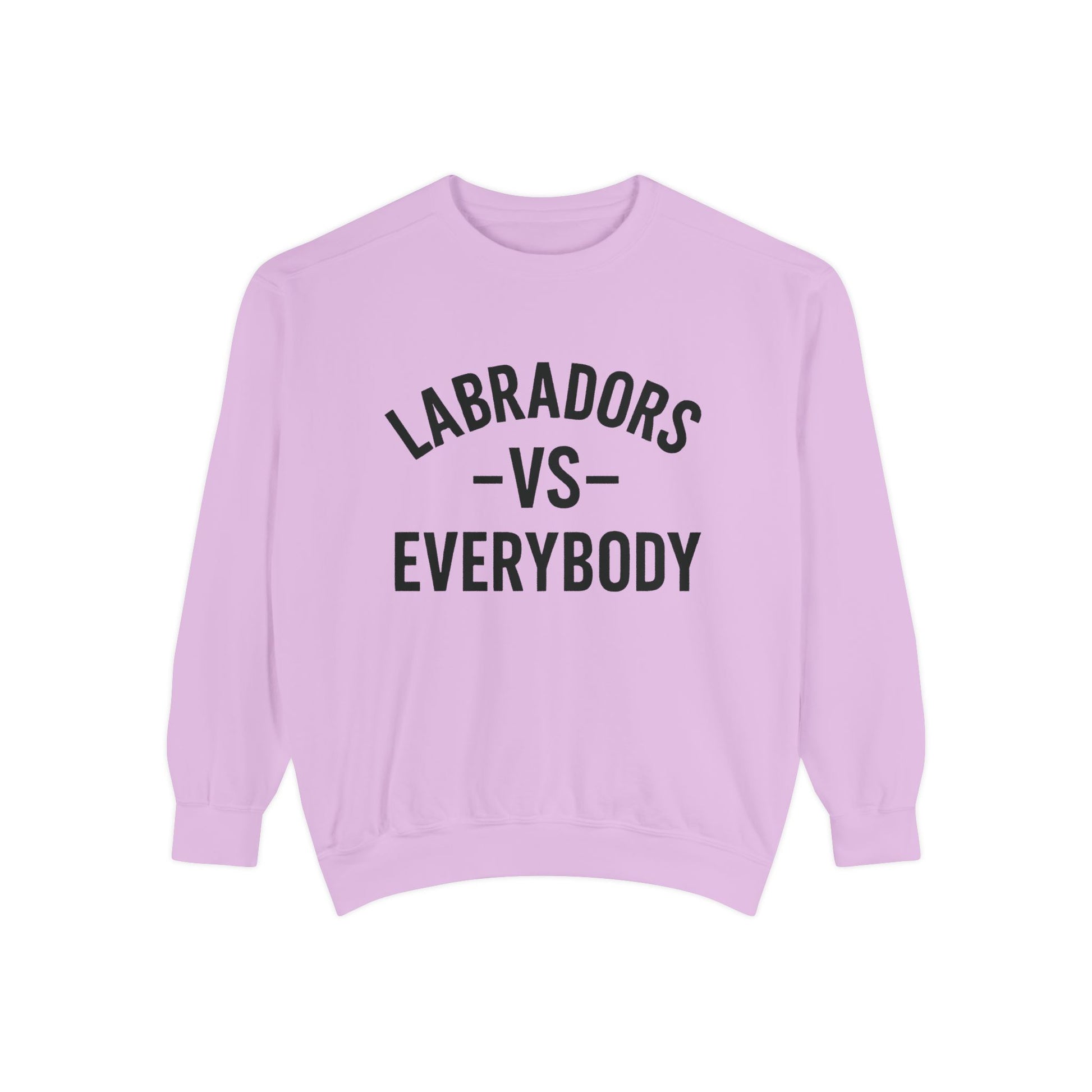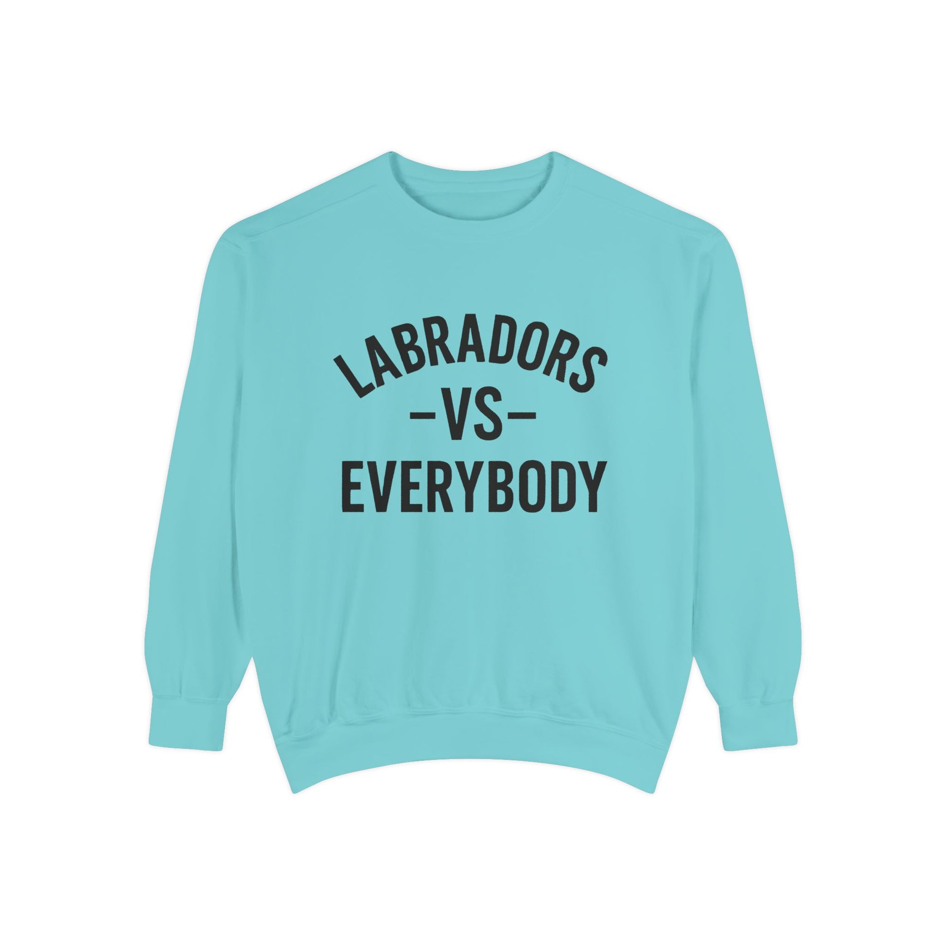 Show your Lab pride with this Labradors vs Everybody crewneck from the G.O.A.T. Talk Tees ILMD (I Love My Dog) Series.