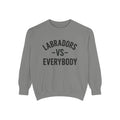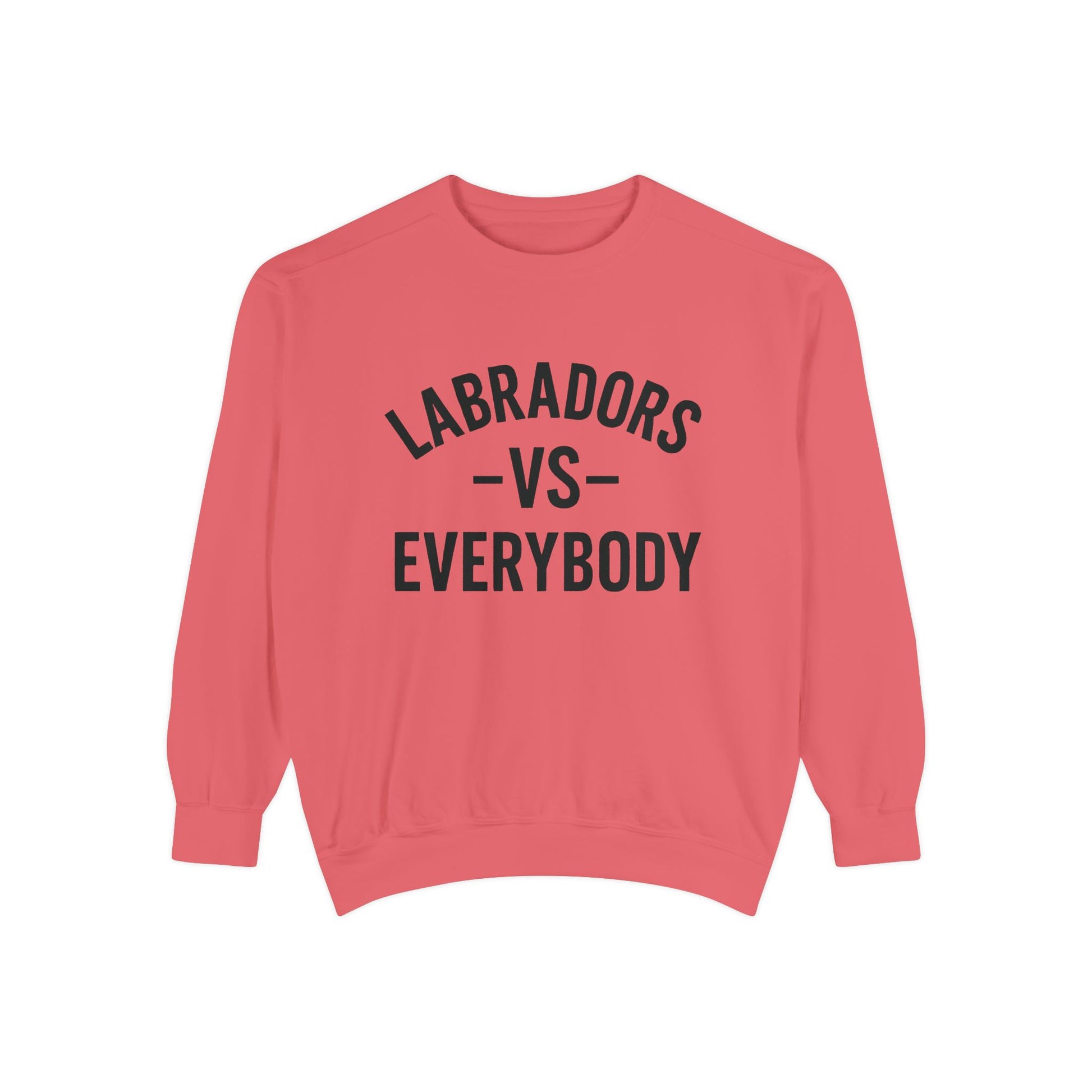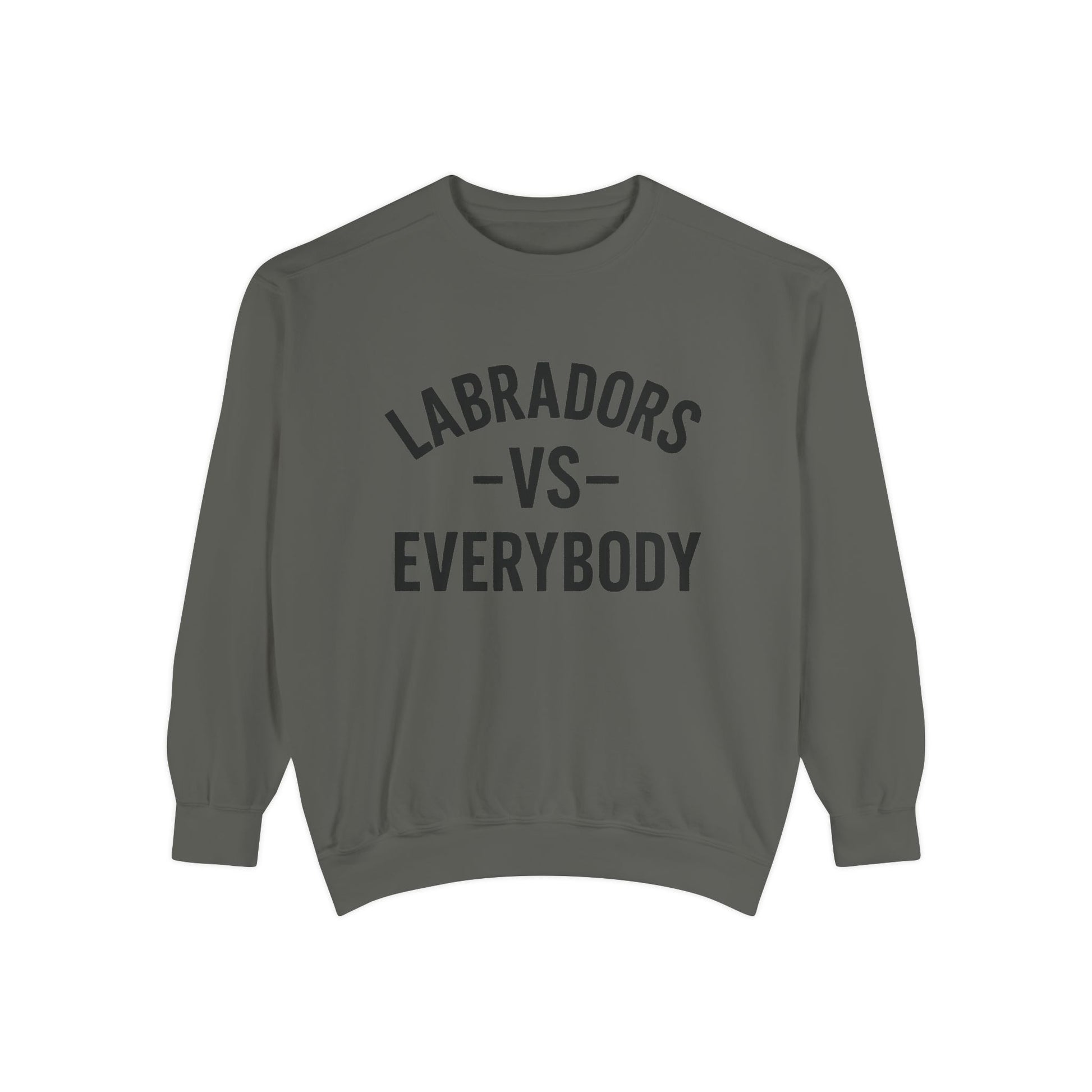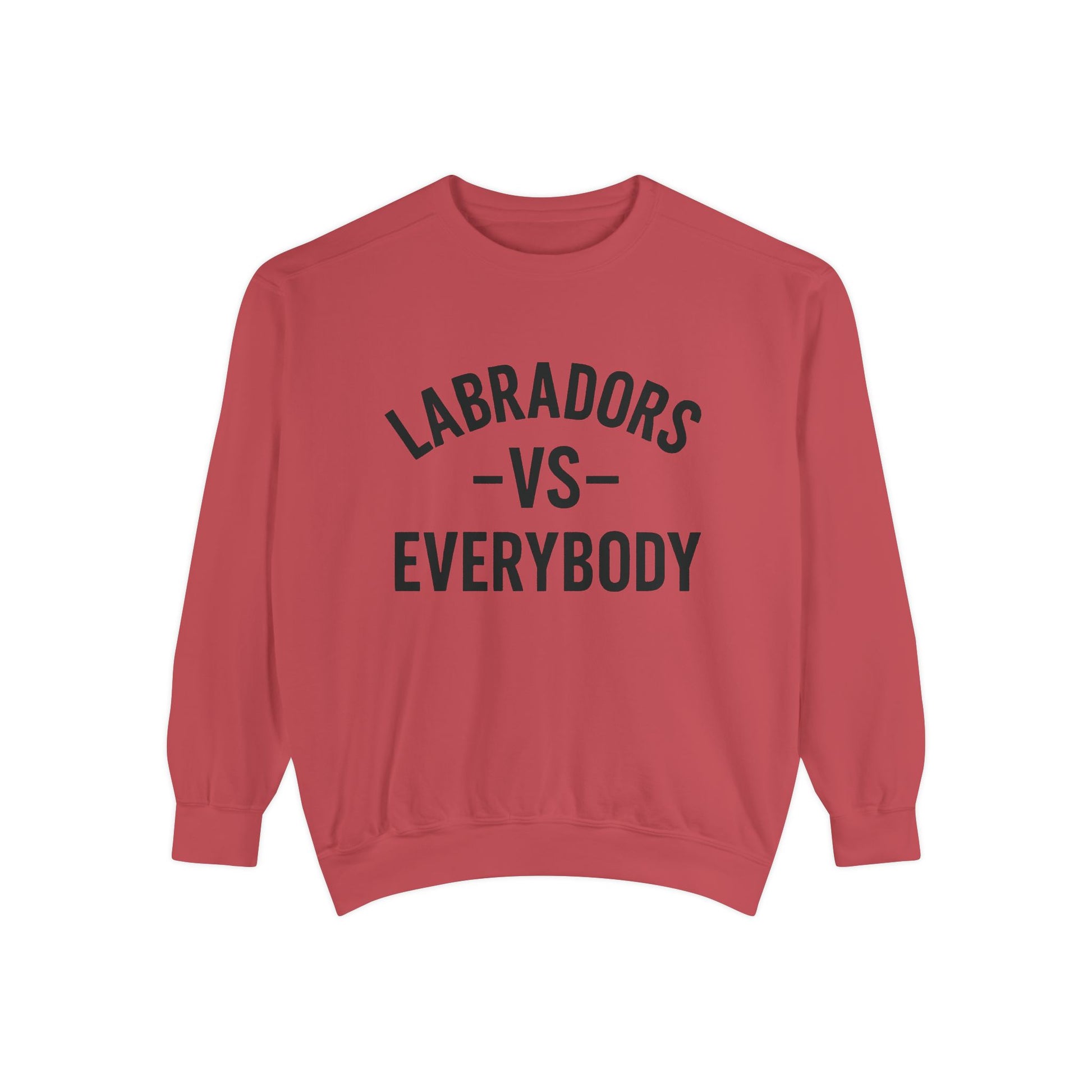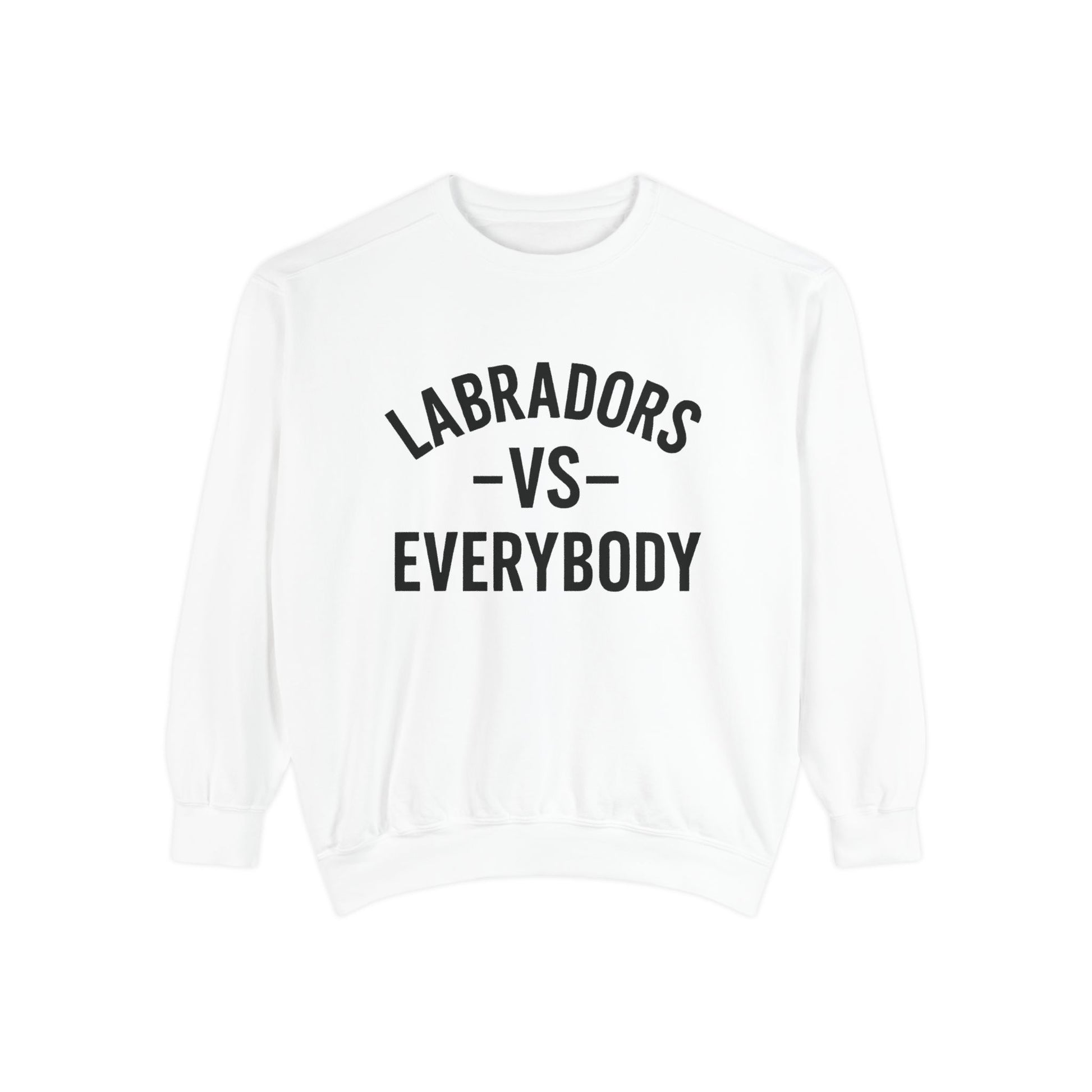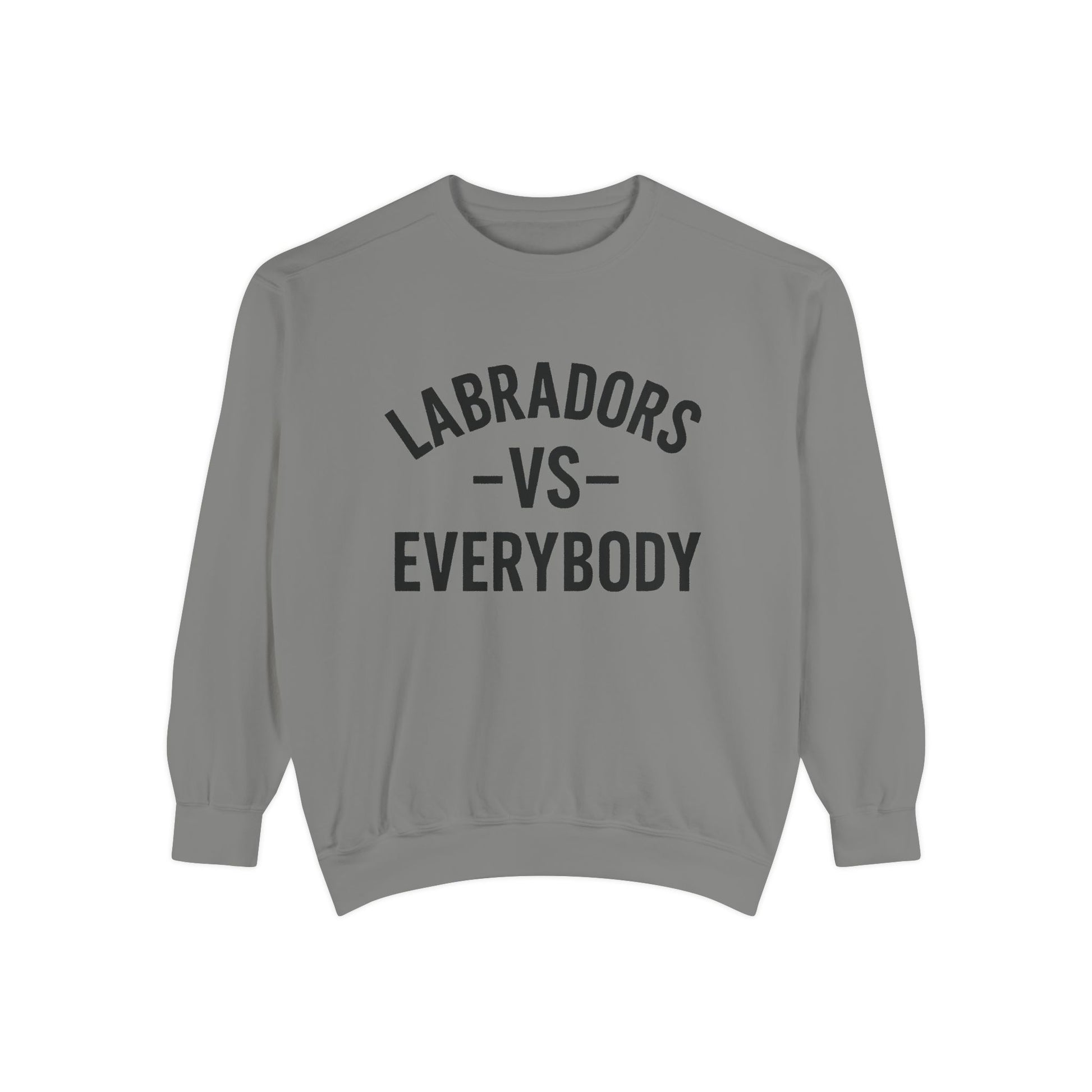 Show your Lab pride with this Labradors vs Everybody crewneck from the G.O.A.T. Talk Tees ILMD (I Love My Dog) Series.