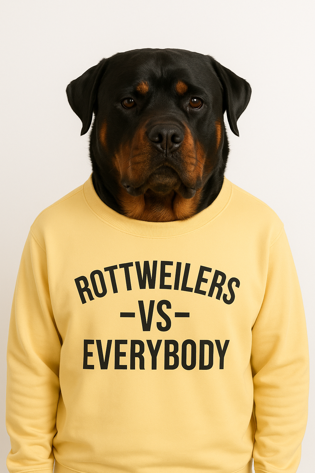Show your Rottweiler pride with this bold Rottweilers vs Everybody sweatshirt â a must-have for true Rottie lovers. Designed by G.O.A.T. Talk Tees, this premium crewneck celebrates the loyalty, strength, and big-heart energy of one of the worldâs most iconic breeds.
