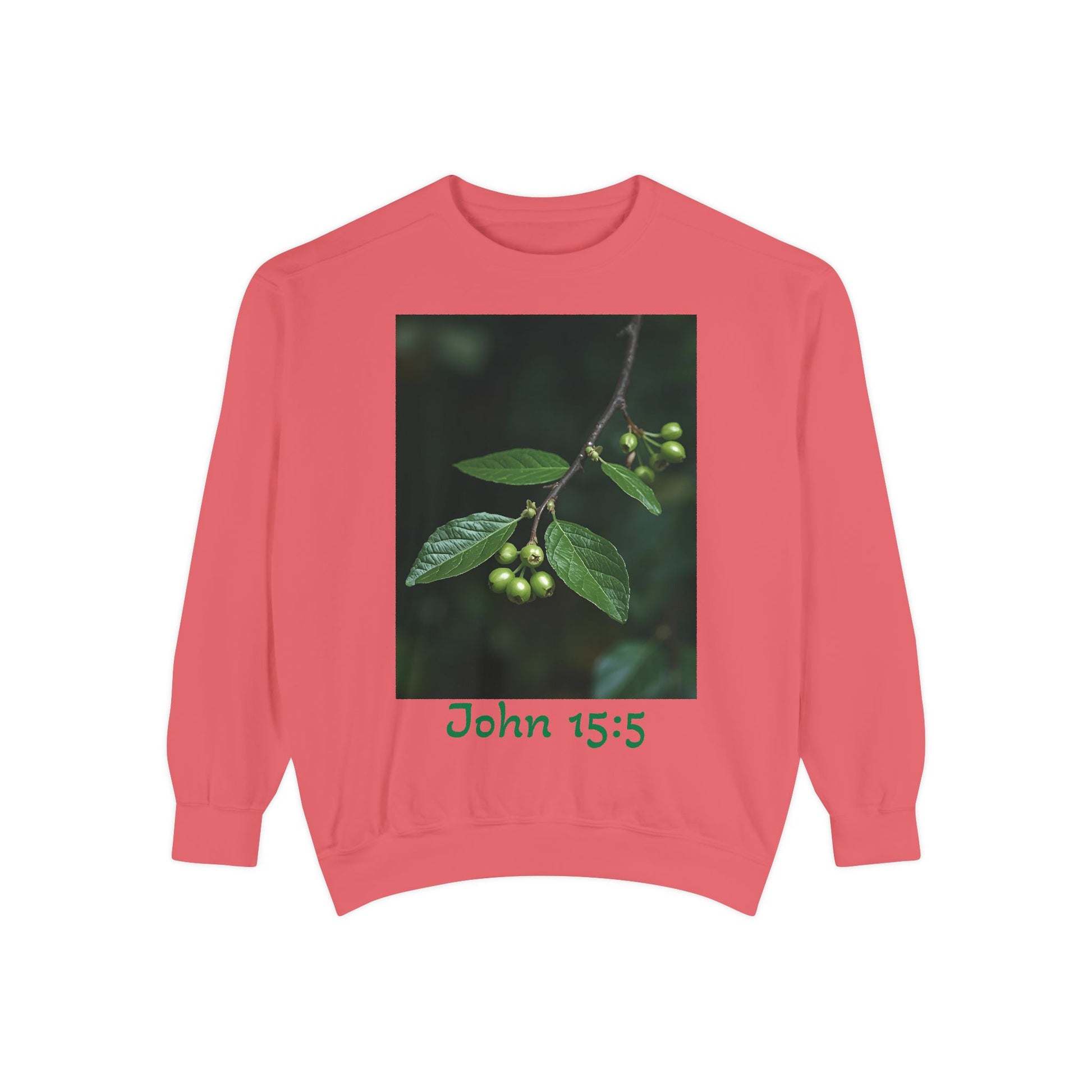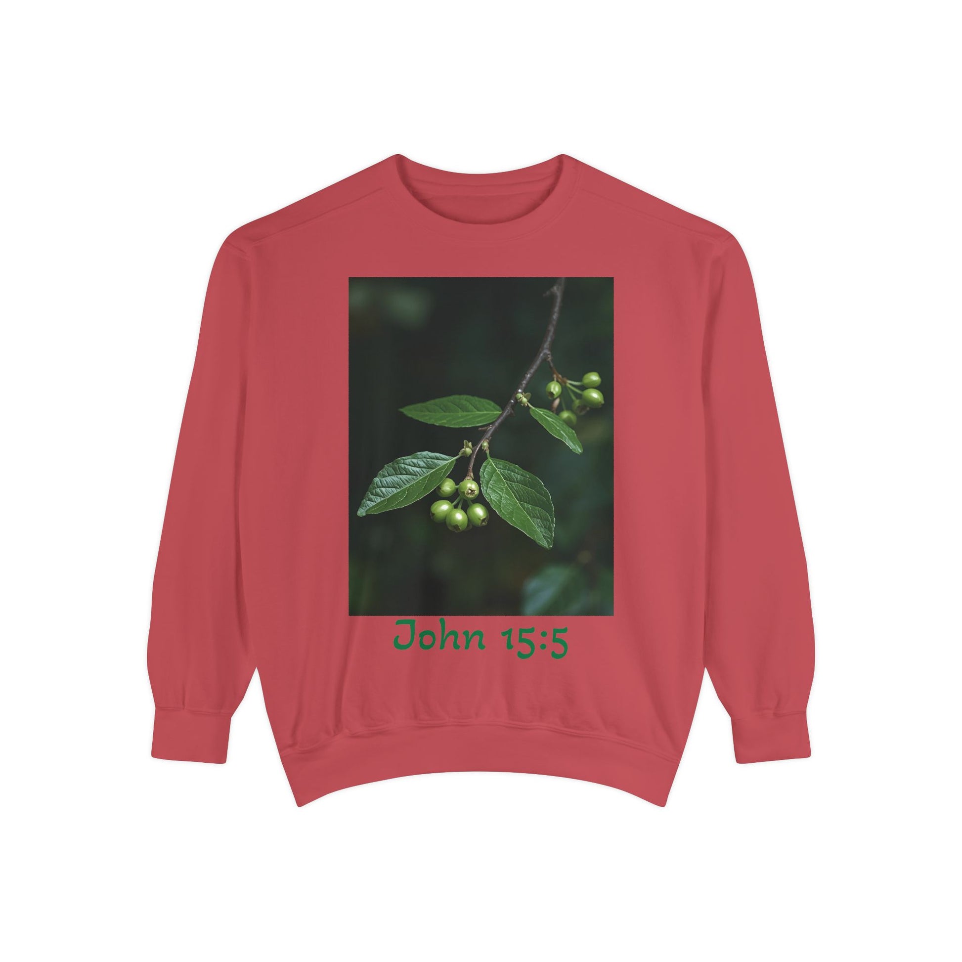 Stay rooted in faith with this John 15:5 Scripture Sweatshirt, featuring a peaceful vine-and-branches design printed in rich, natural tones. Inspired by Jesus’ words, “I am the vine; you are the branches,” this sweatshirt is a reminder that true strength and fruitfulness come from staying connected to Him.