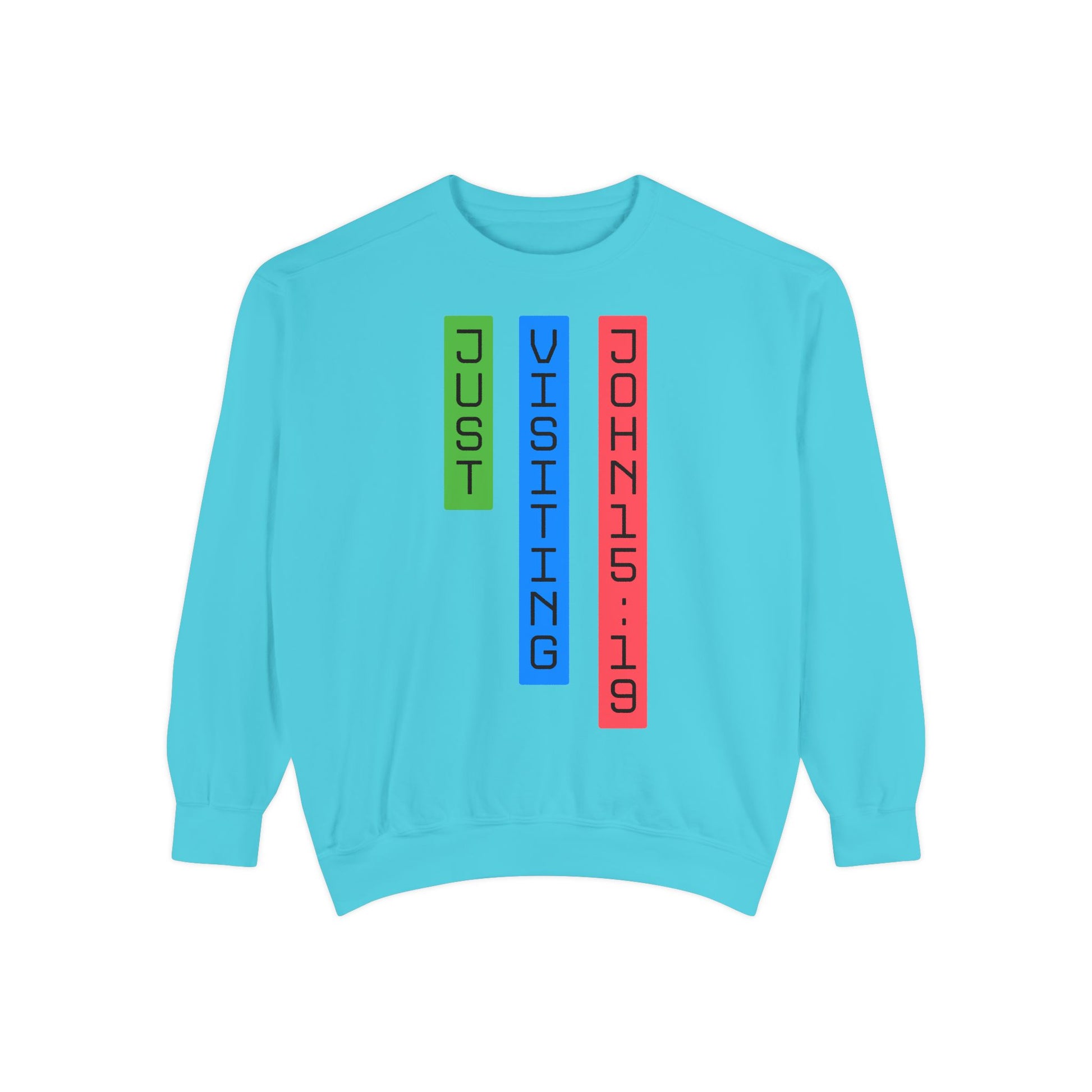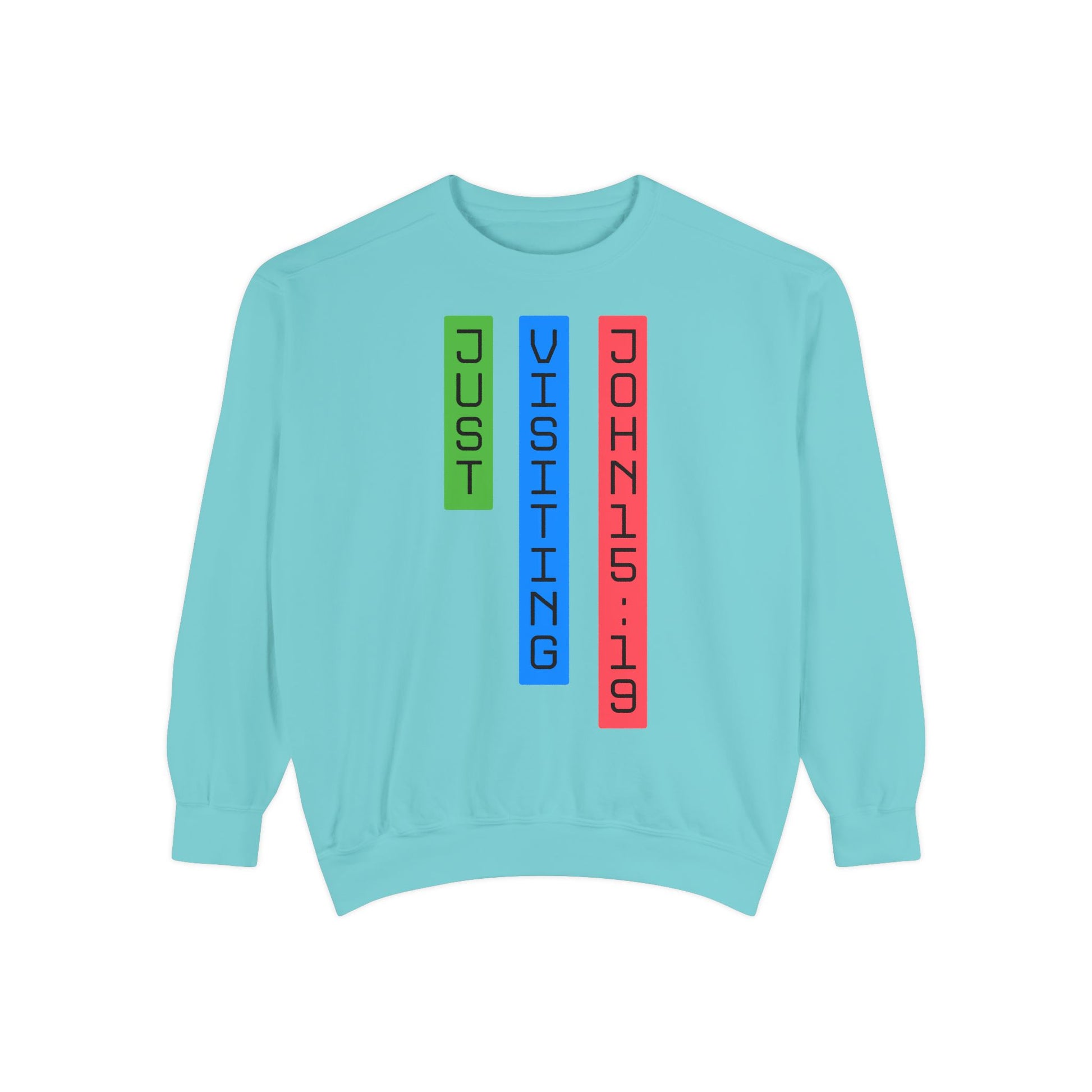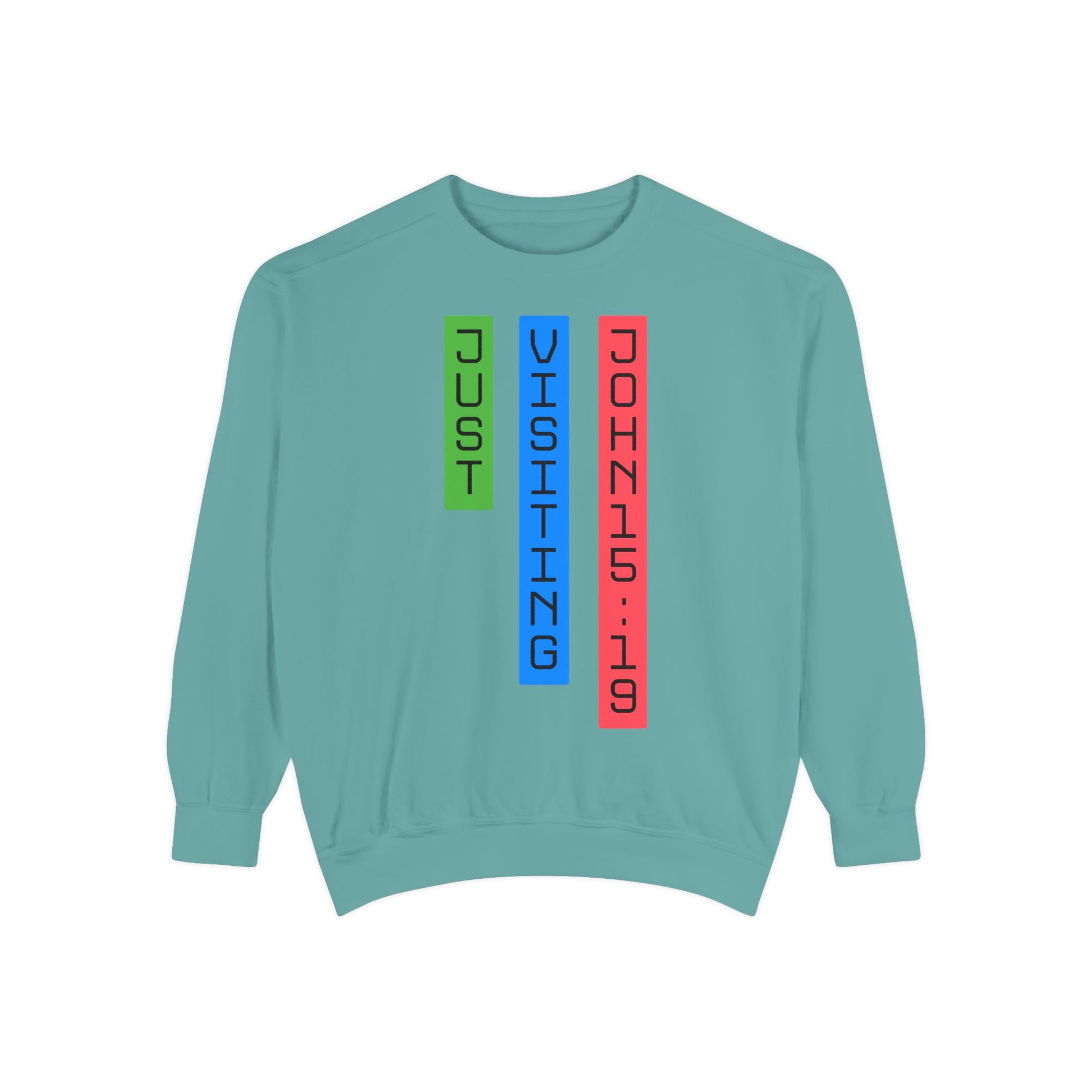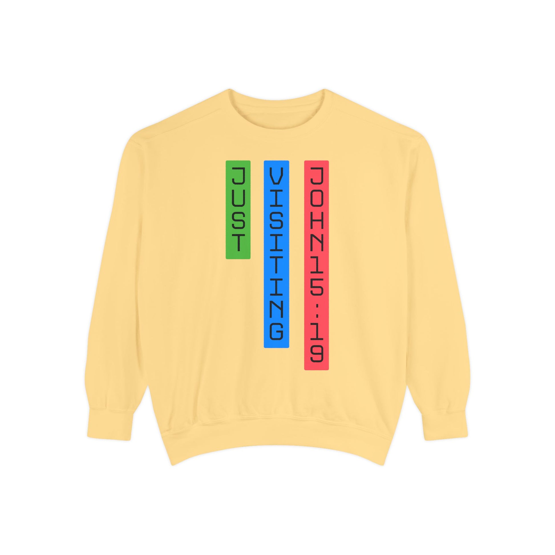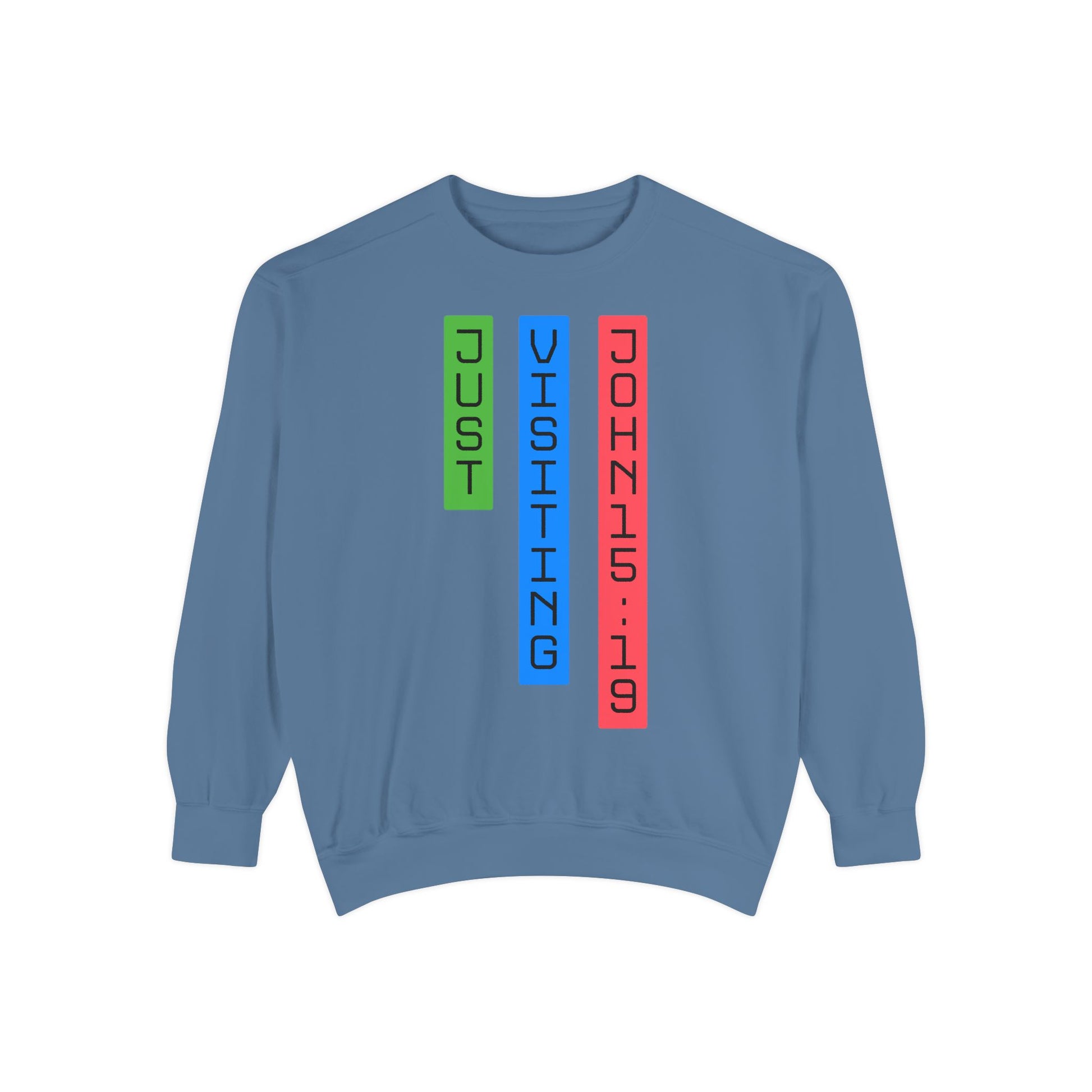 đ John 15:19 âJust Visitingâ Sweatshirt | ASGB Series | Faith Streetwear by GOAT Talk Tees
