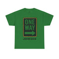 Bold, simple, and undeniably clear—this ONE WAY John 14:6 Christian T-Shirt delivers the message of Jesus with the unmistakable look of a street sign. Inspired by Christ’s words, “I am the way and the truth and the life. No one comes to the Father except through me,” this design uses a powerful visual metaphor to share the gospel with confidence.