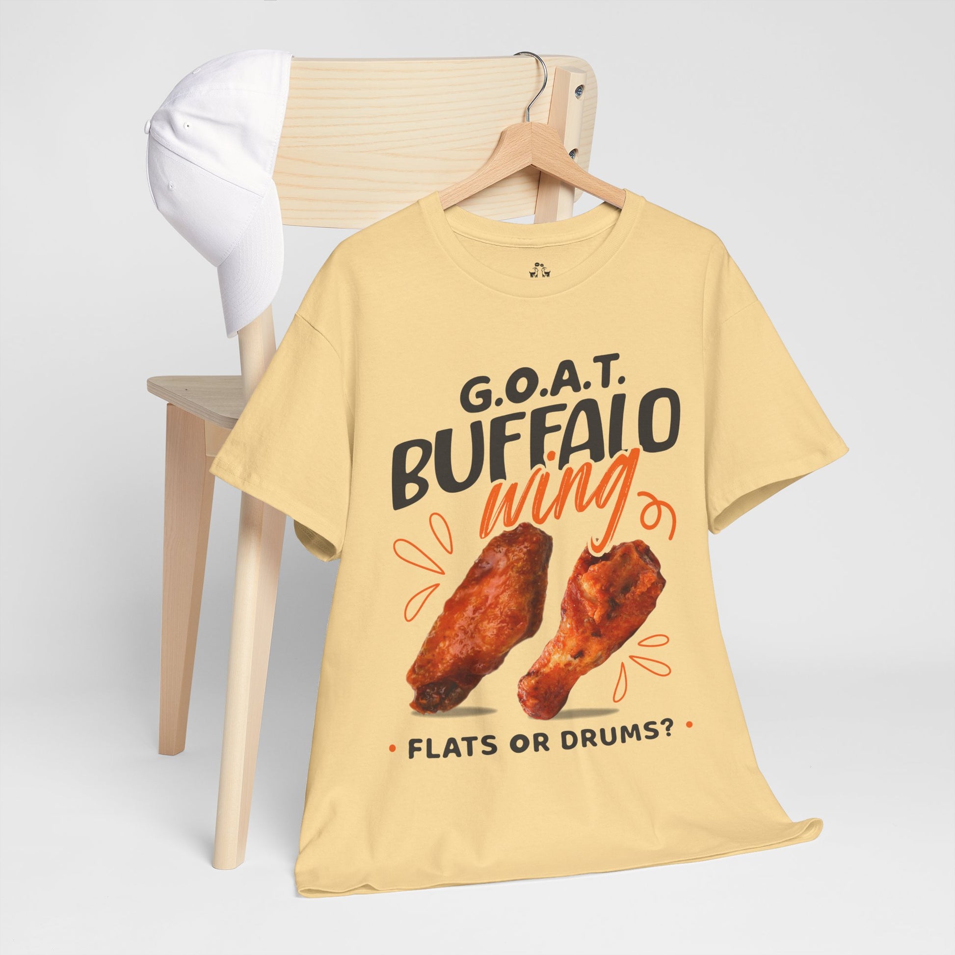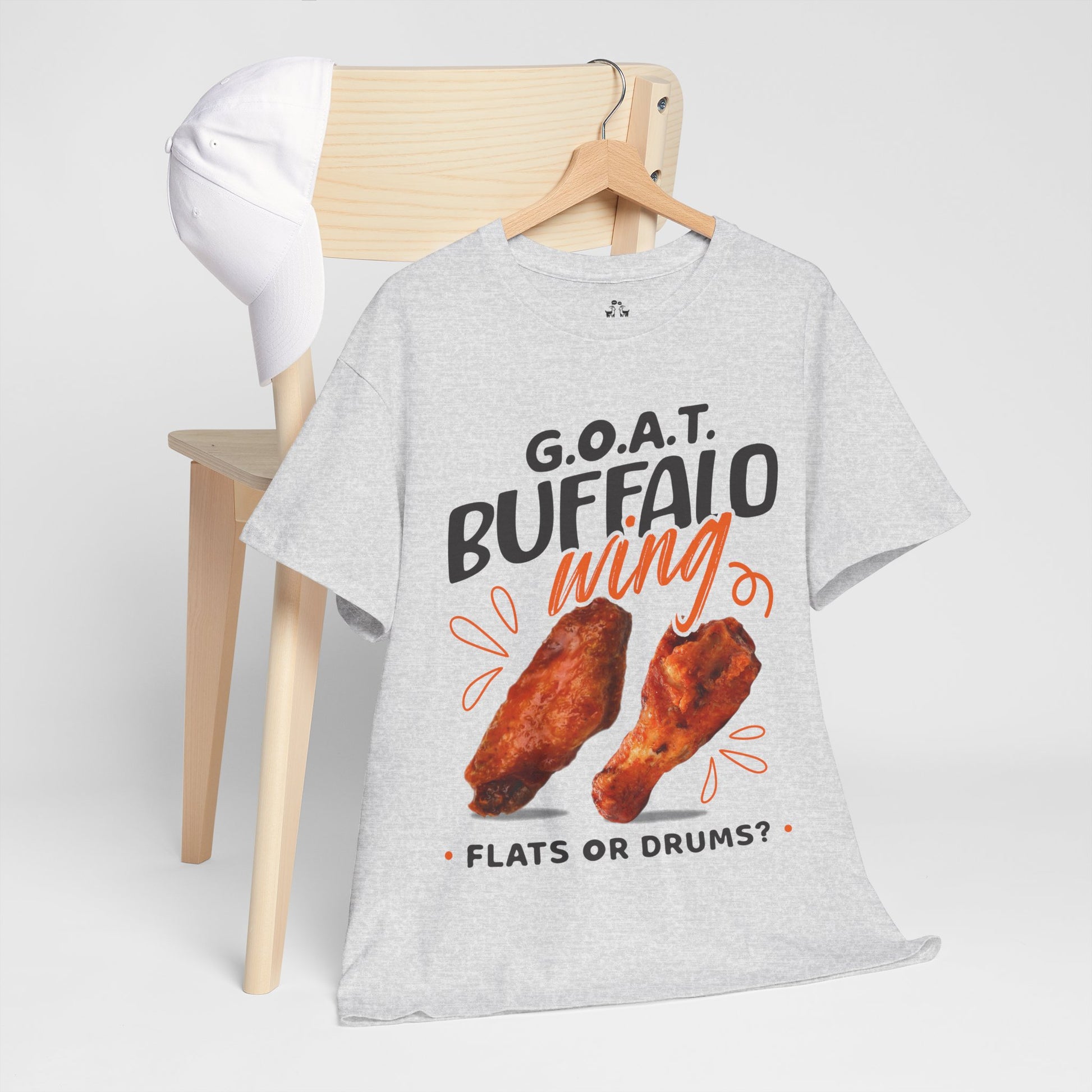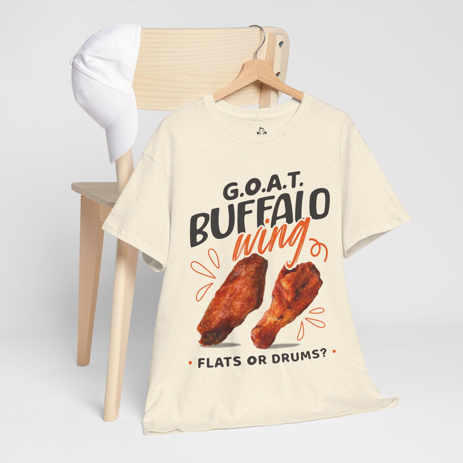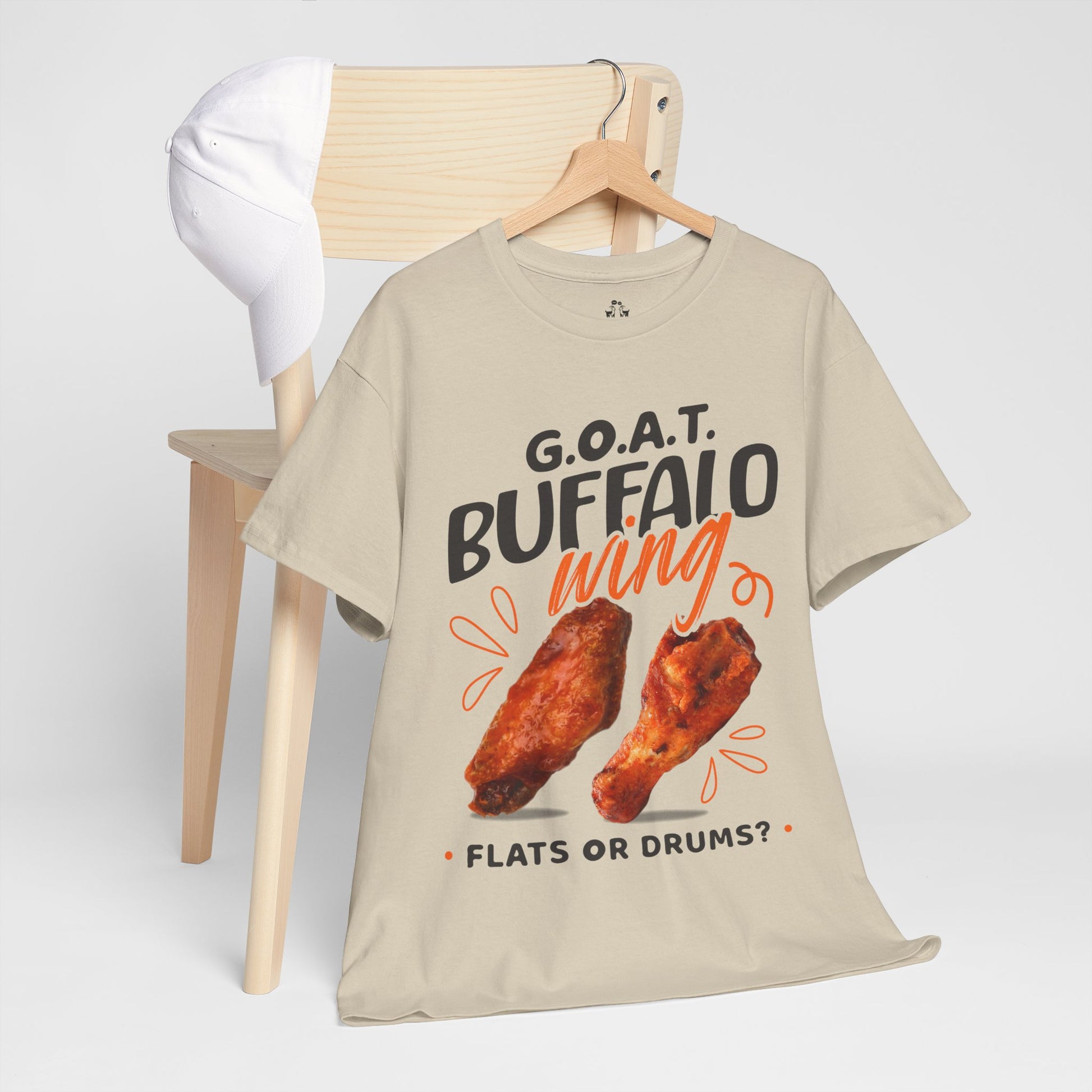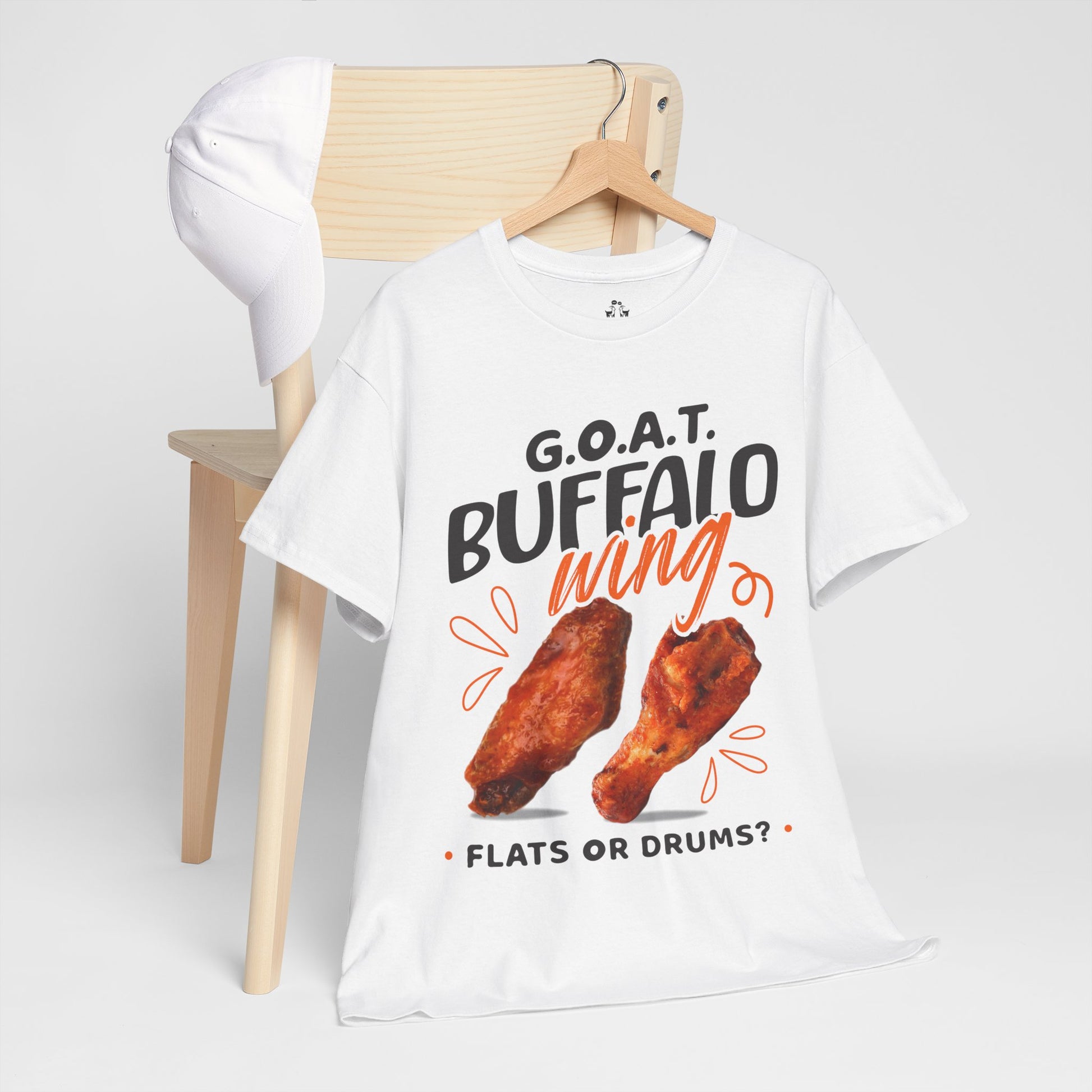 🍗 G.O.A.T. Buffalo Wings Tee – Flats vs Drums Debate T-Shirt