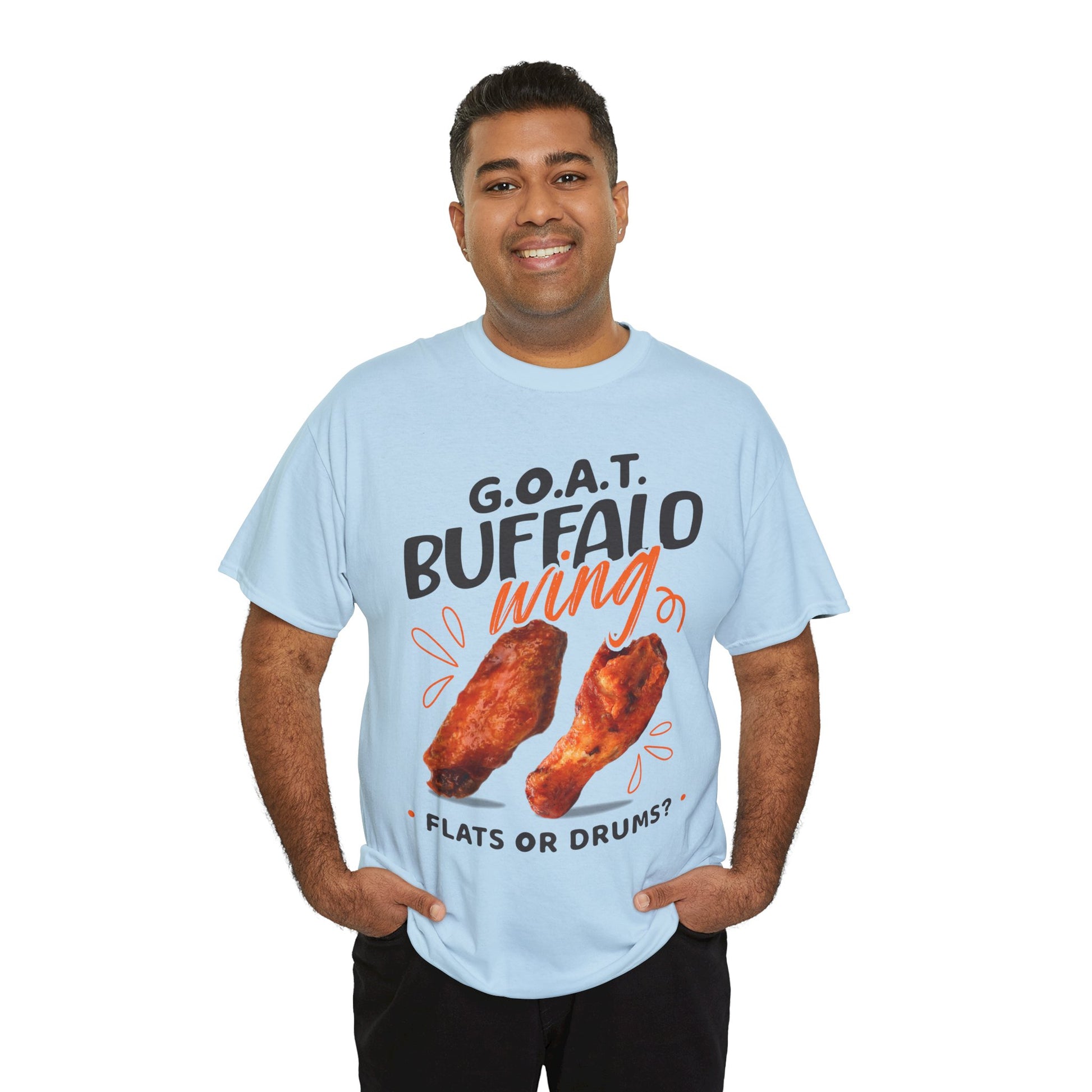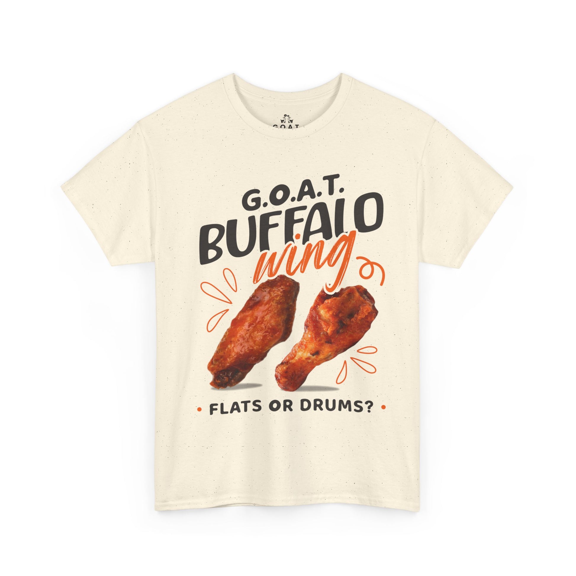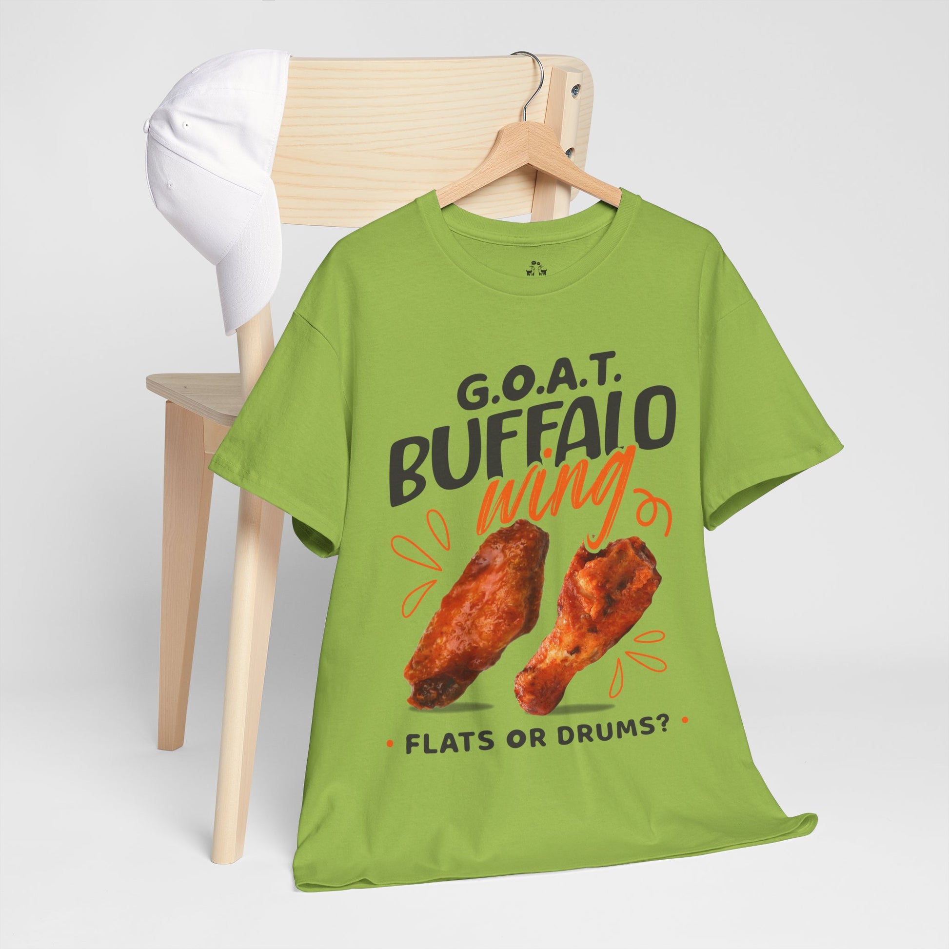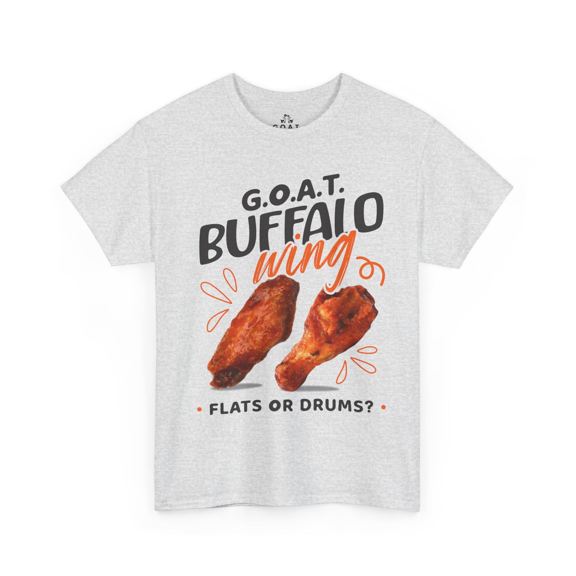 🍗 G.O.A.T. Buffalo Wings Tee – Flats vs Drums Debate T-Shirt