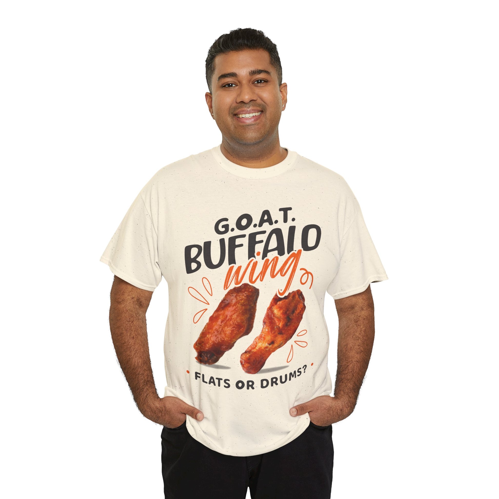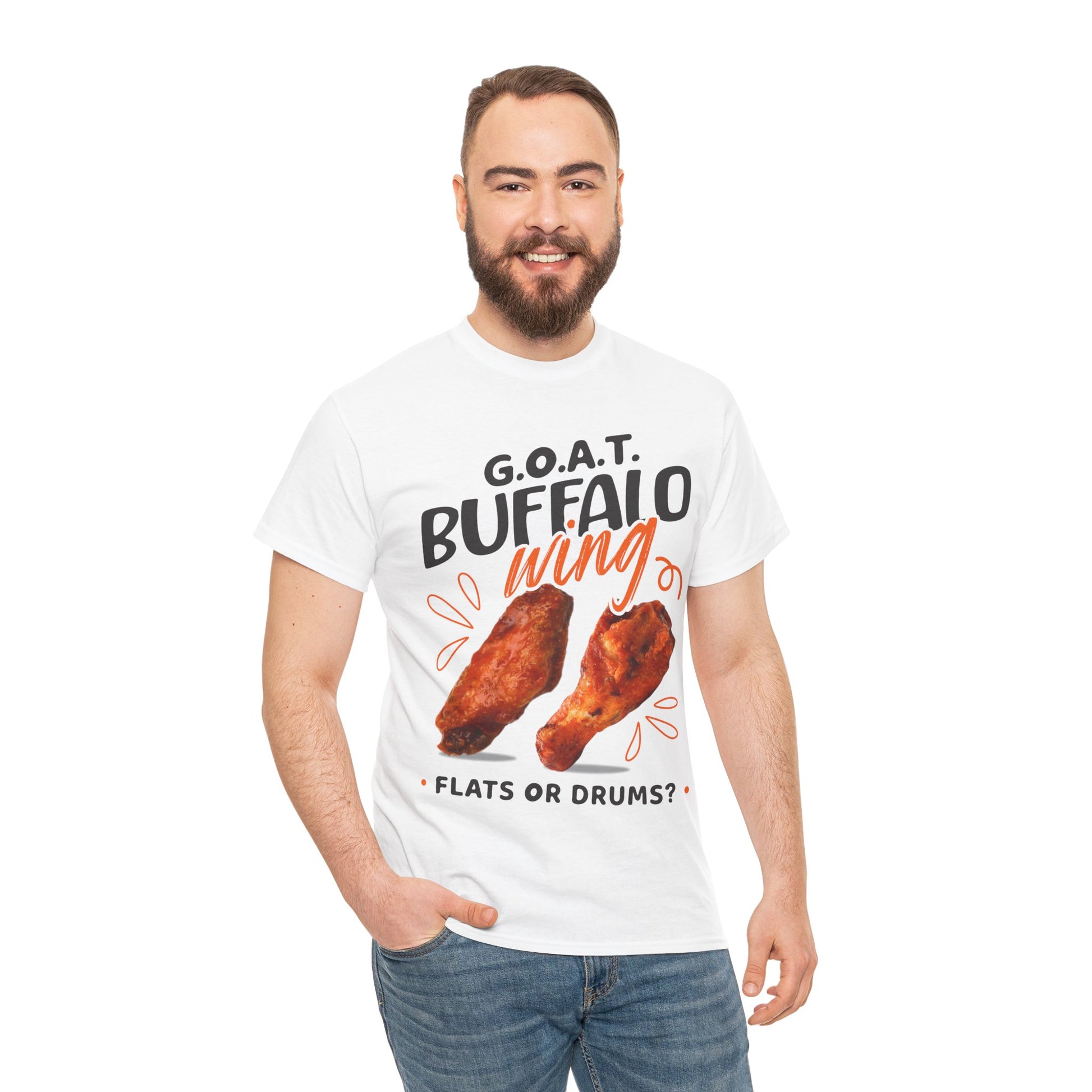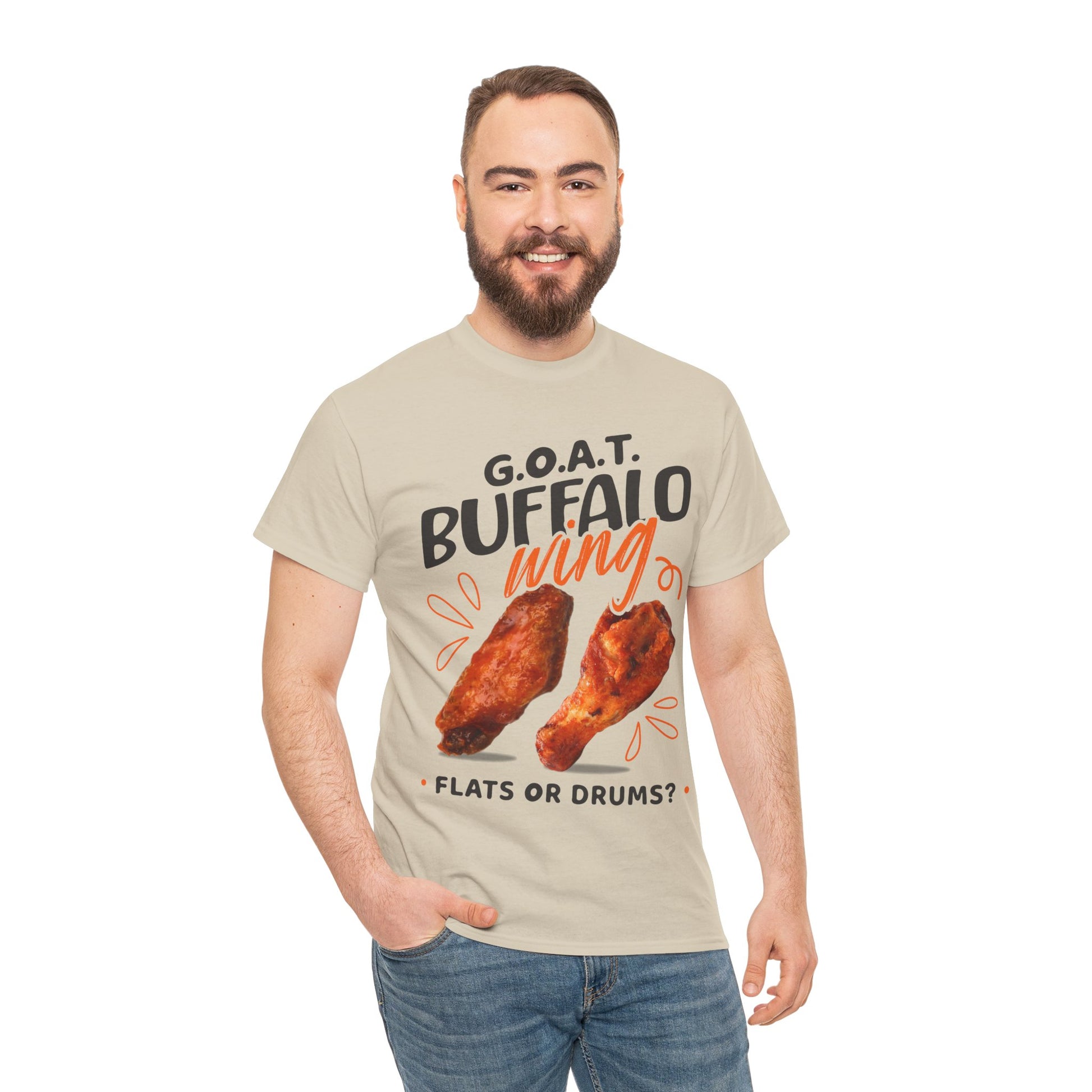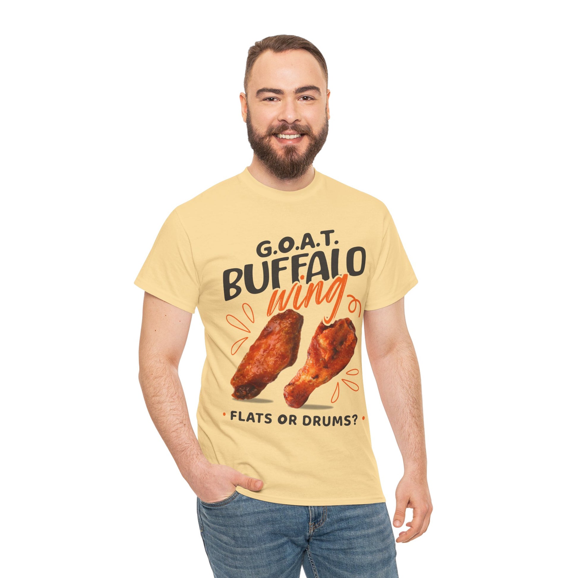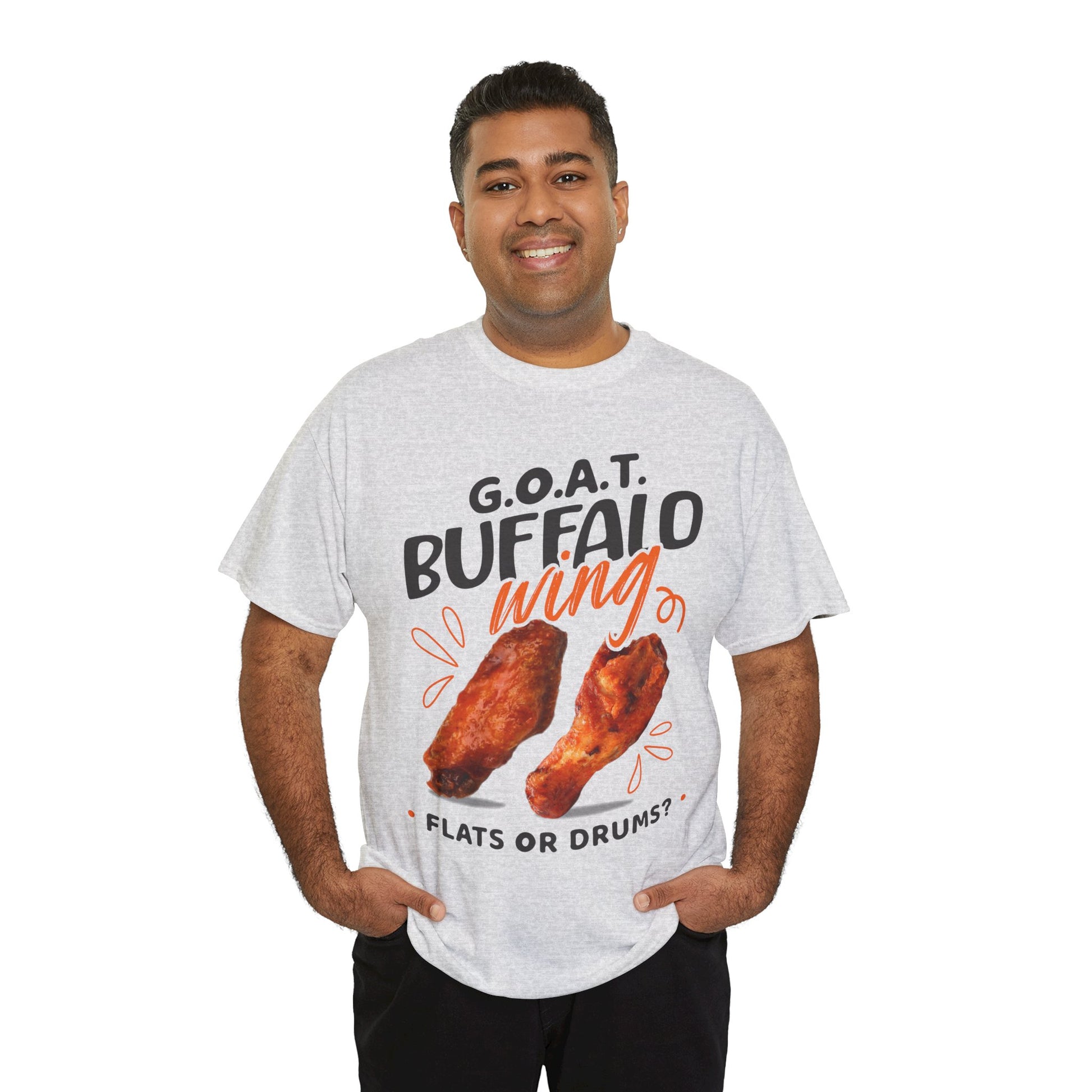 🍗 G.O.A.T. Buffalo Wings Tee – Flats vs Drums Debate T-Shirt
