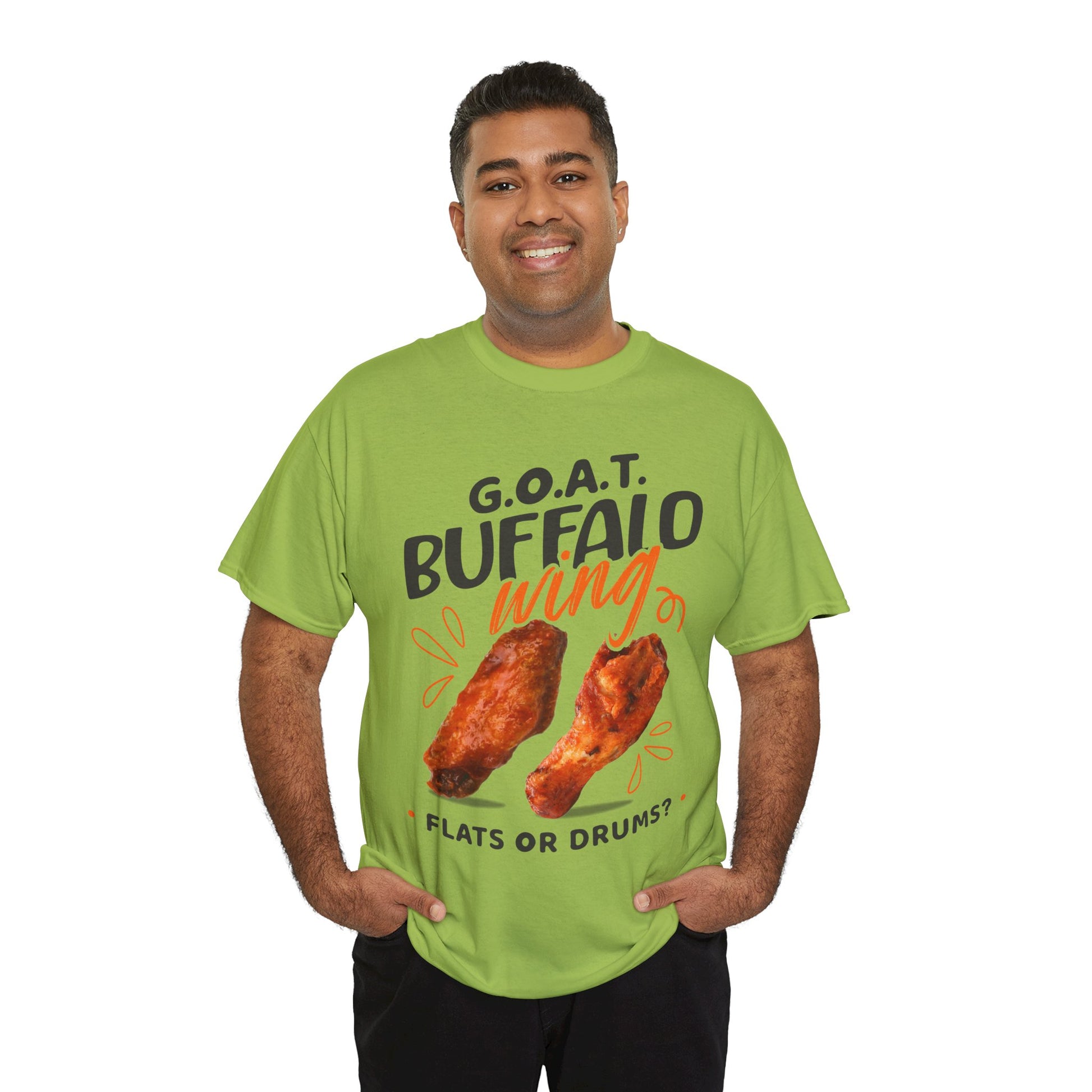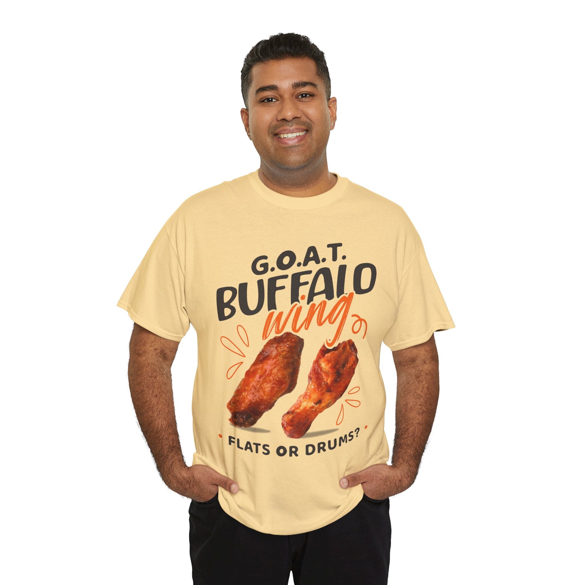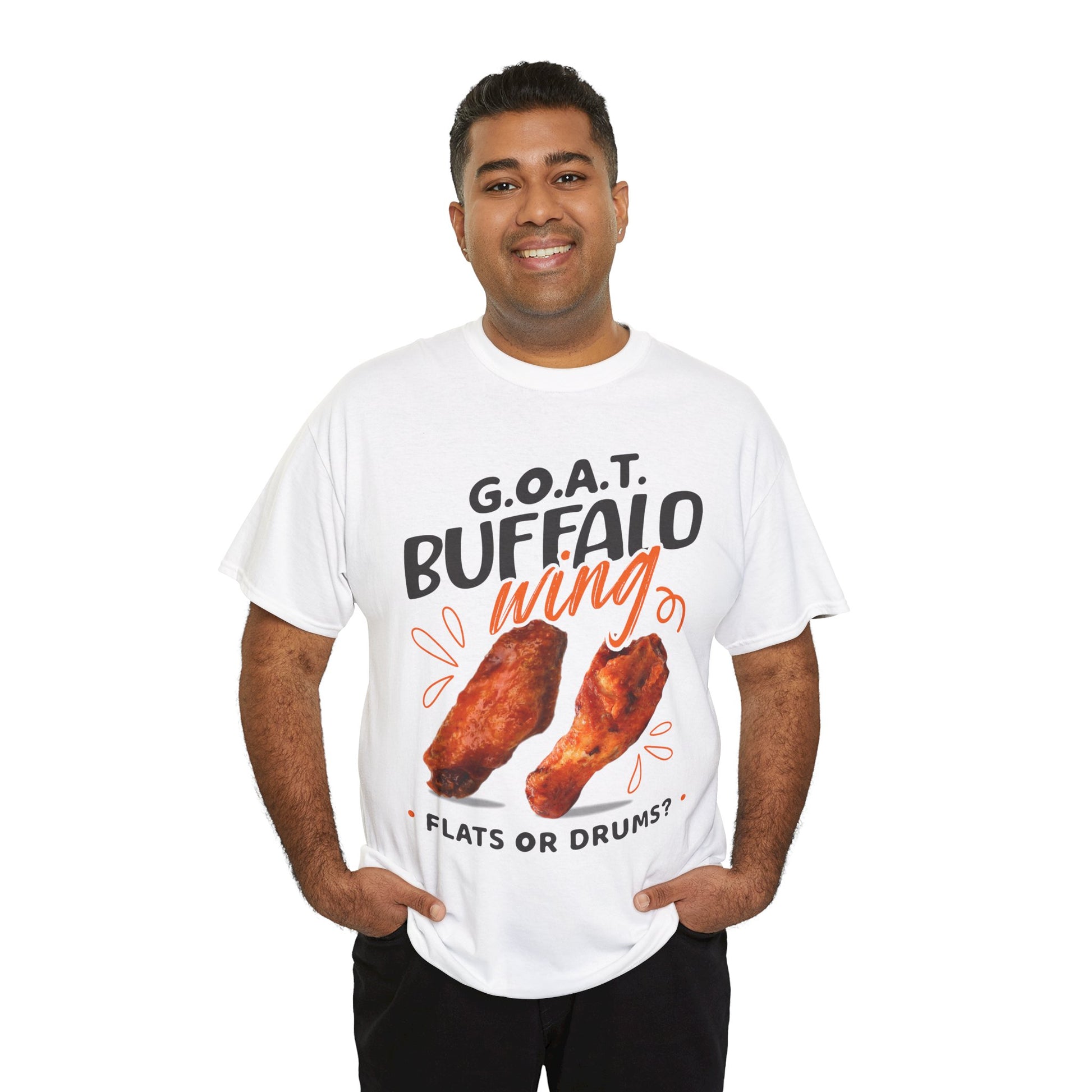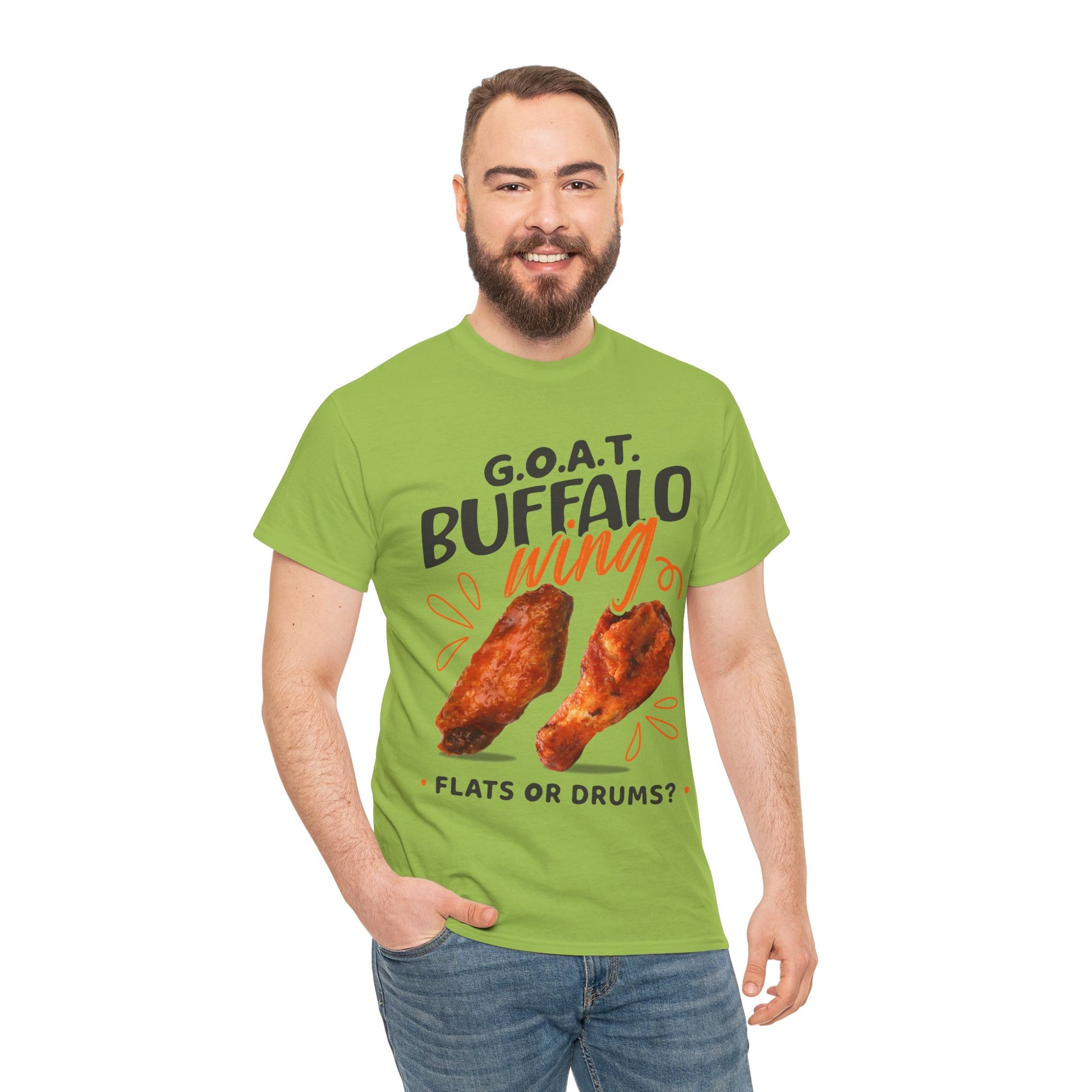 🍗 G.O.A.T. Buffalo Wings Tee – Flats vs Drums Debate T-Shirt