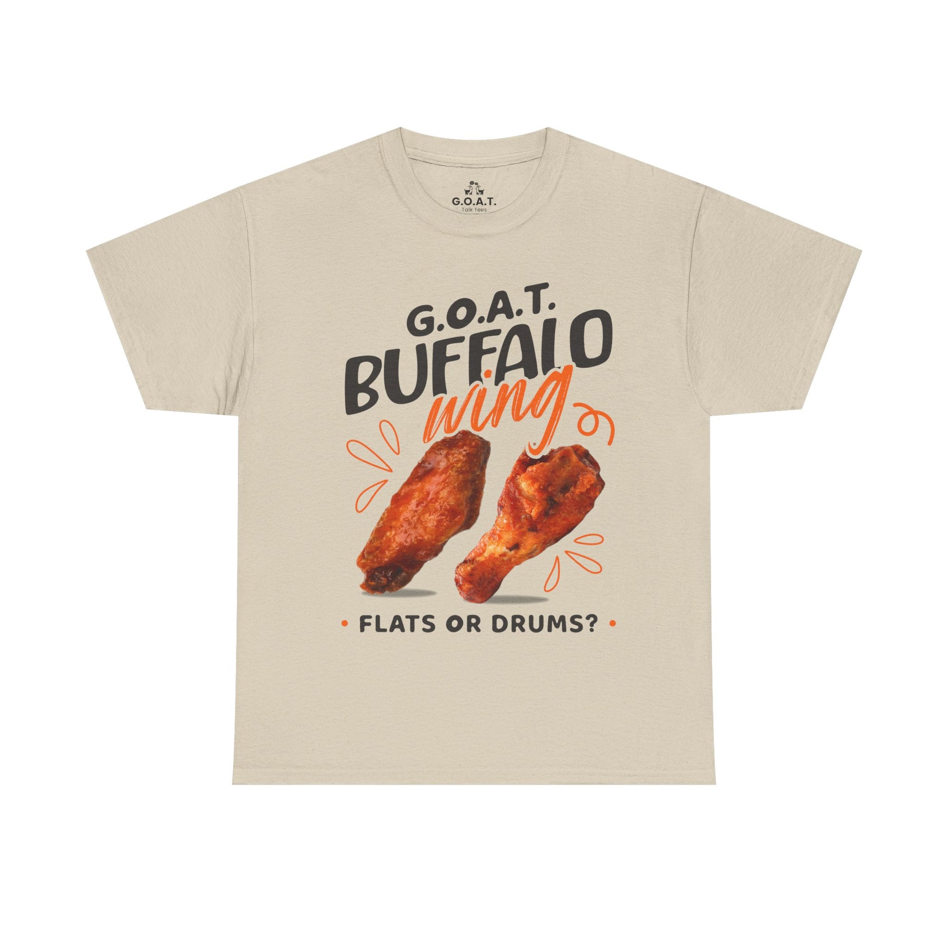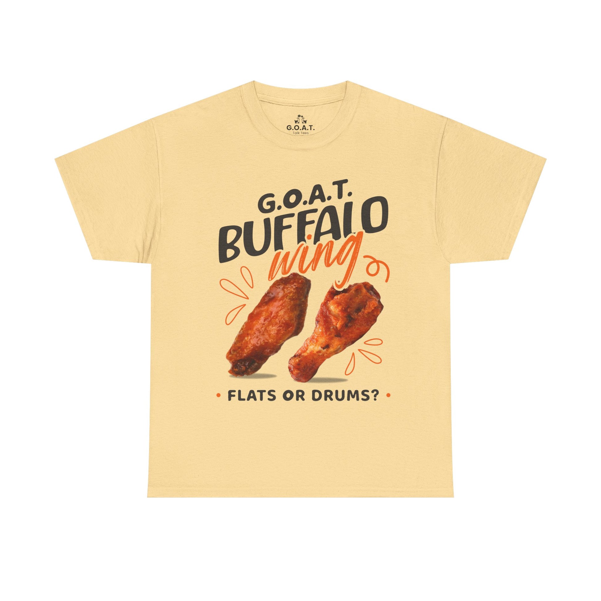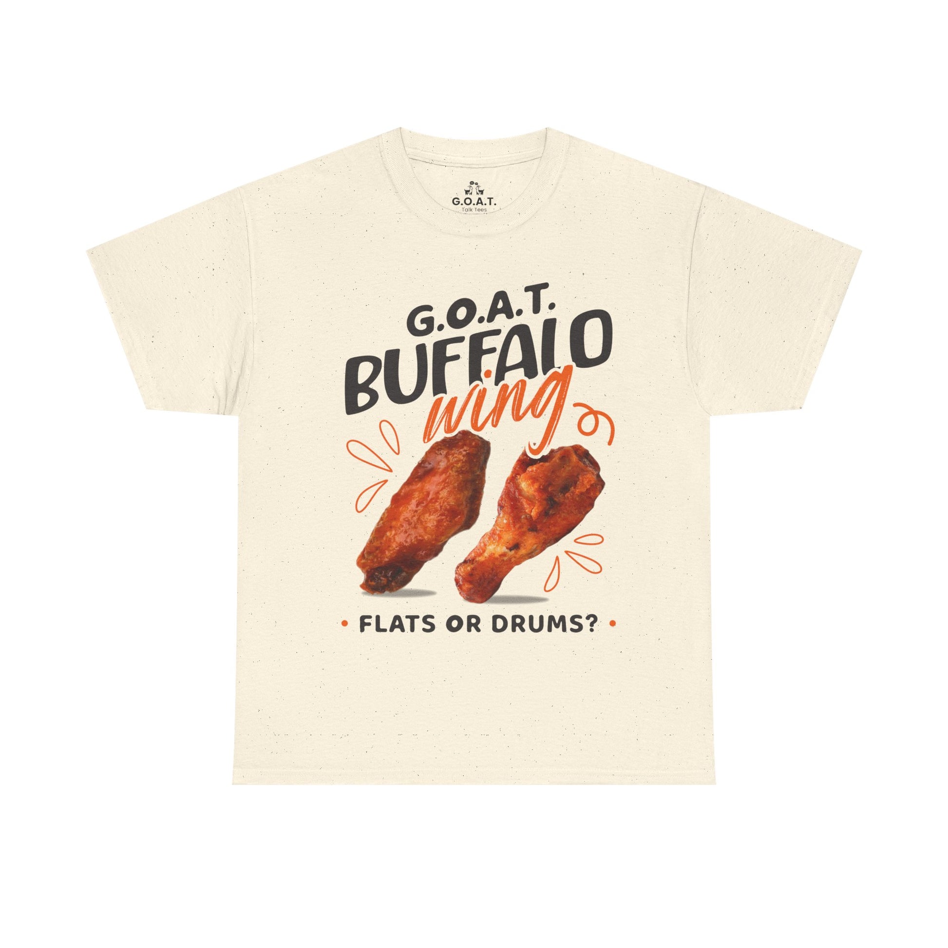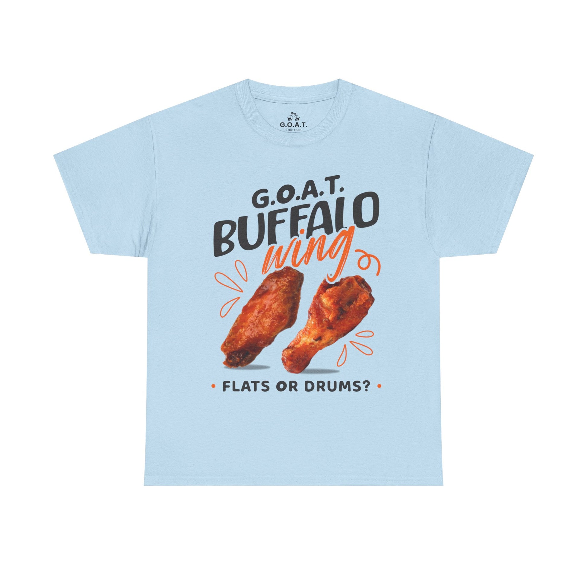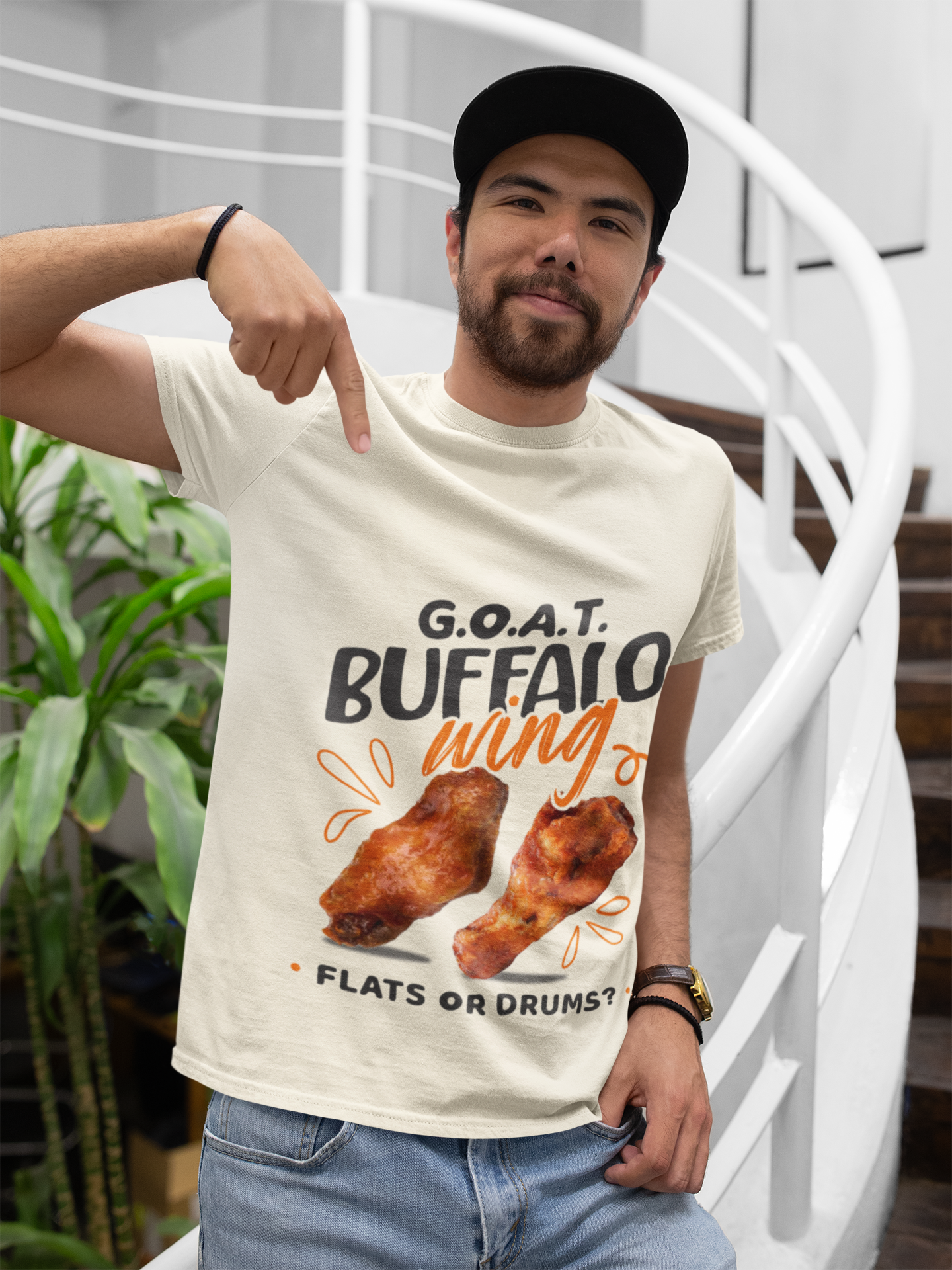 🍗 G.O.A.T. Buffalo Wings Tee – Flats vs Drums Debate T-Shirt