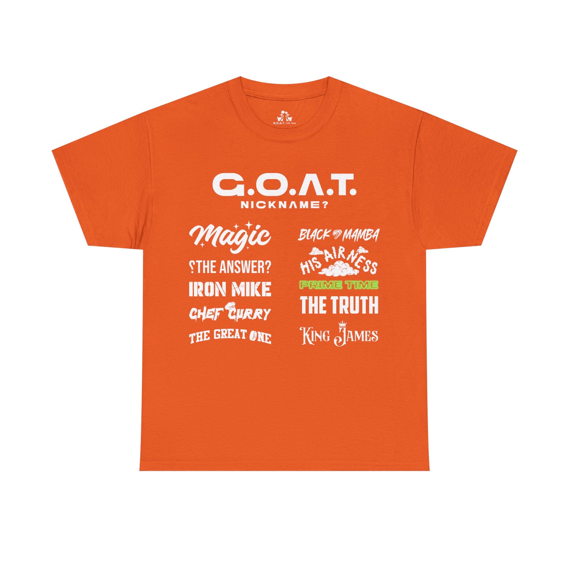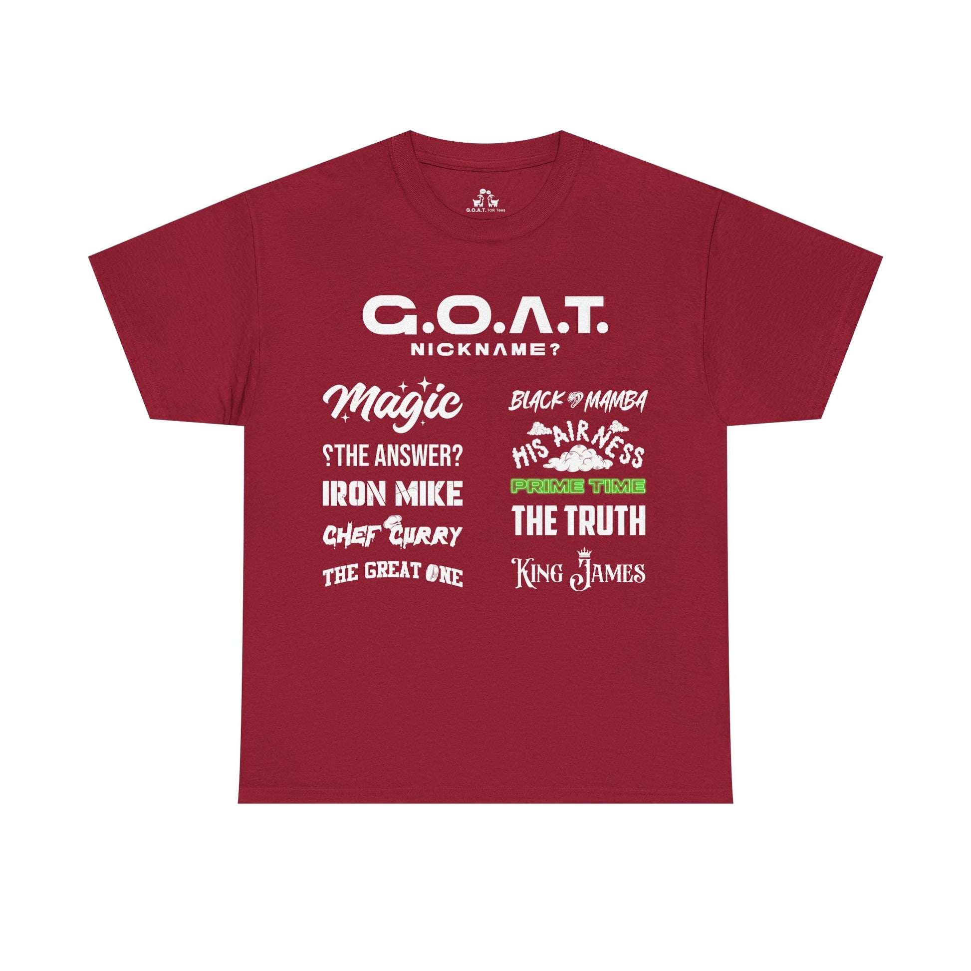 G.O.A.T. Nickname T-Shirt – Iconic Athlete Aliases Debate Tee