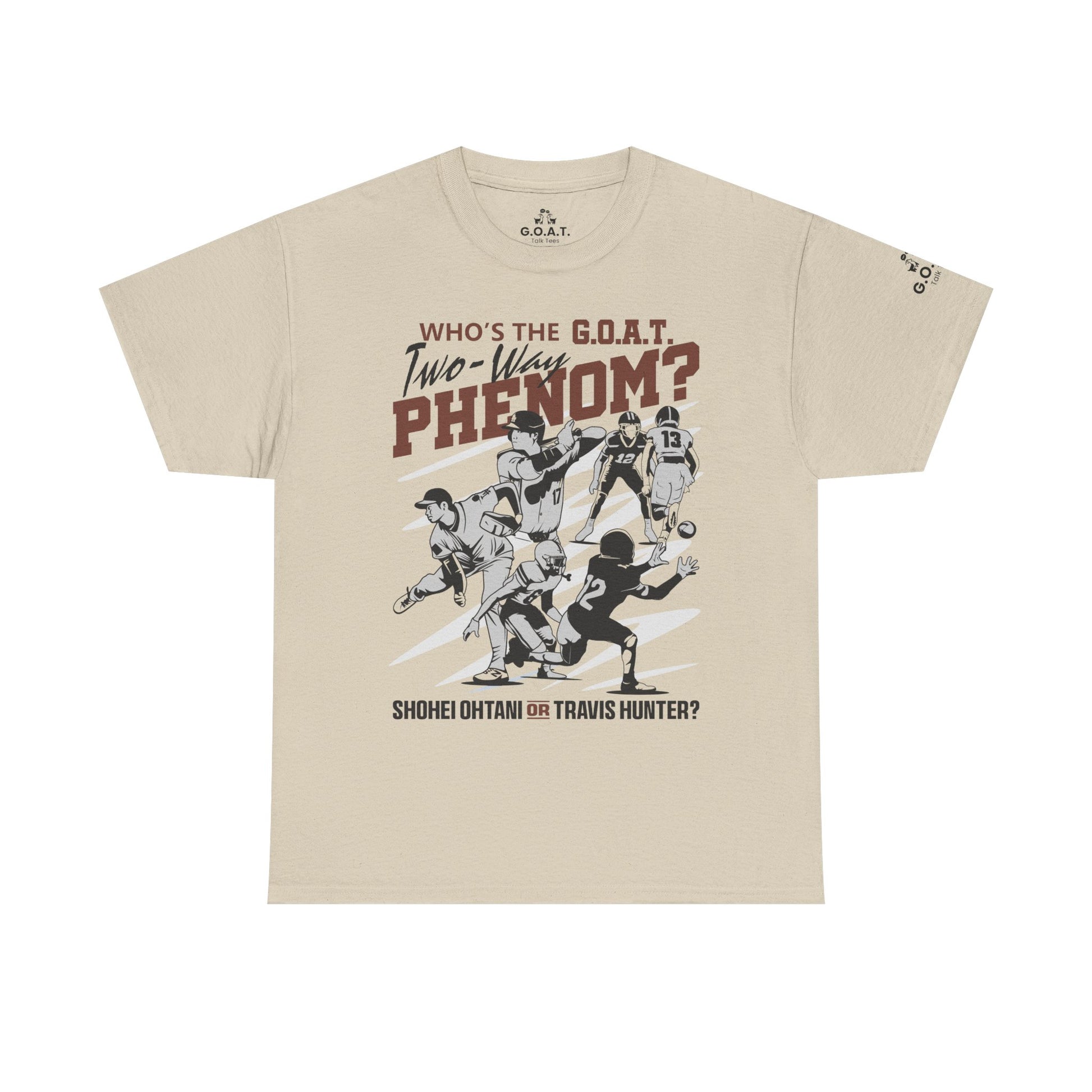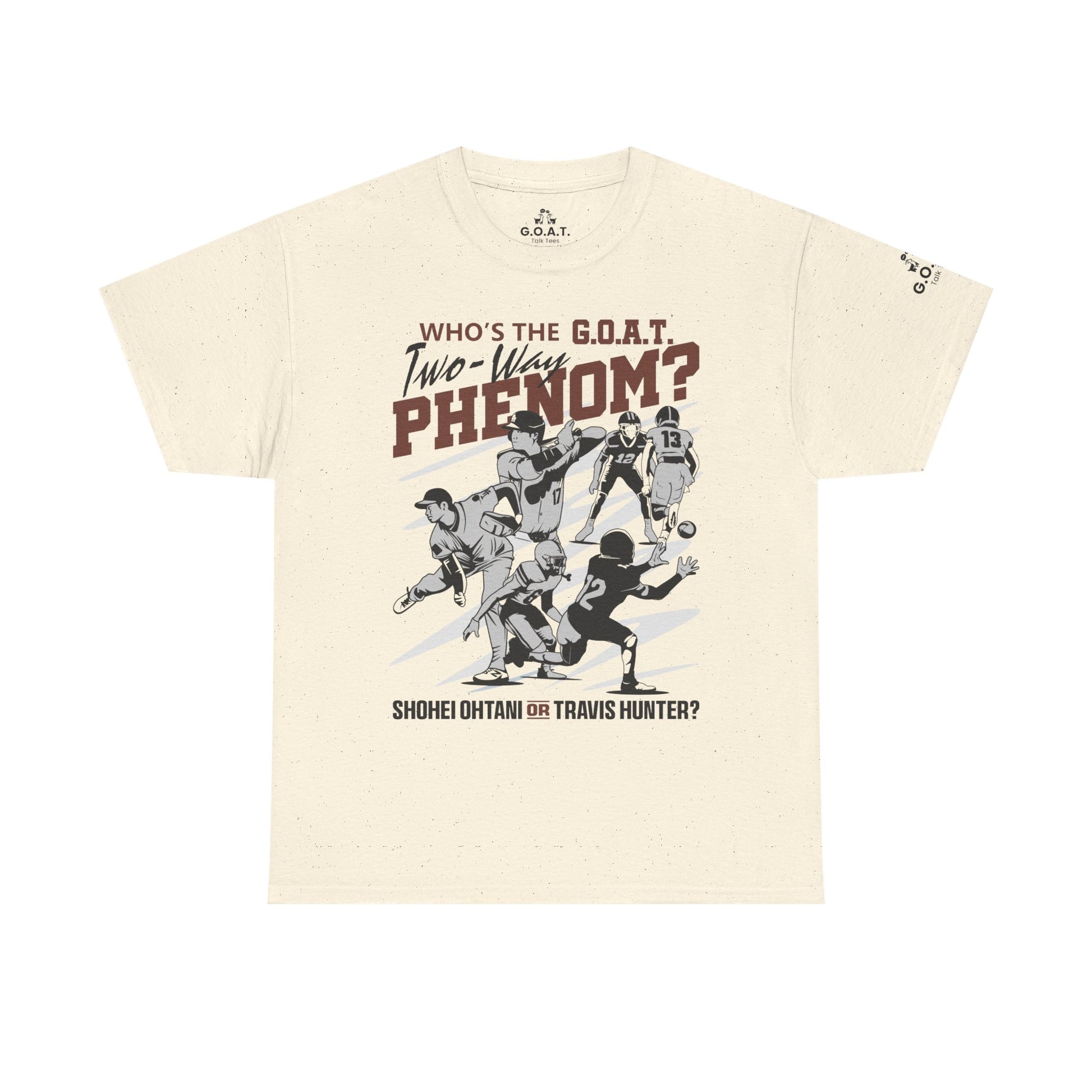 G.O.A.T. Two-Way Phenom Tee – Shohei Ohtani vs. Travis Hunter Debate Shirt