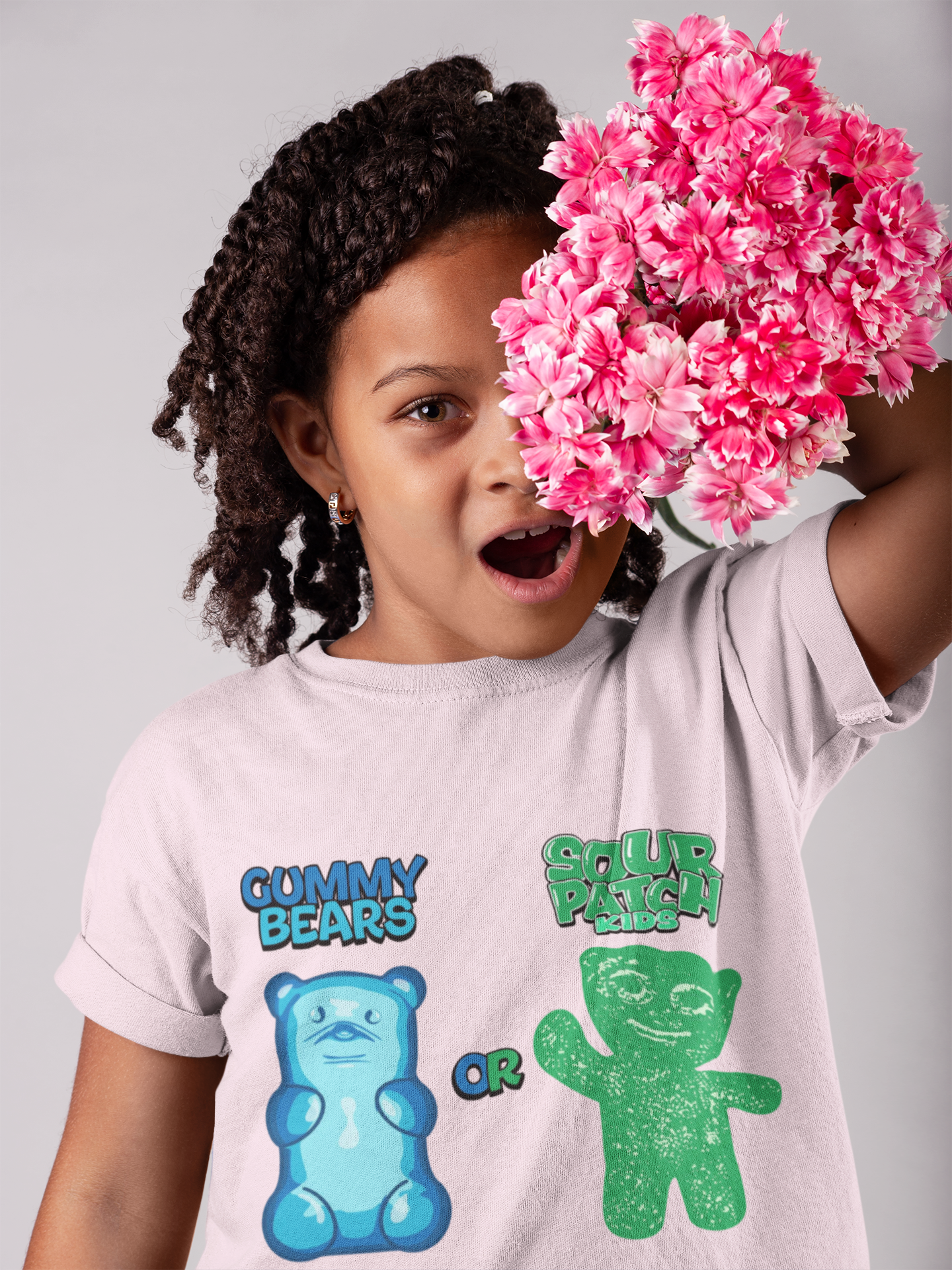 The Gummy Bears or Sour Patch Kids? tee lets kids join the fun with one of the most classic snack debates of all time. Designed for comfort, play, and personality, this shirt sparks conversation, laughter, and friendly arguments—just like the grown-ups.