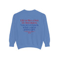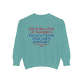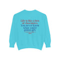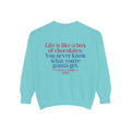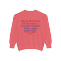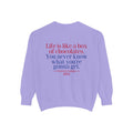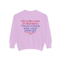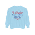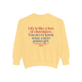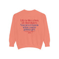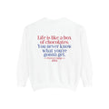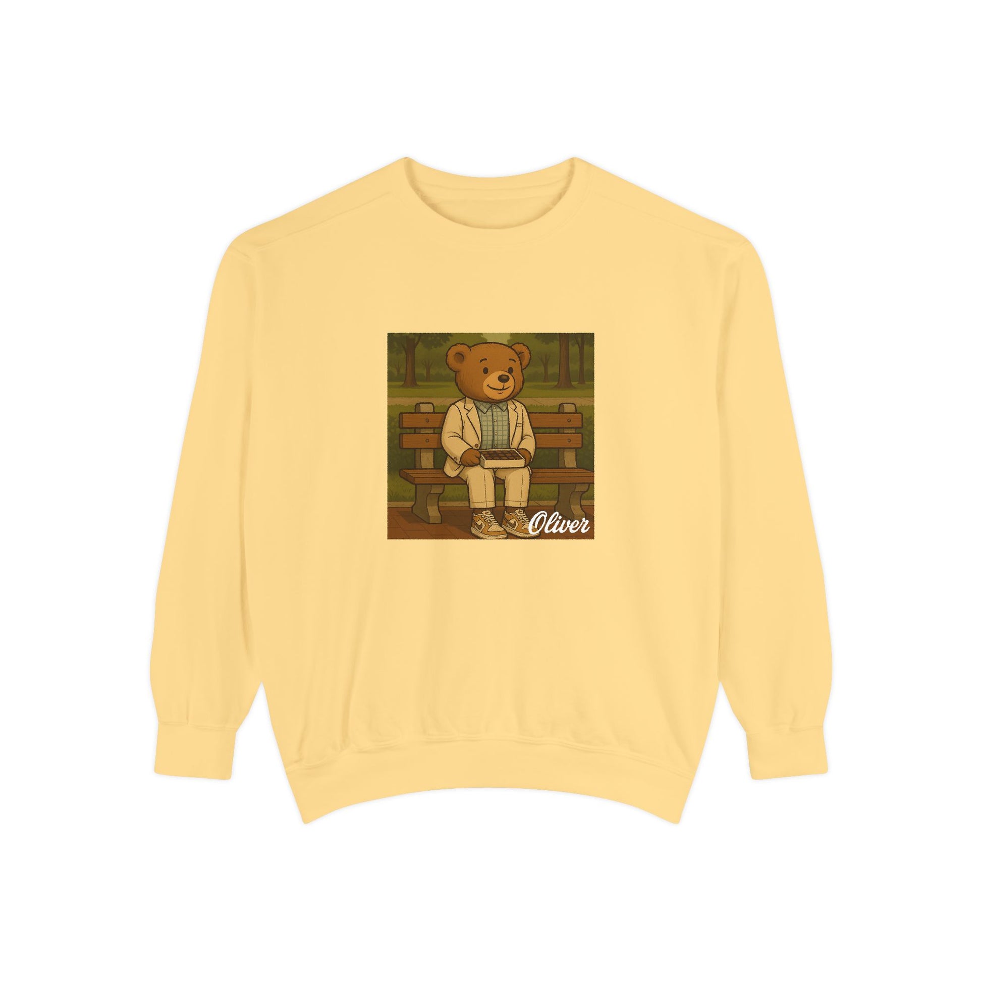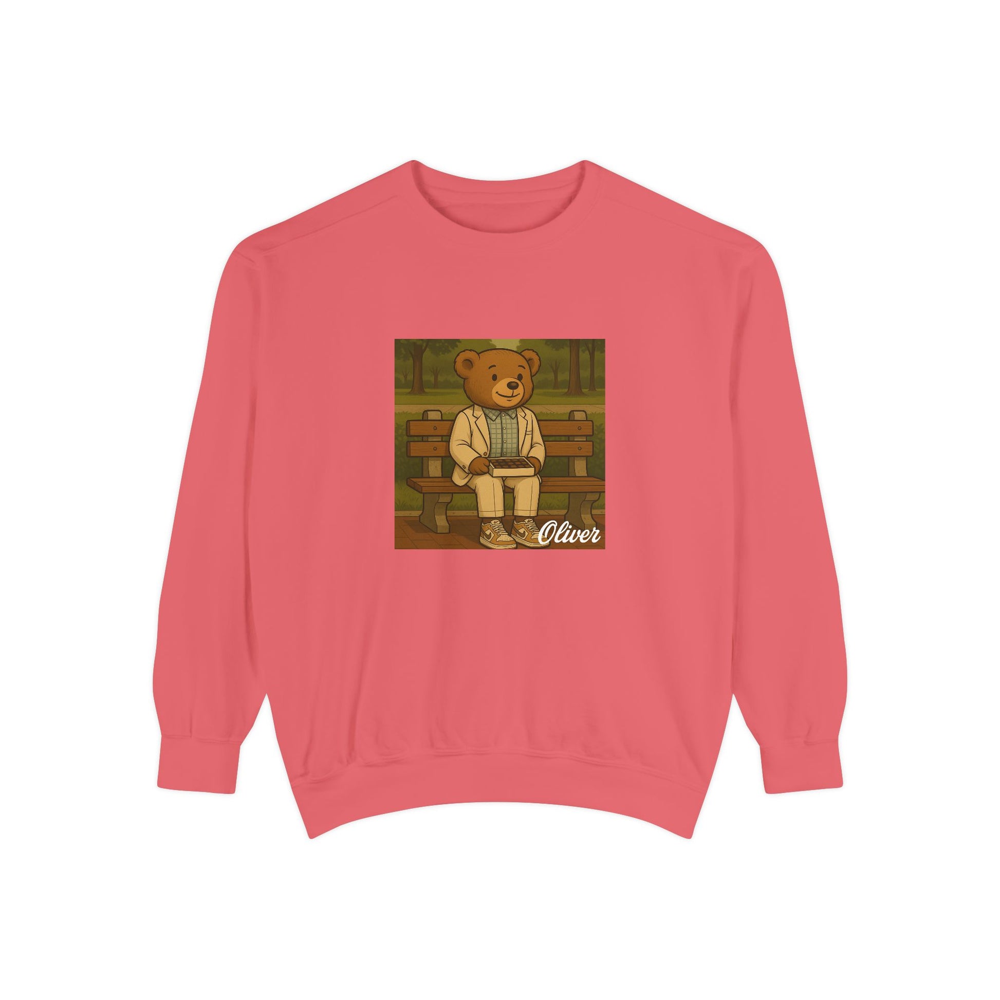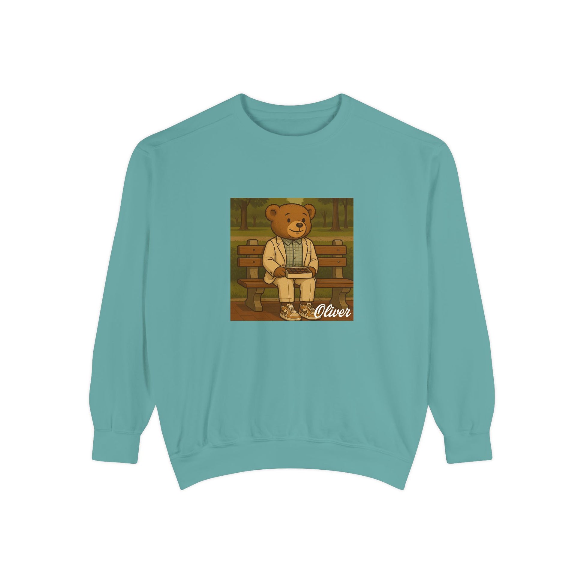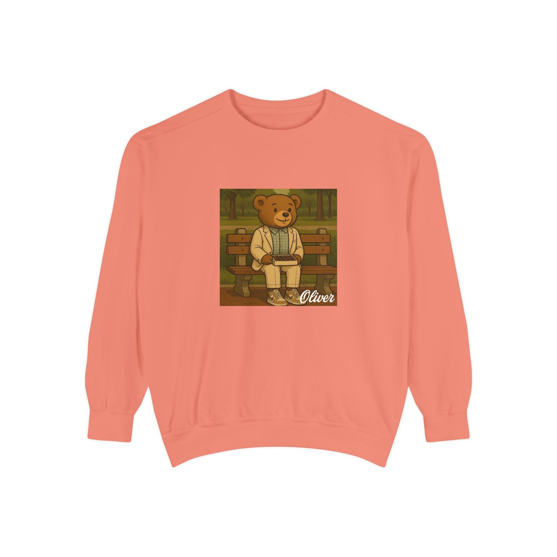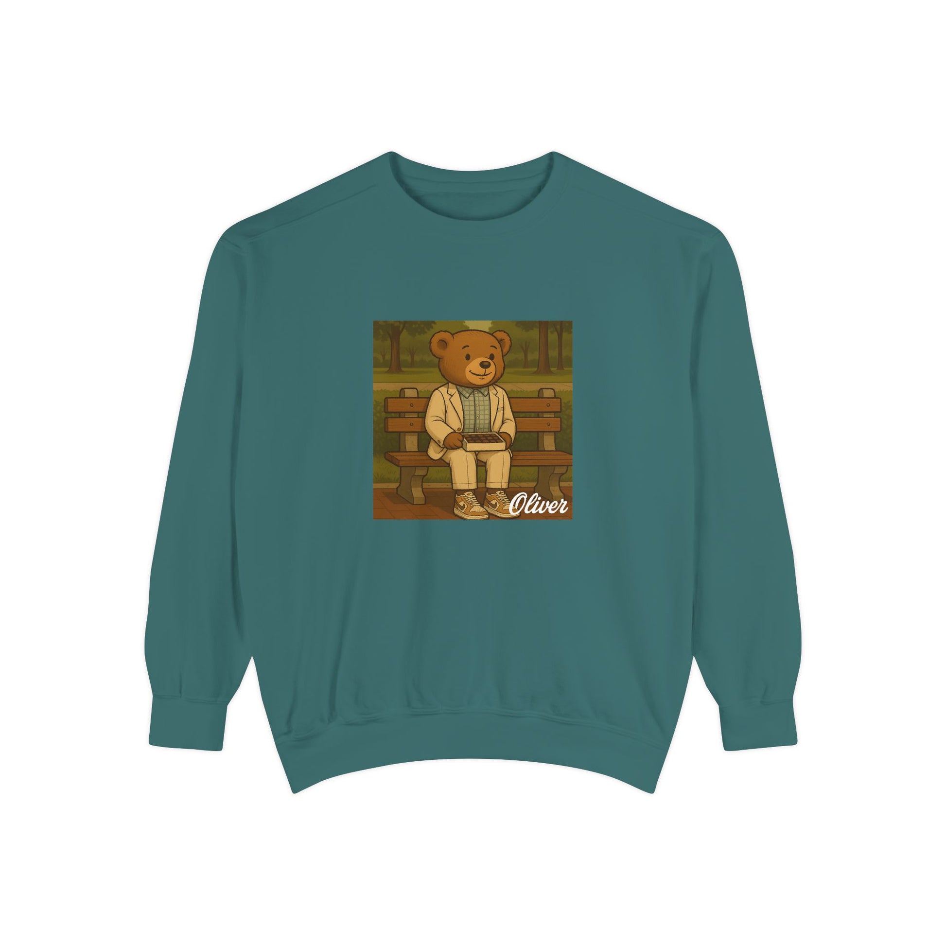 Sit down with Oliver in this heartwarming Forrest Gump parody crewneck. A sweet blend of nostalgia, style, and storytelling—box of chocolates not included.