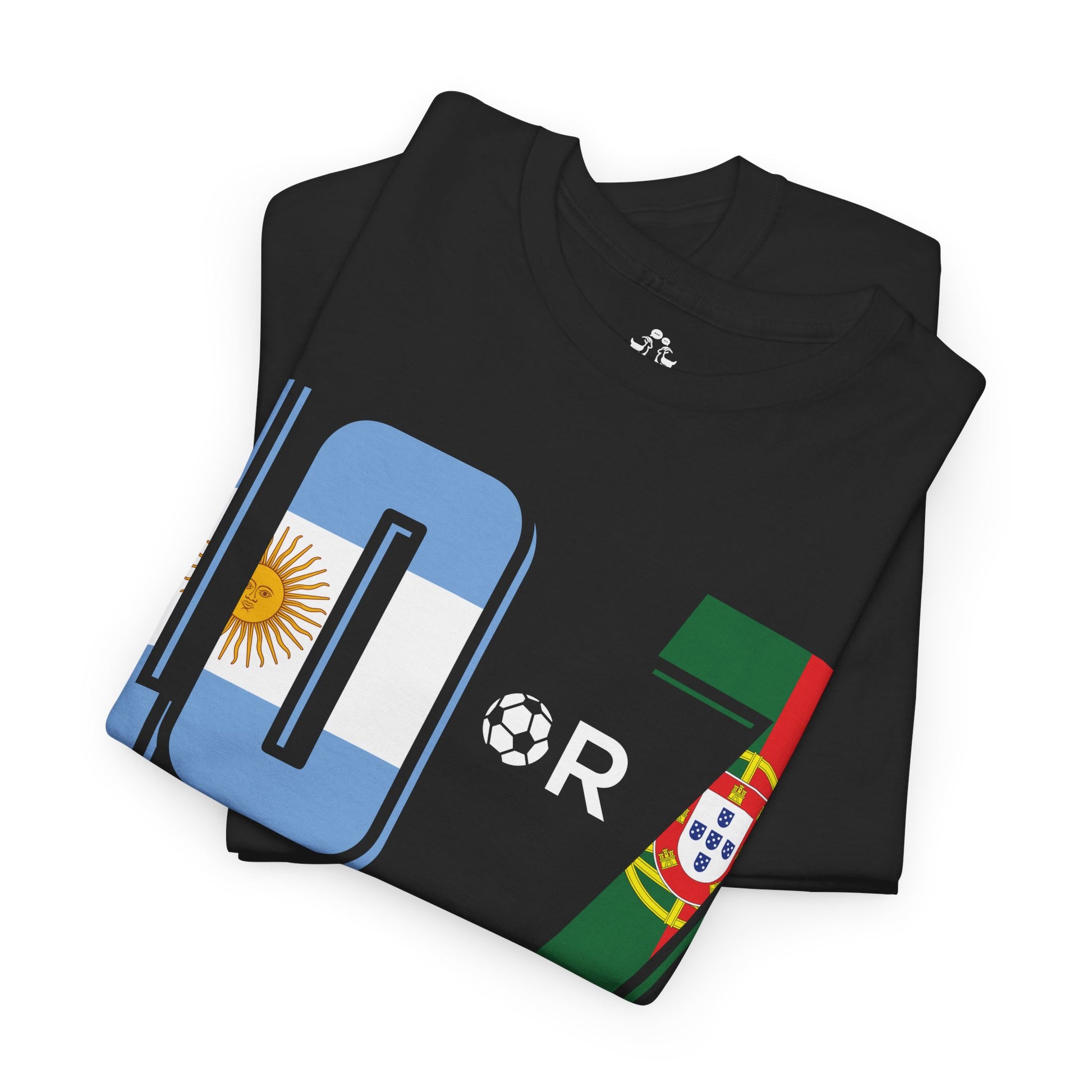 REMIX ⚽ 10 or 7 G.O.A.T. Soccer Debate Tee – Messi vs Ronaldo Shirt