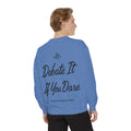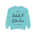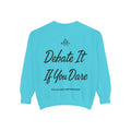This ultra-soft aqua crewneck sweatshirt from G.O.A.T. Talk Tees combines style and sports culture, featuring cloud lettering for MJ and a crowned throne for King James. Built for fans who love bold takes and barbershop energy.